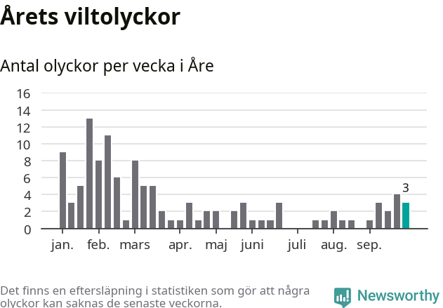 Hittills har tre viltolyckor rapporterats in i Åre kommun från vecka 40. Se listan här.