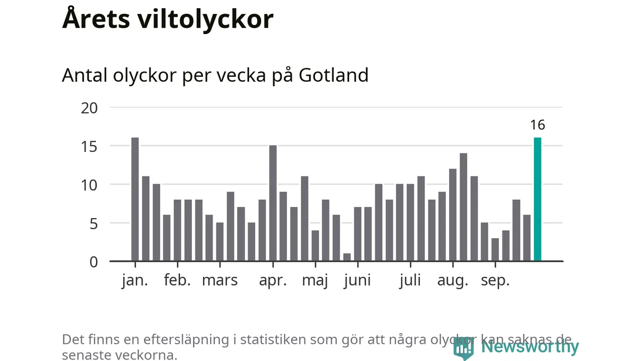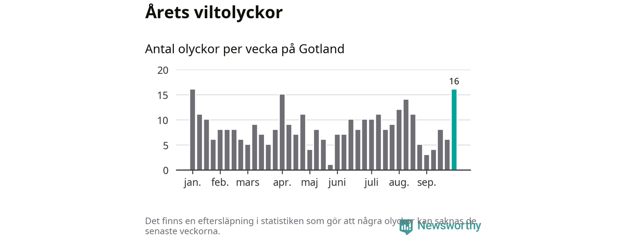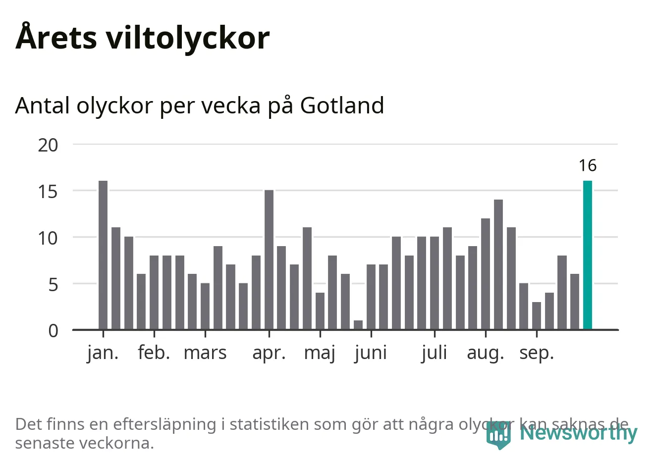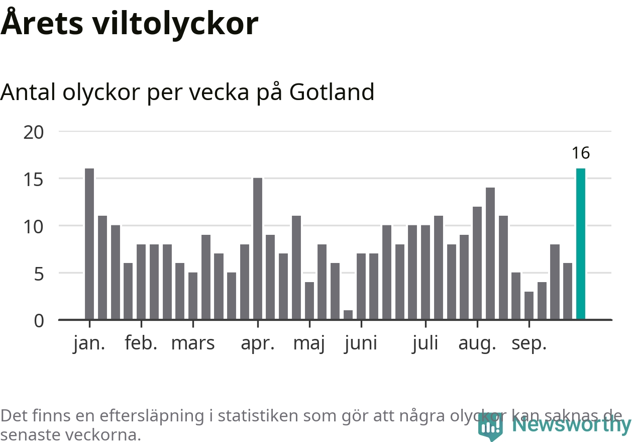 16 olyckor på en enda vecka är däremot ovanligt många. Bara tio gånger tidigare sedan 2015 har det skett