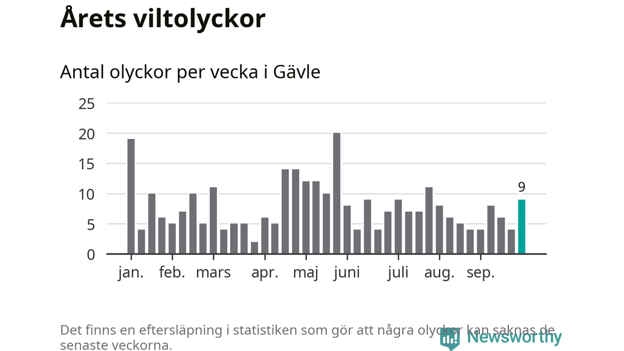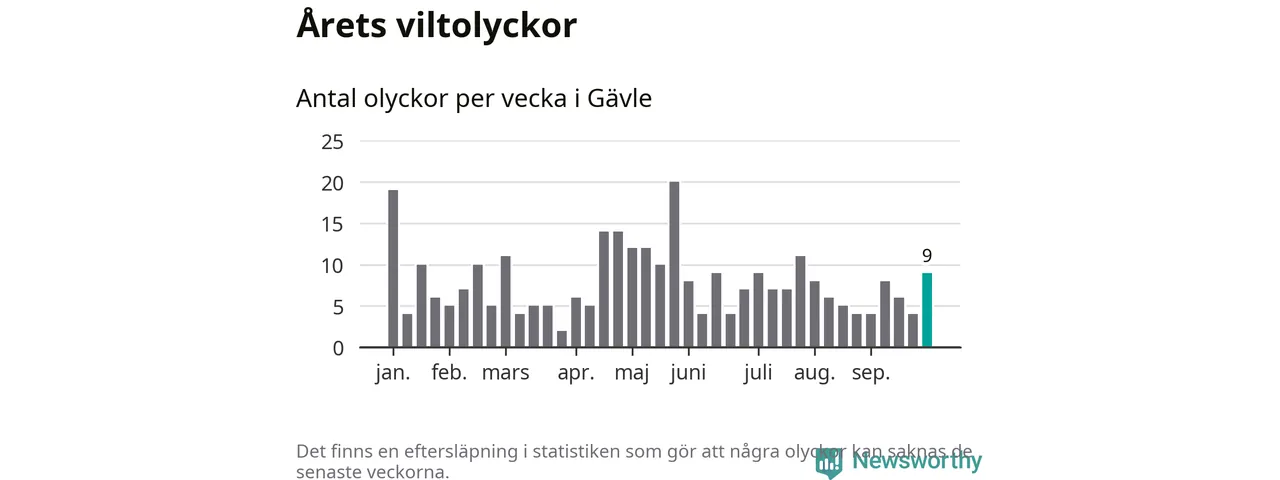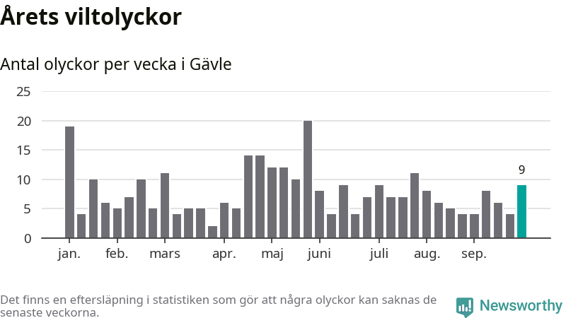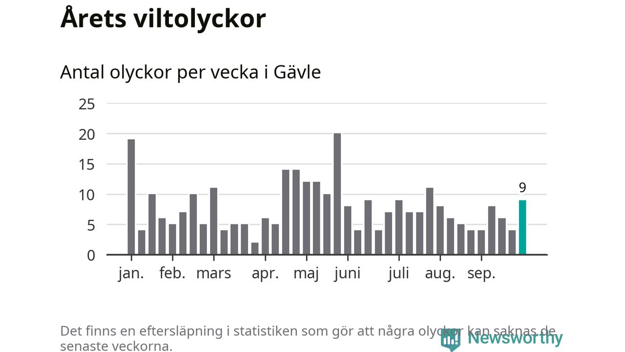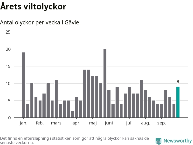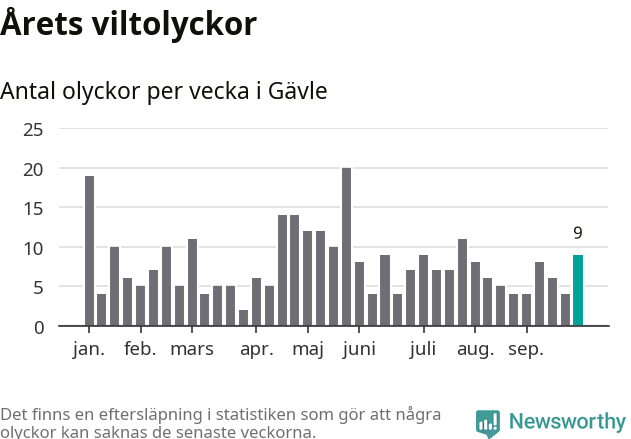 Hittills har nio viltolyckor rapporterats in i Gävle kommun från vecka 40. Se listan här.