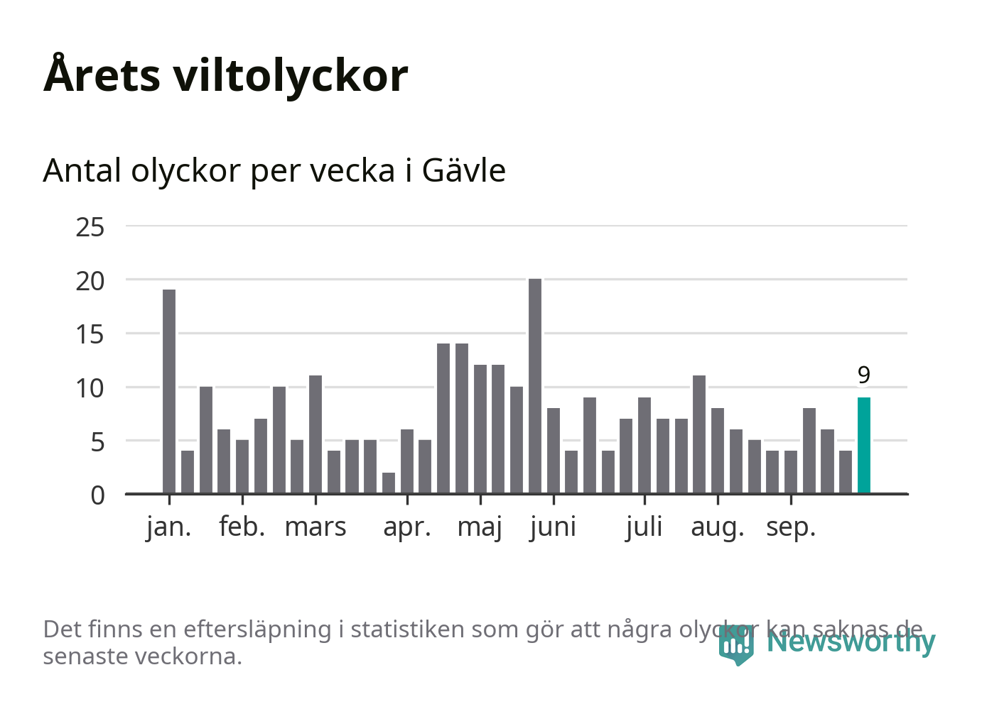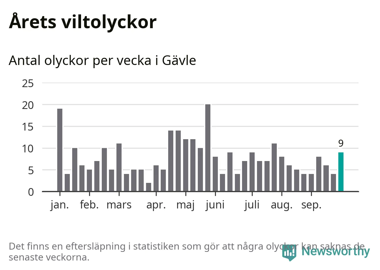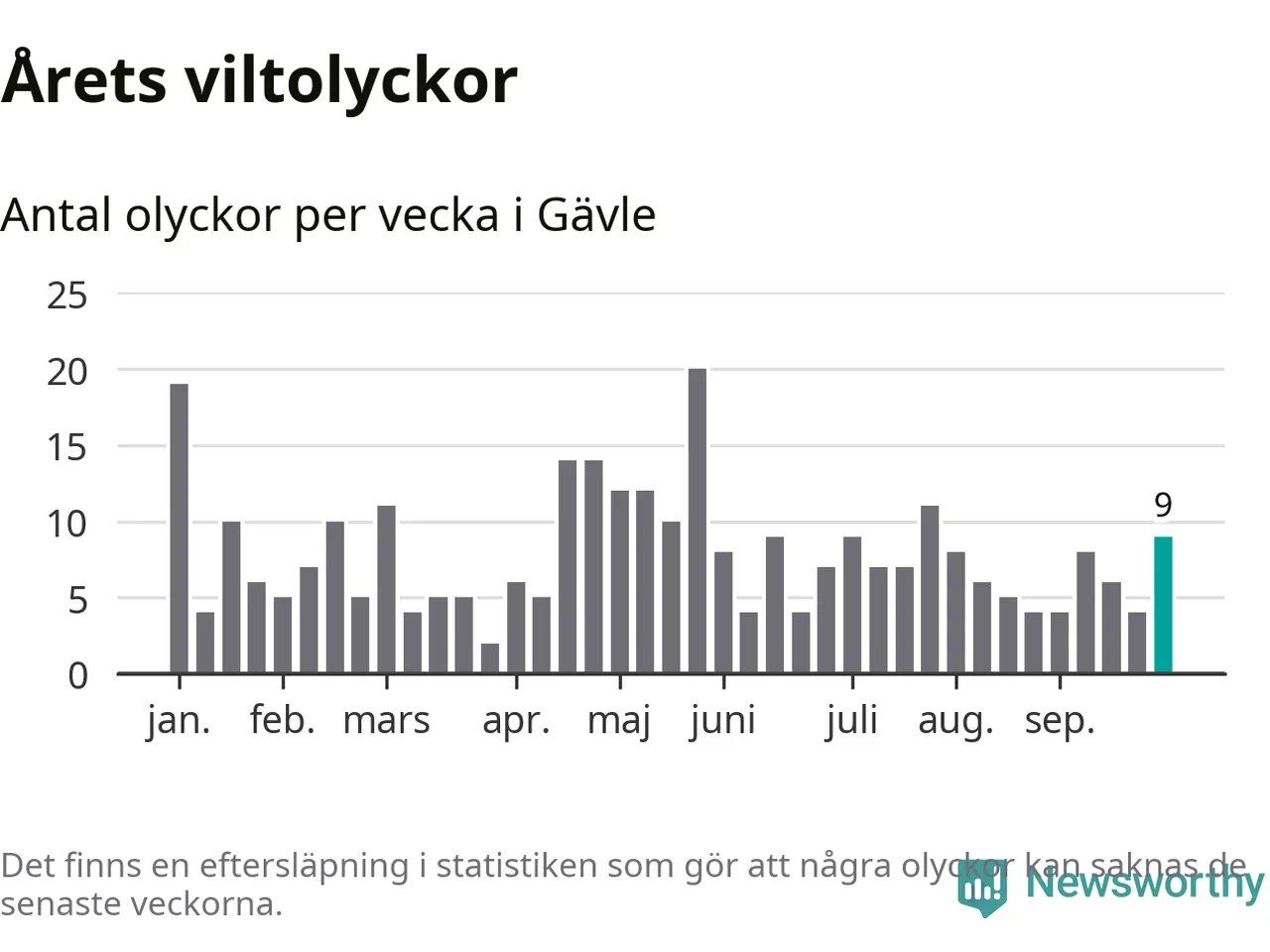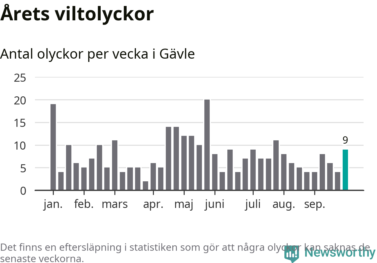 Hittills har nio viltolyckor rapporterats in i Gävle kommun från vecka 40. Se listan här.