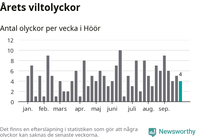 Hittills har fyra viltolyckor rapporterats in i Höörs kommun från vecka 40. Se listan här.