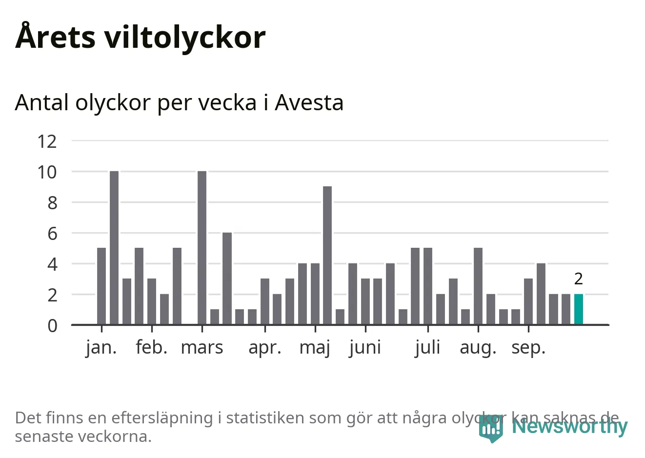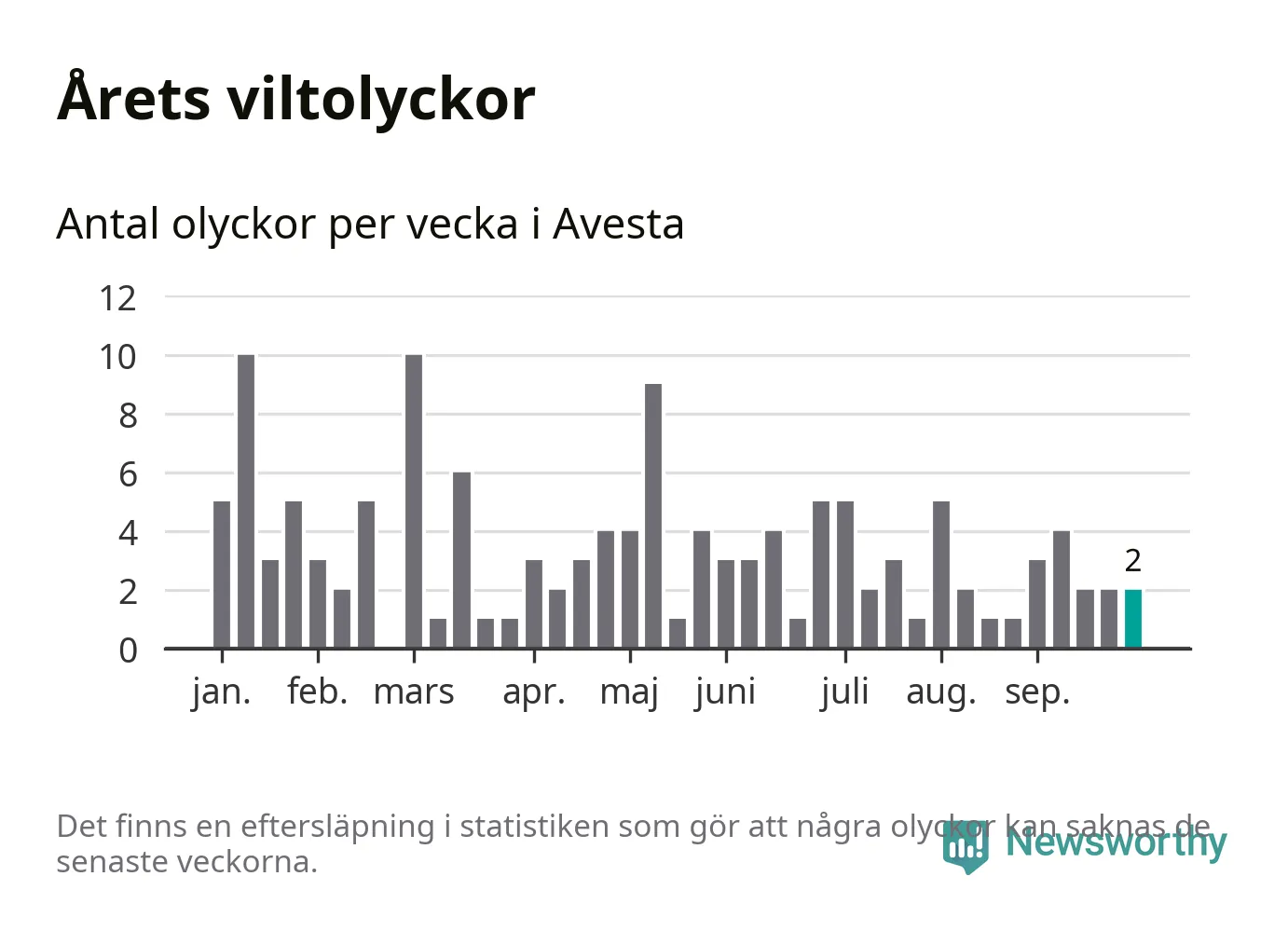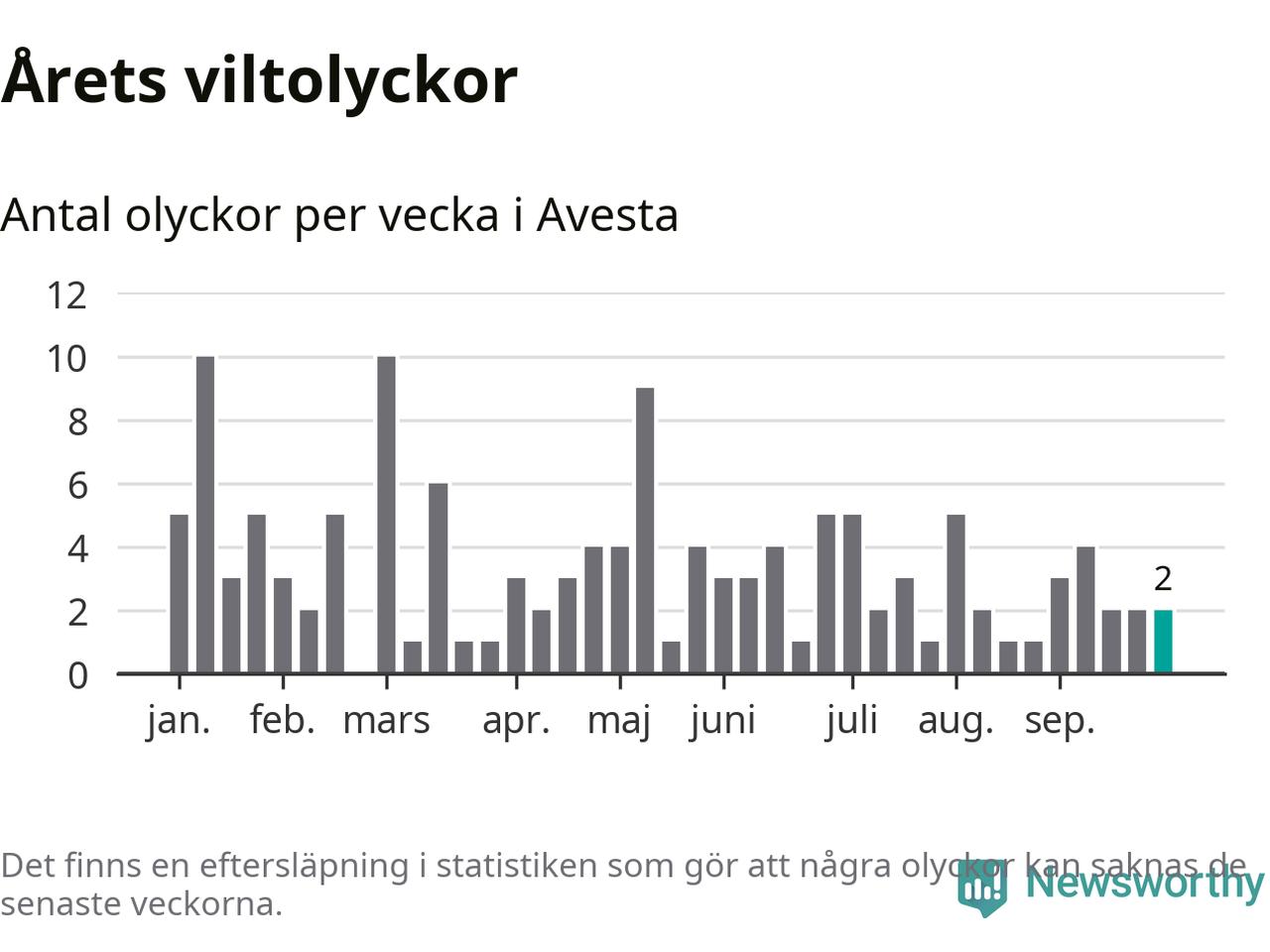 Hittills har två viltolyckor rapporterats in i Avesta kommun från vecka 40. Se listan här.