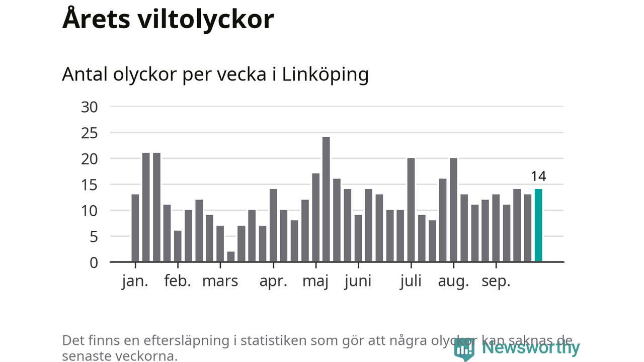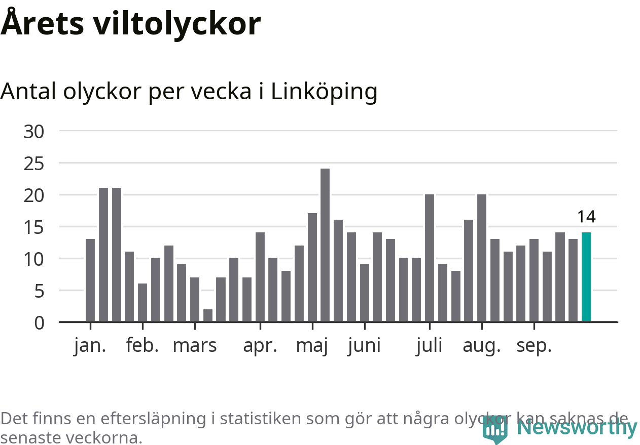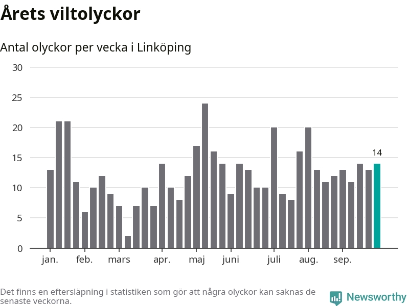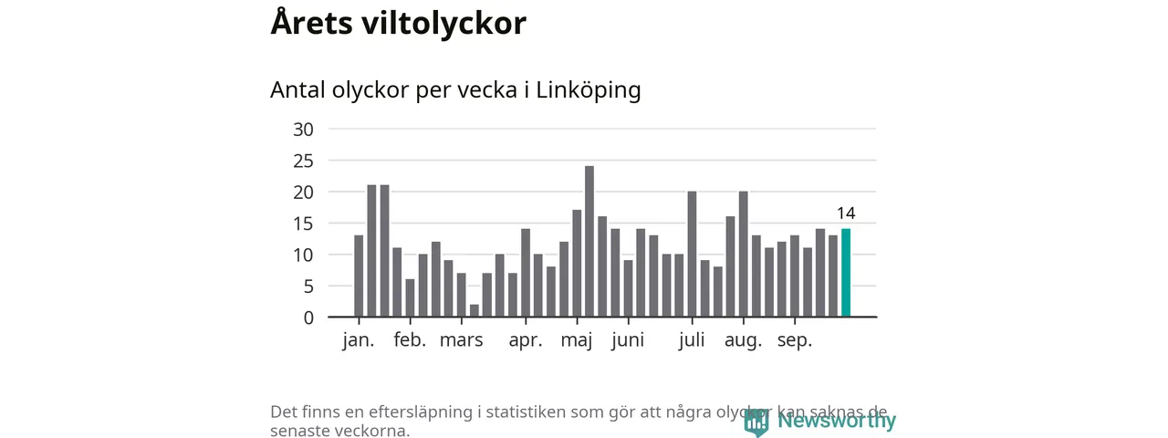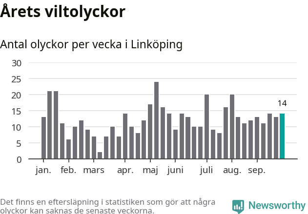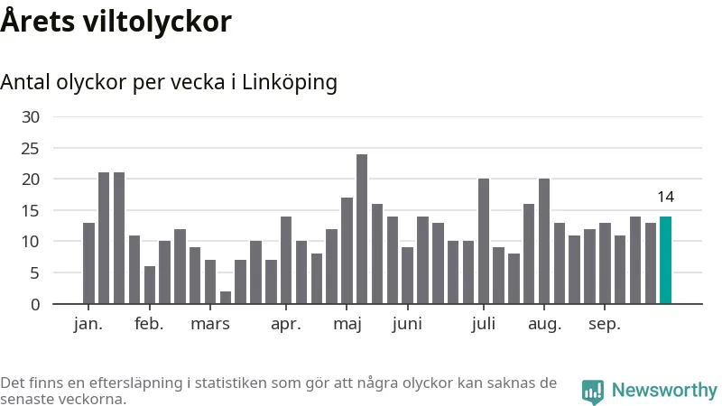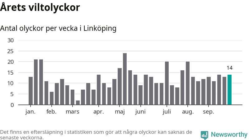 Hittills har 14 viltolyckor rapporterats in i Linköpings kommun från vecka 40. Se listan här.