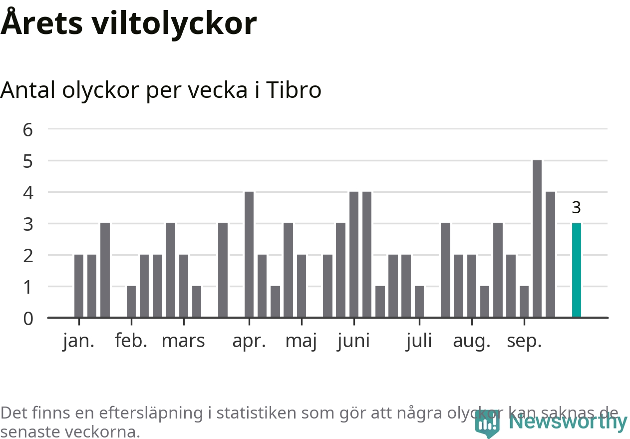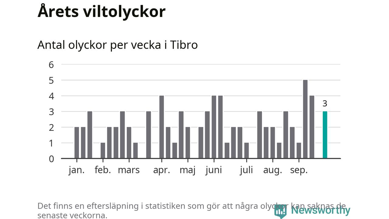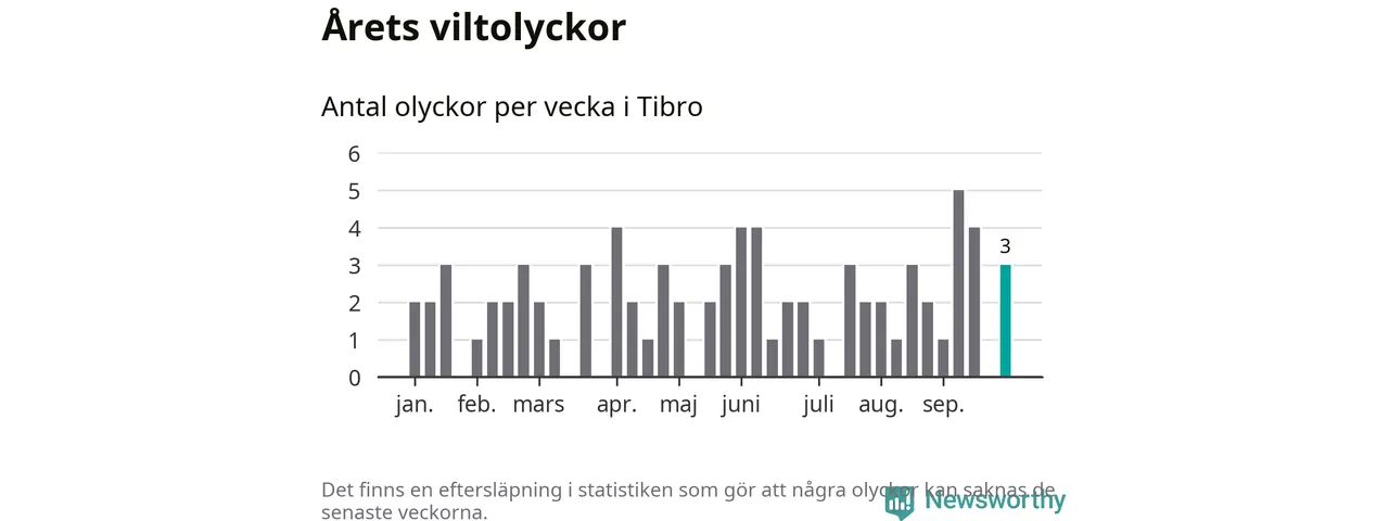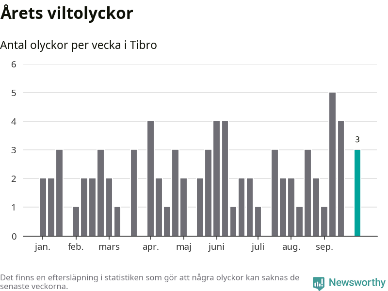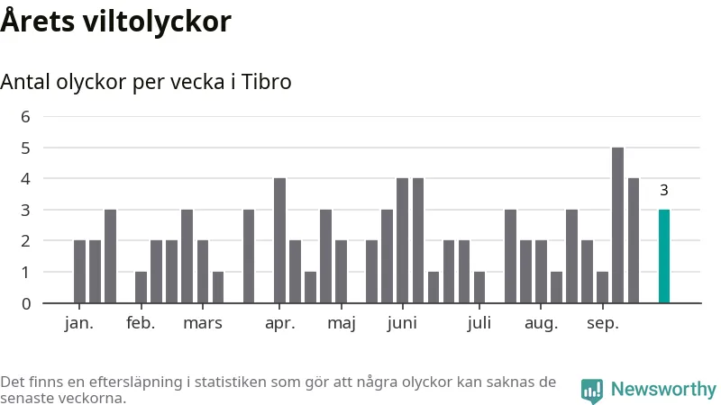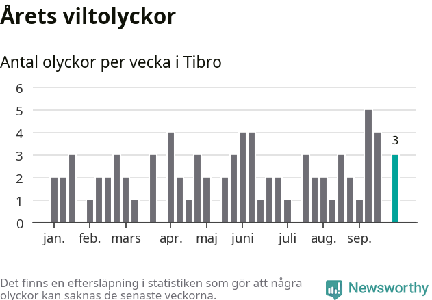 Hittills har tre viltolyckor rapporterats in i Tibro kommun från vecka 40. Se listan här.