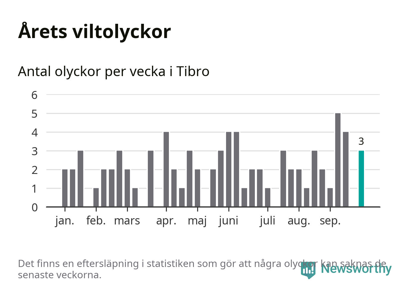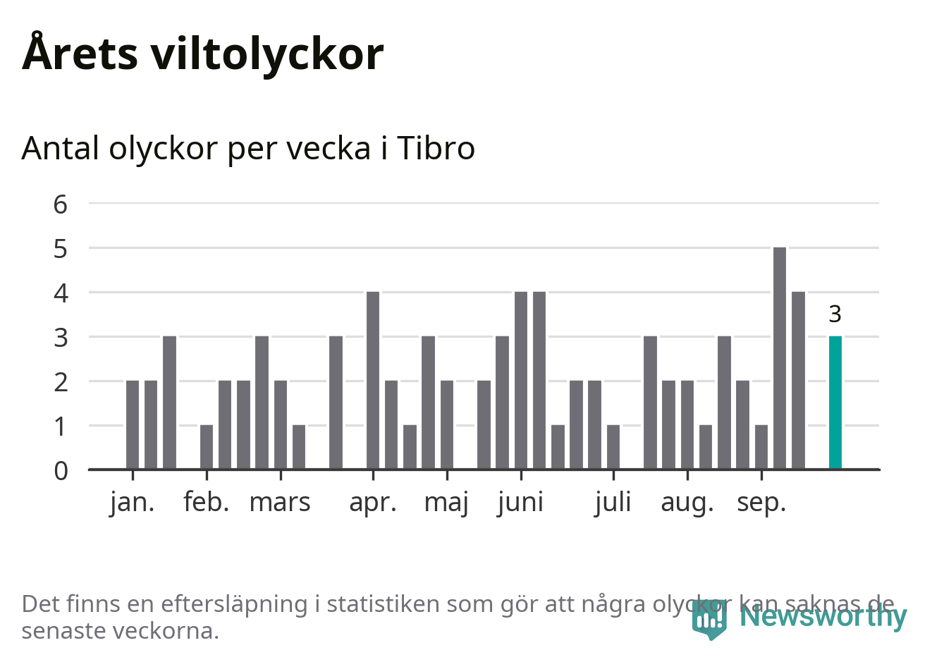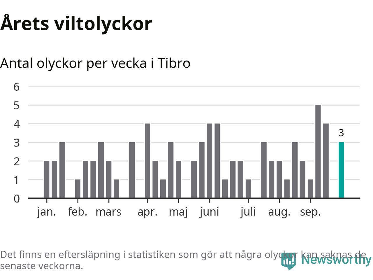 Hittills har tre viltolyckor rapporterats in i Tibro kommun från vecka 40. Se listan här.
