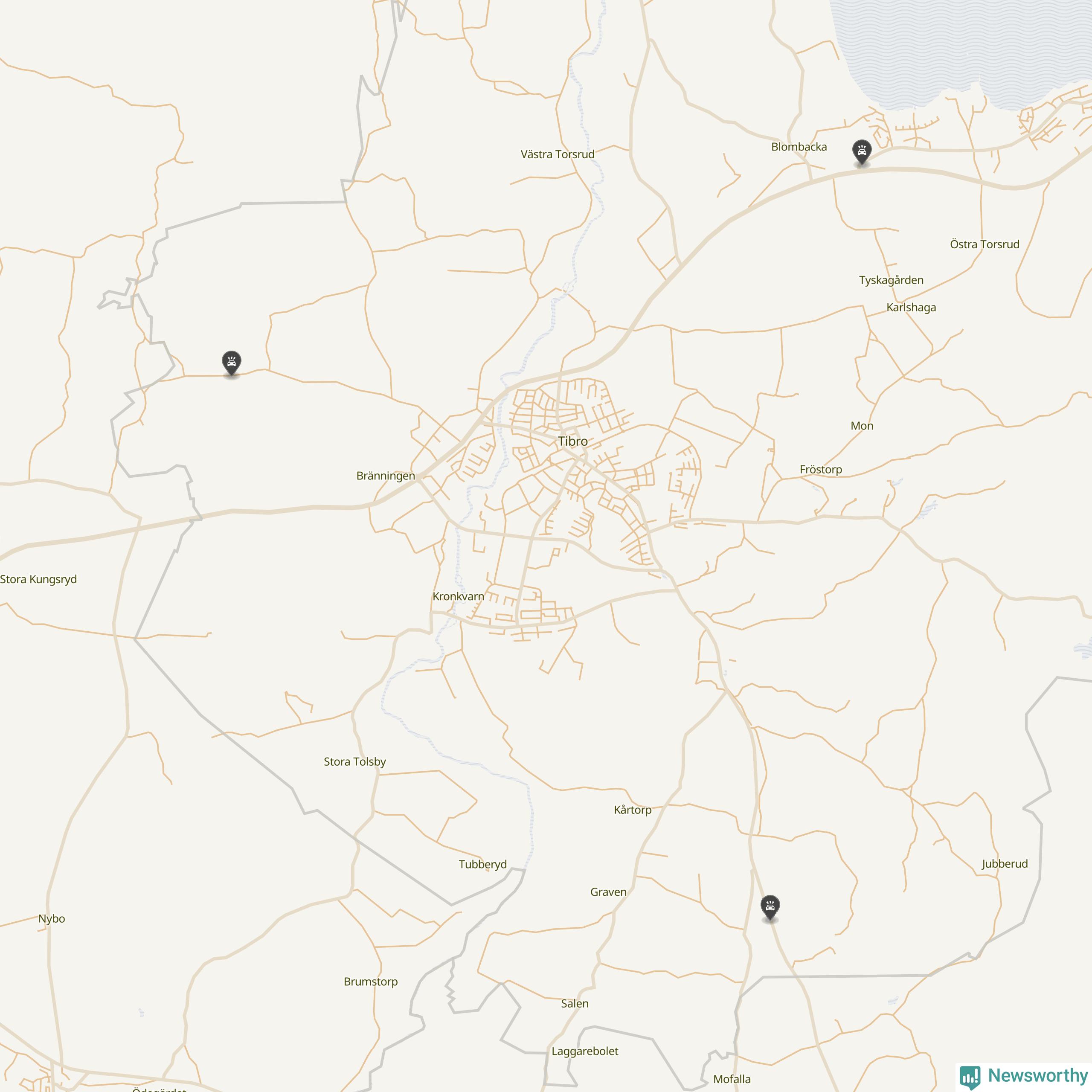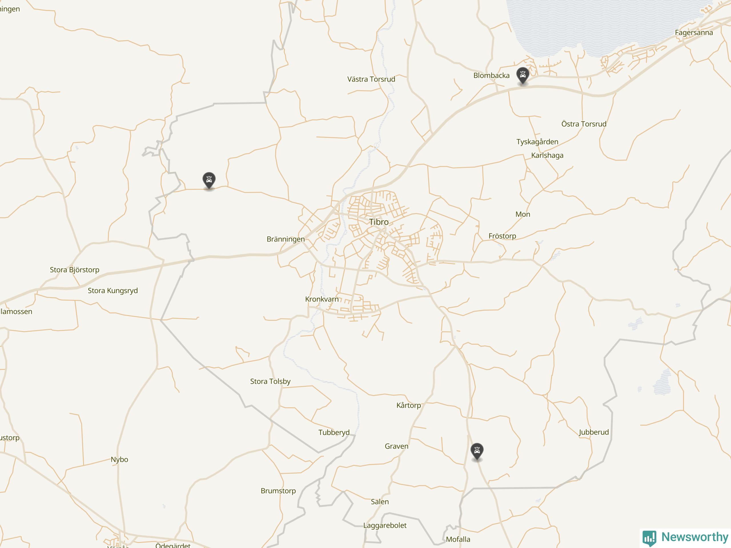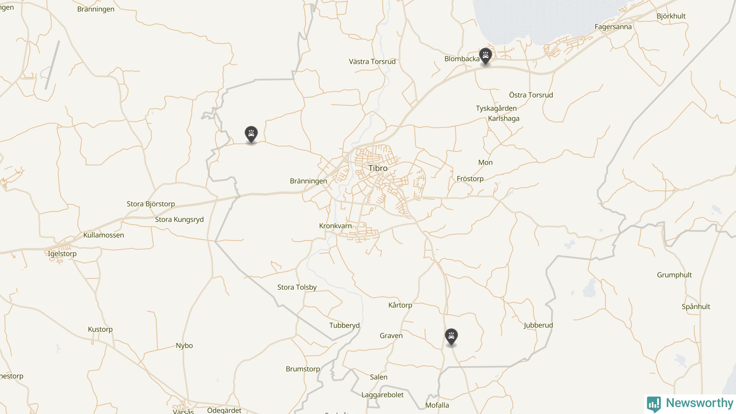 Karta över viltolyckor i Tibro kommun