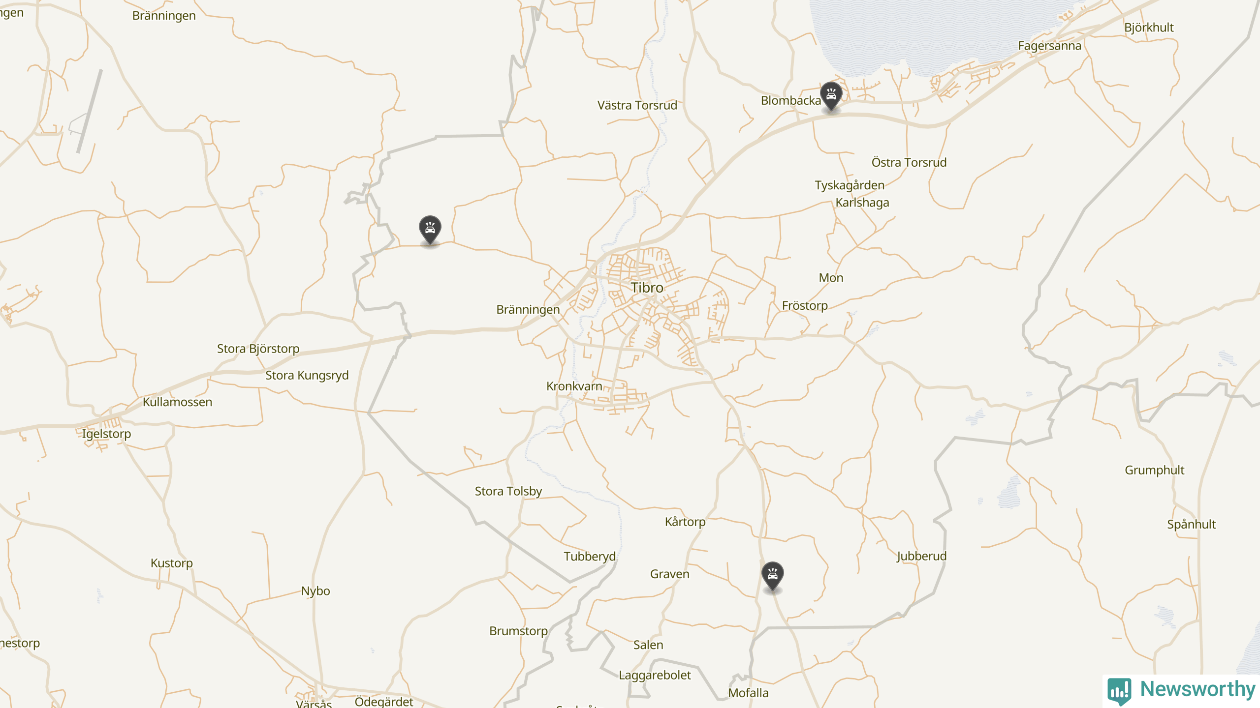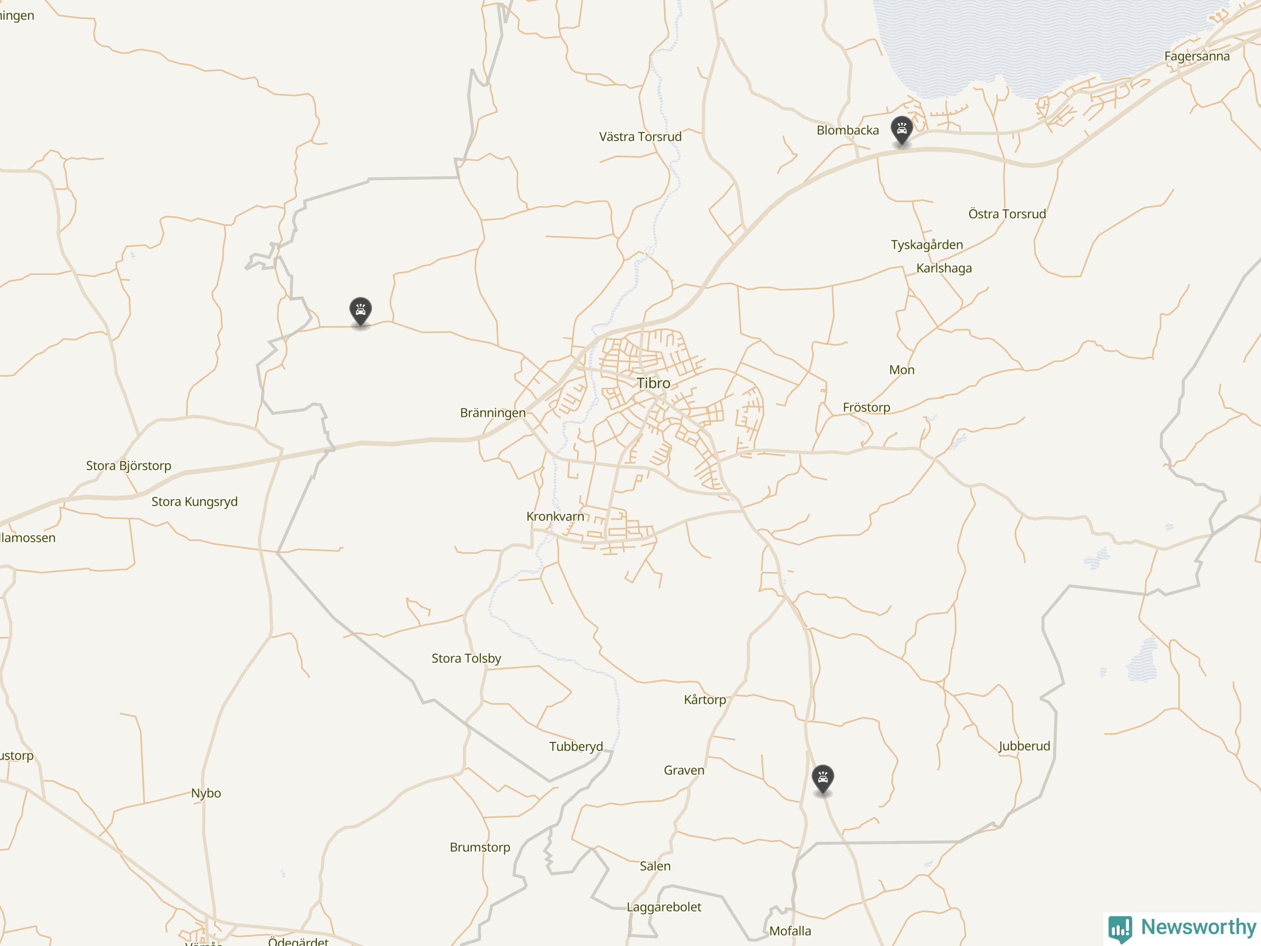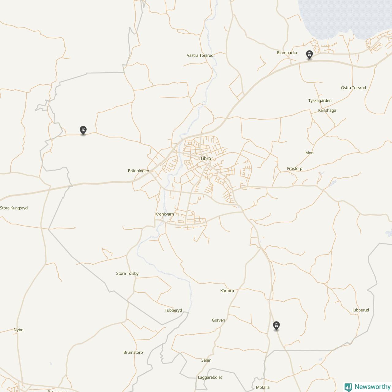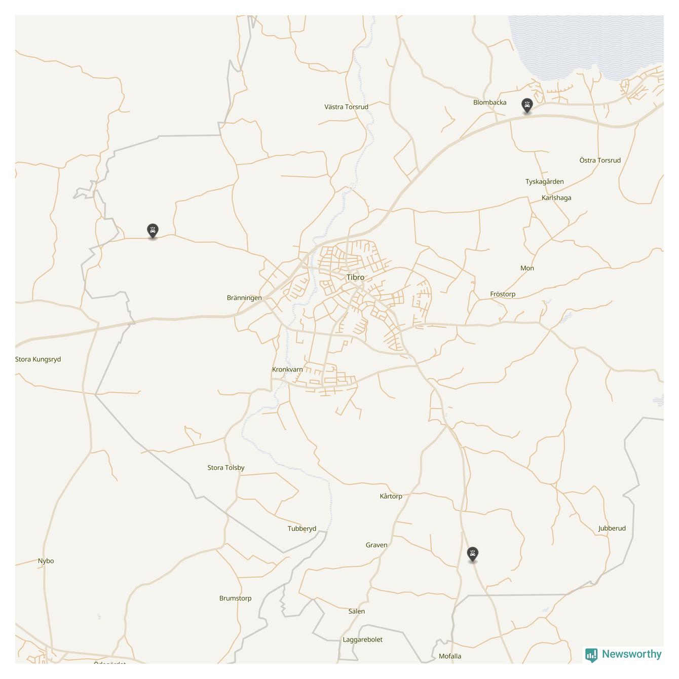 Karta över viltolyckor i Tibro kommun