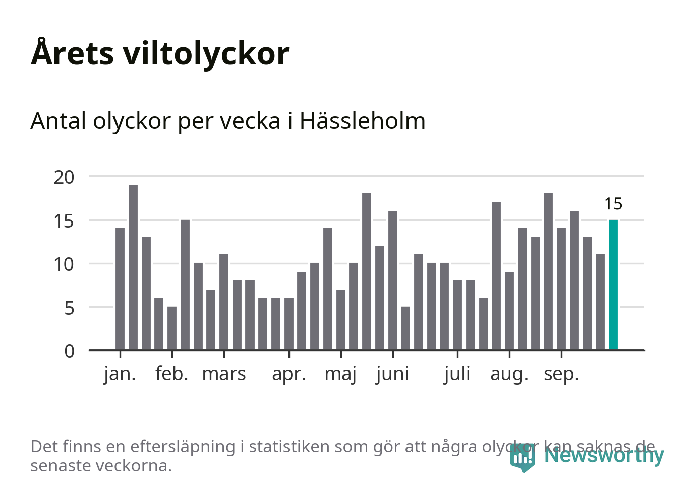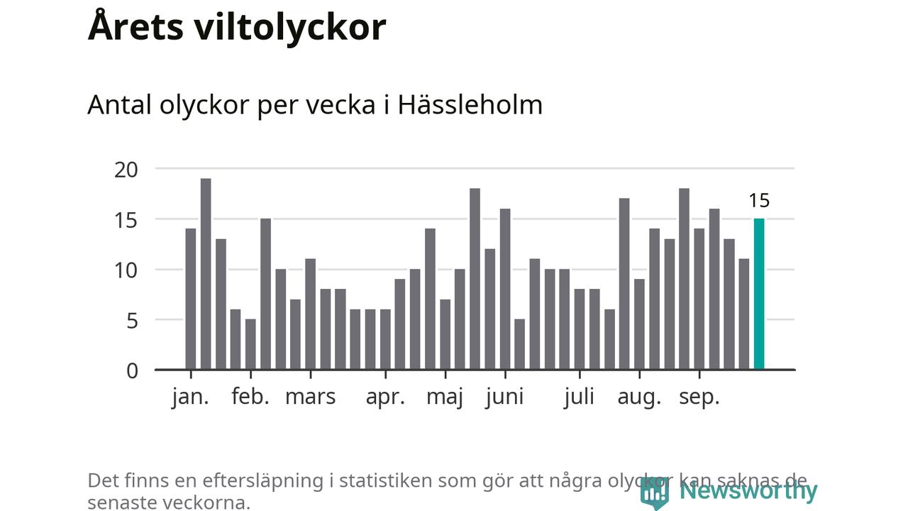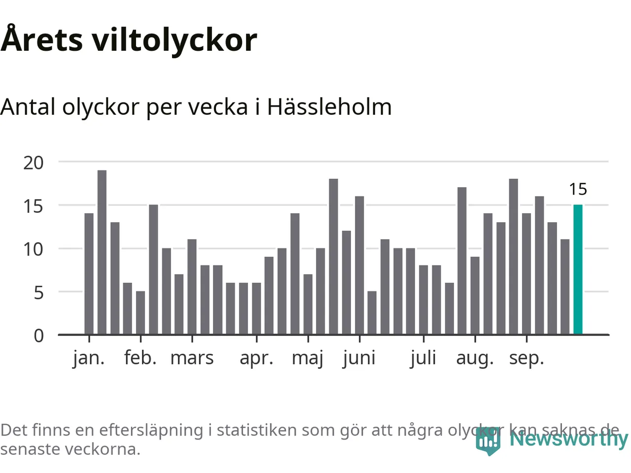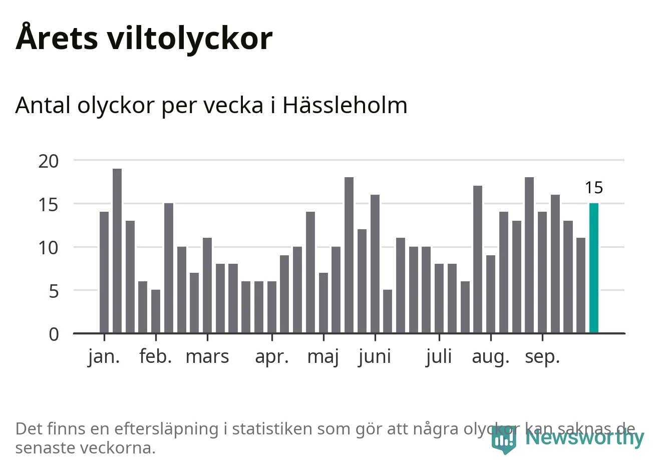 Hittills har 15 viltolyckor rapporterats in i Hässleholms kommun från vecka 40. Se listan här.