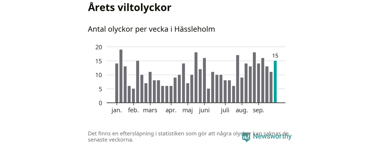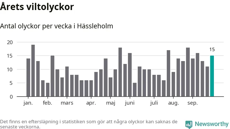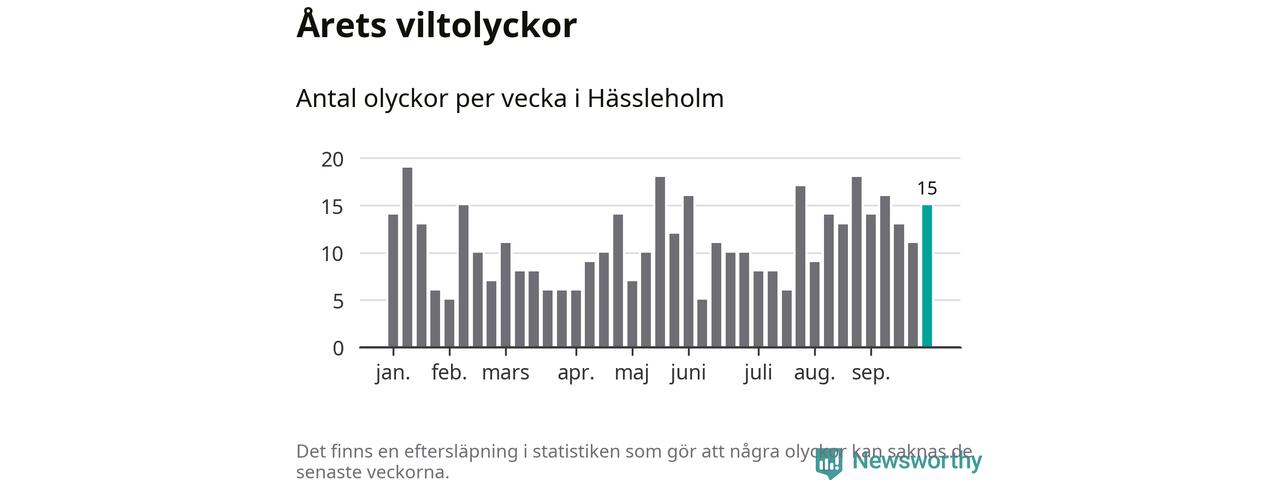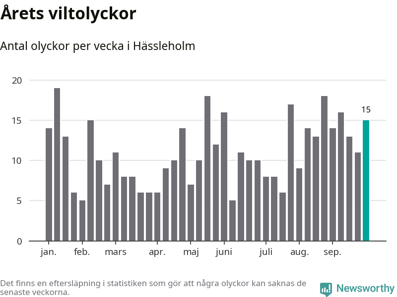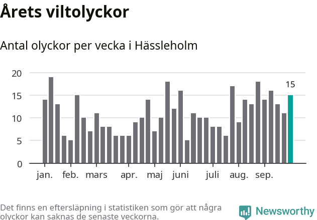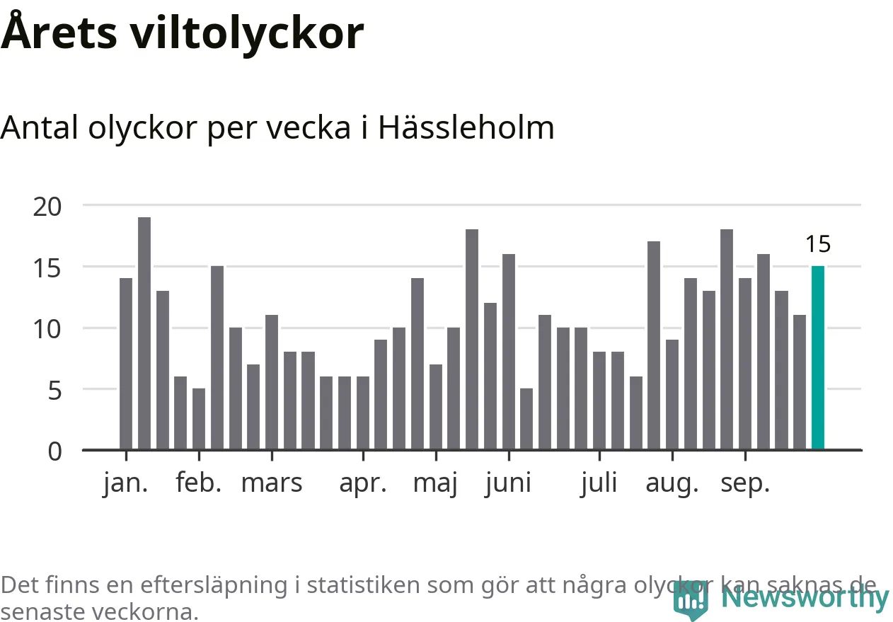 Hittills har 15 viltolyckor rapporterats in i Hässleholms kommun från vecka 40. Se listan här.