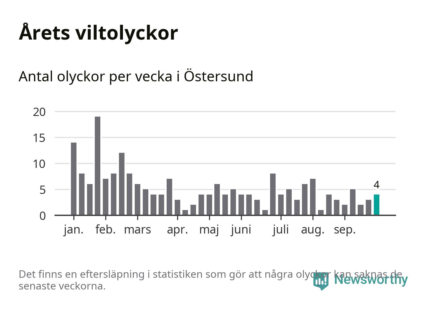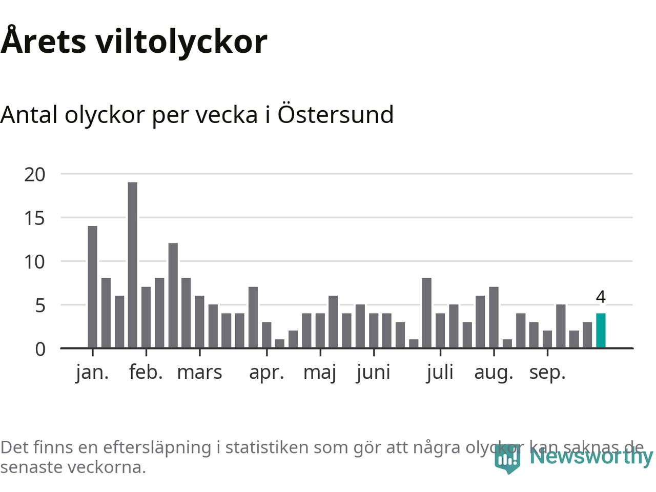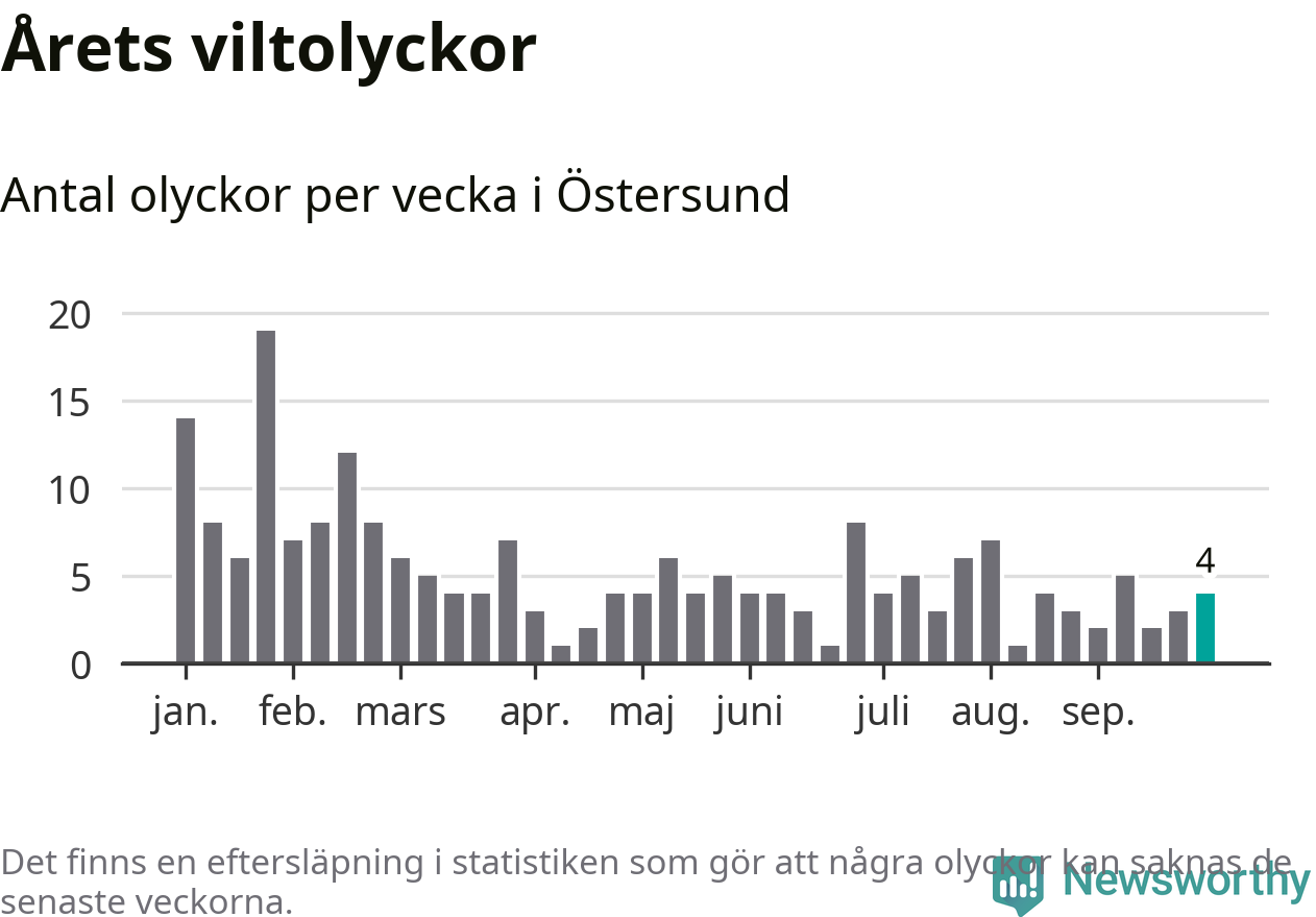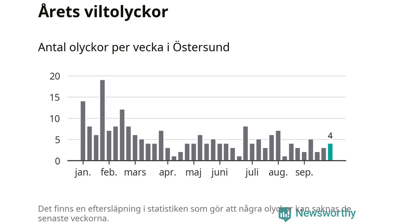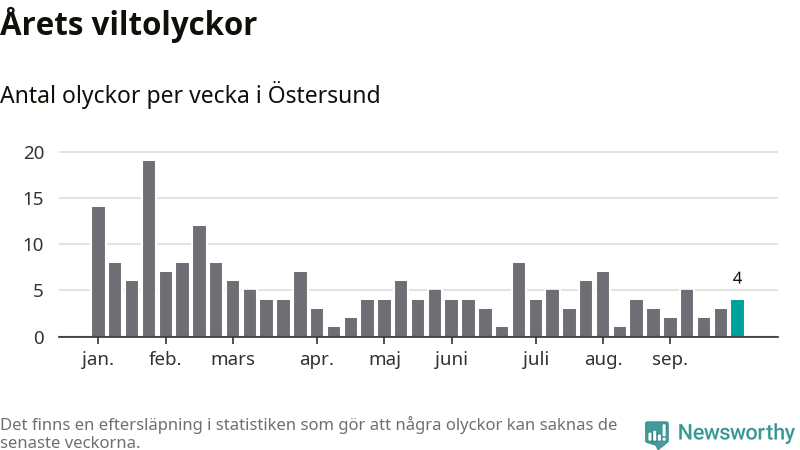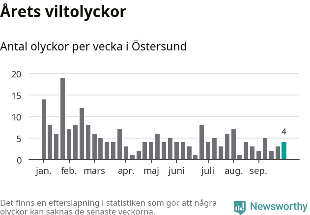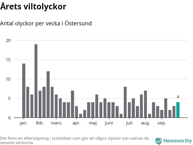 sett till de senaste tio årens statistik. I statistiken ingår inte olyckor med ren, som här räknas som tamdjur.