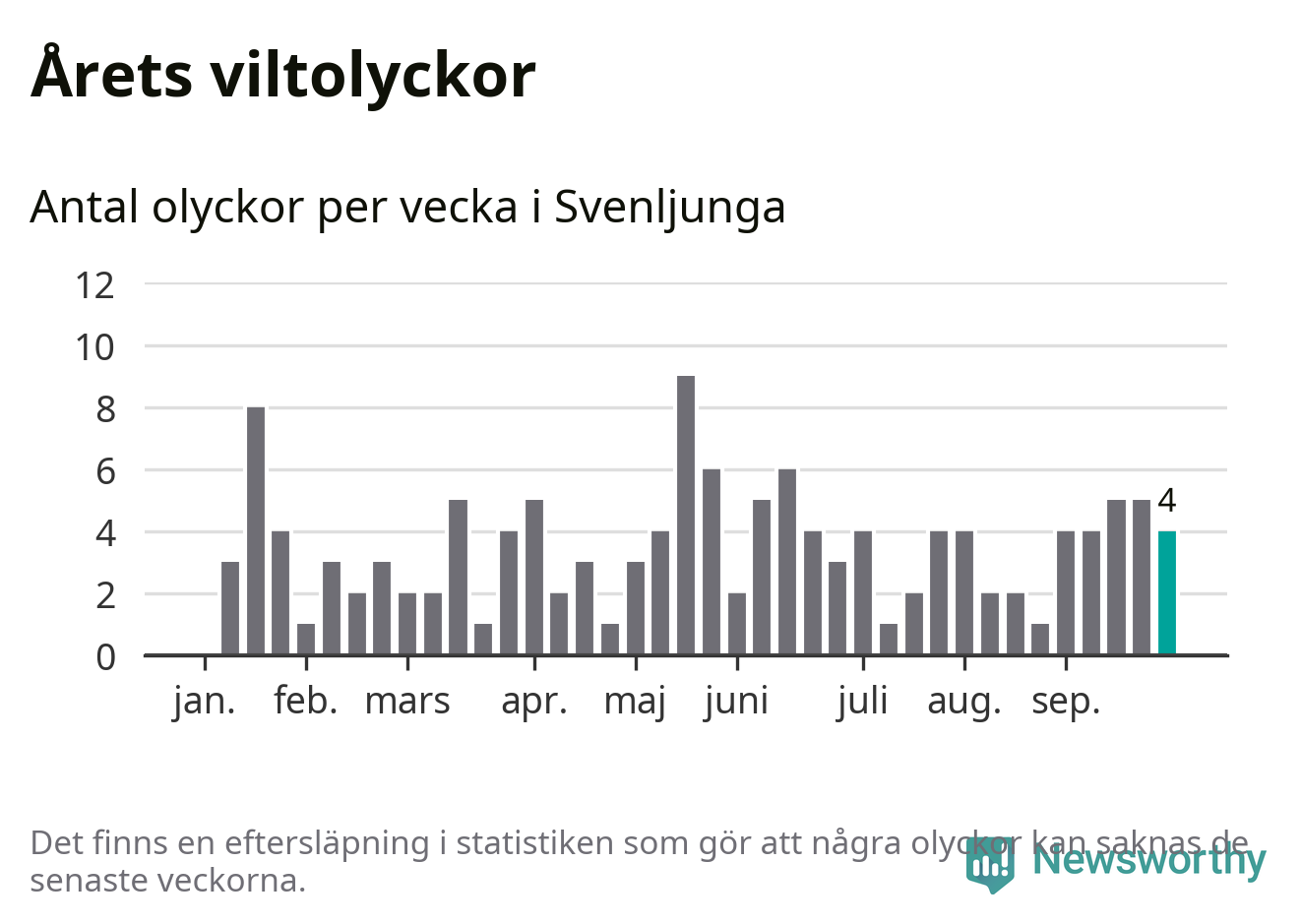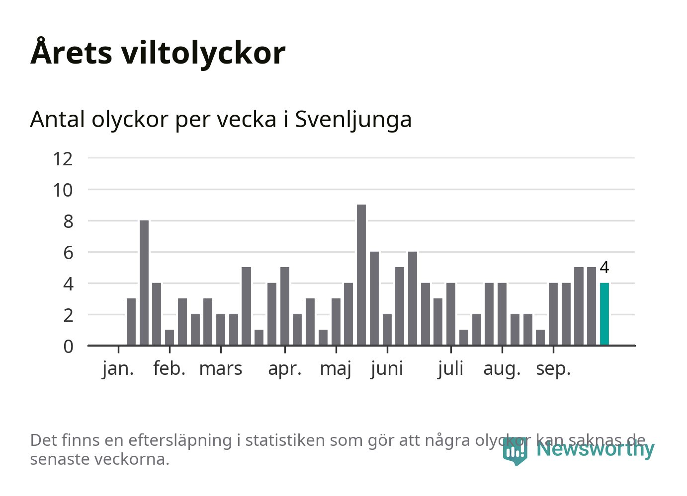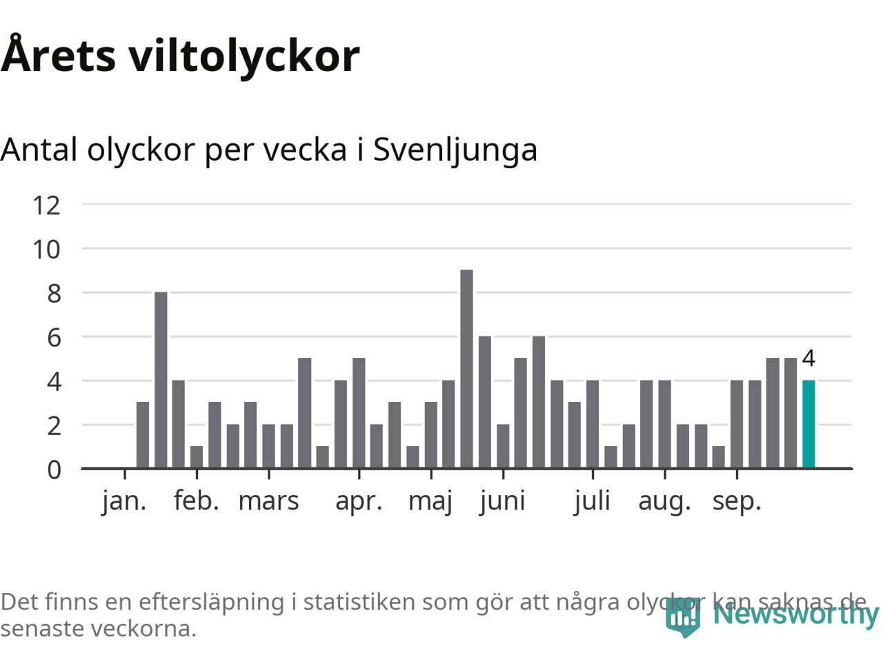 Hittills har fyra viltolyckor rapporterats in i Svenljunga kommun från vecka 40. Se listan här.