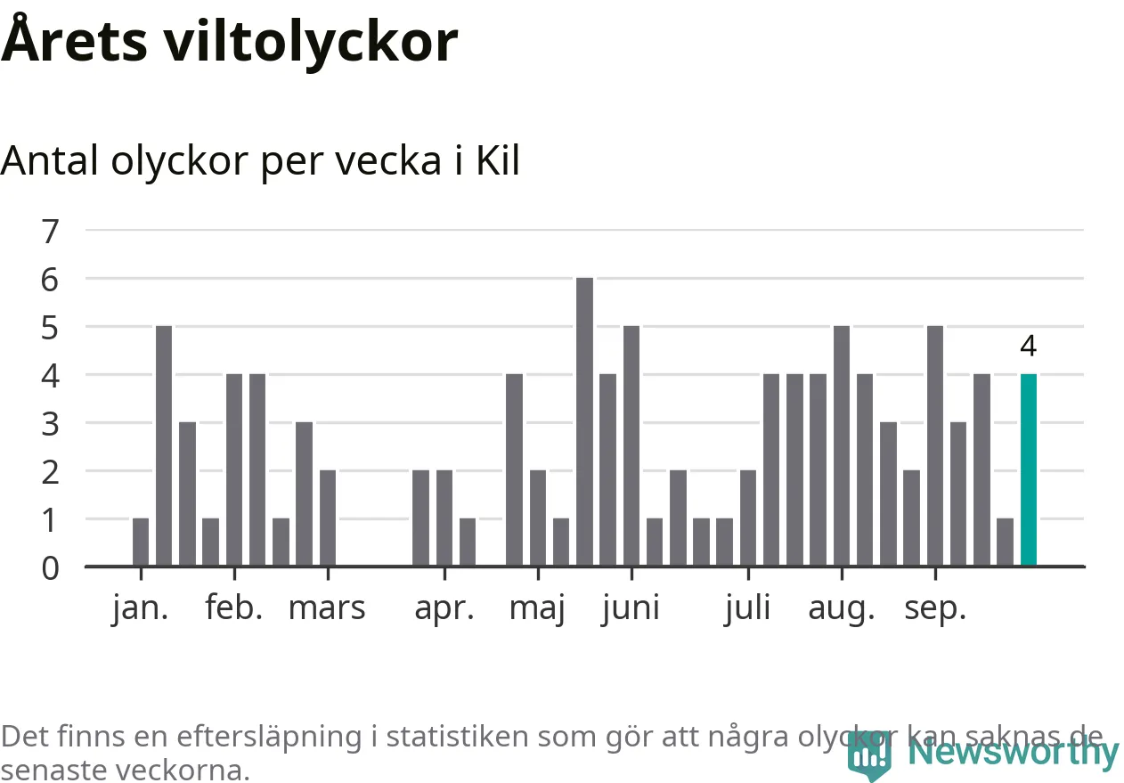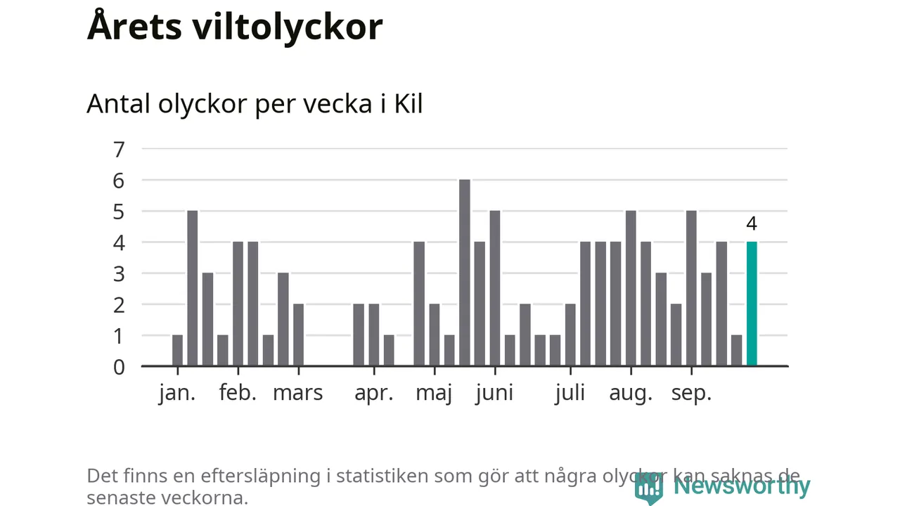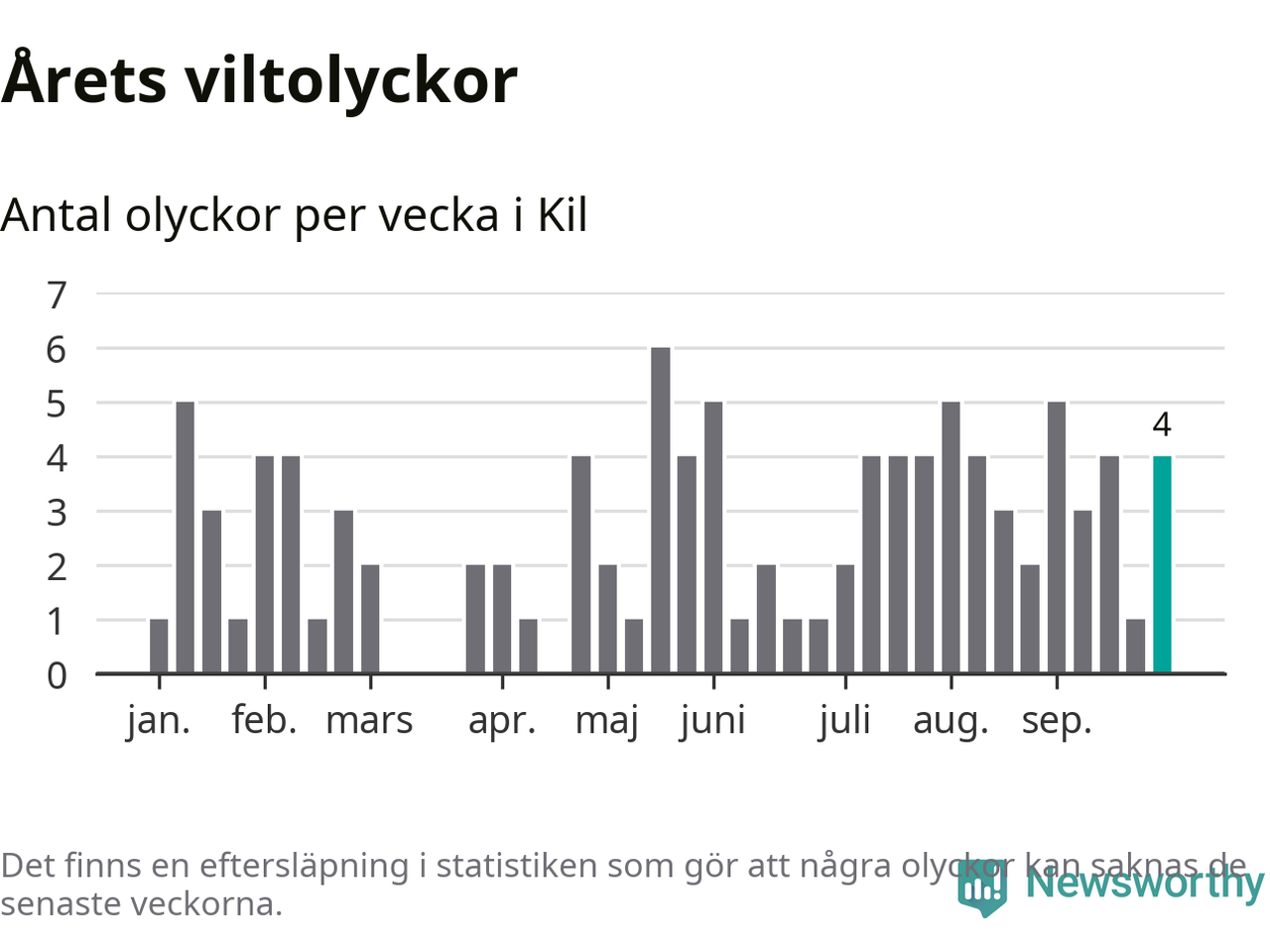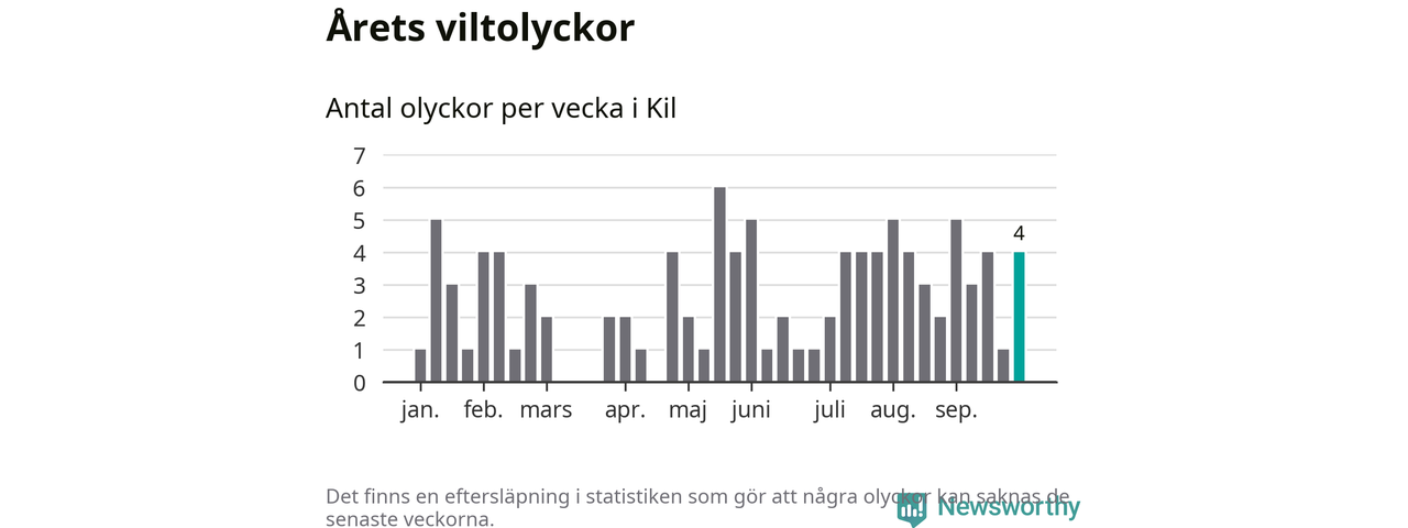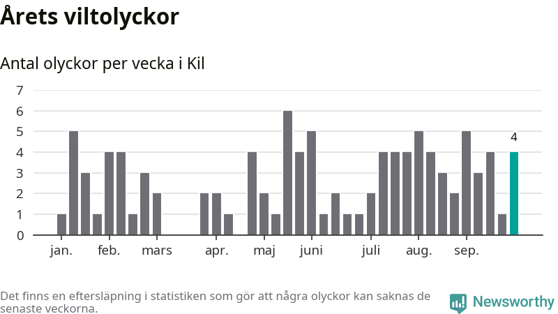 Hittills har fyra viltolyckor rapporterats in i Kils kommun från vecka 40. Se listan här.