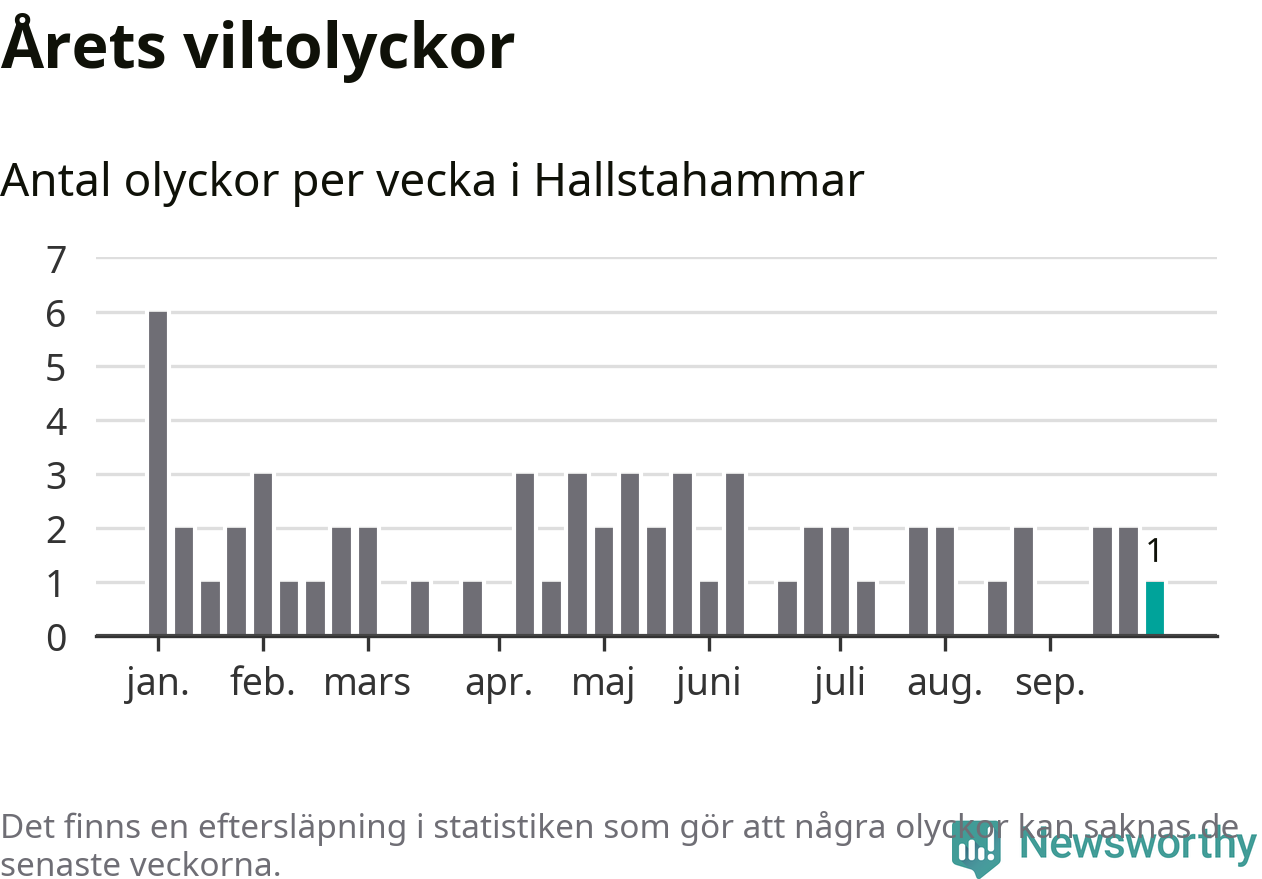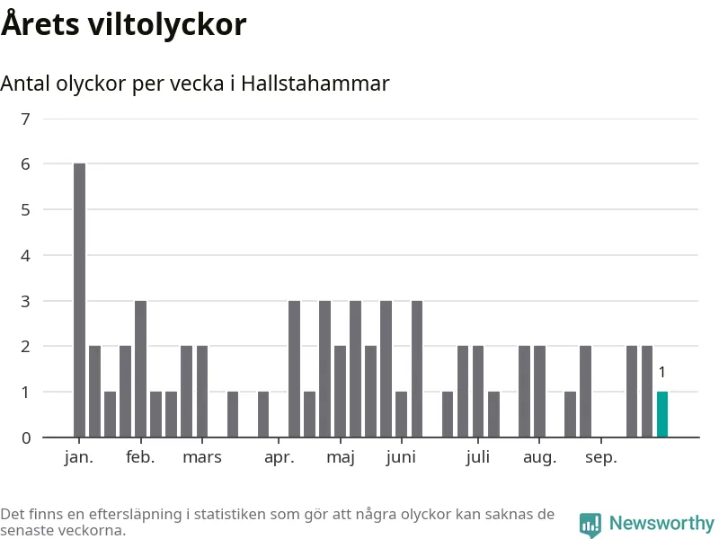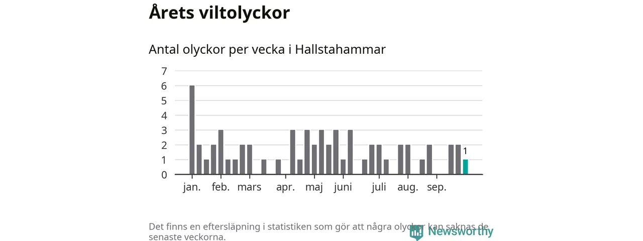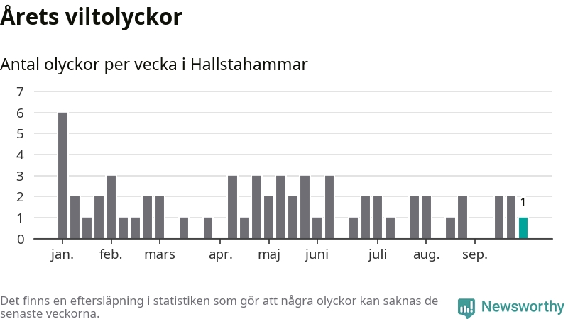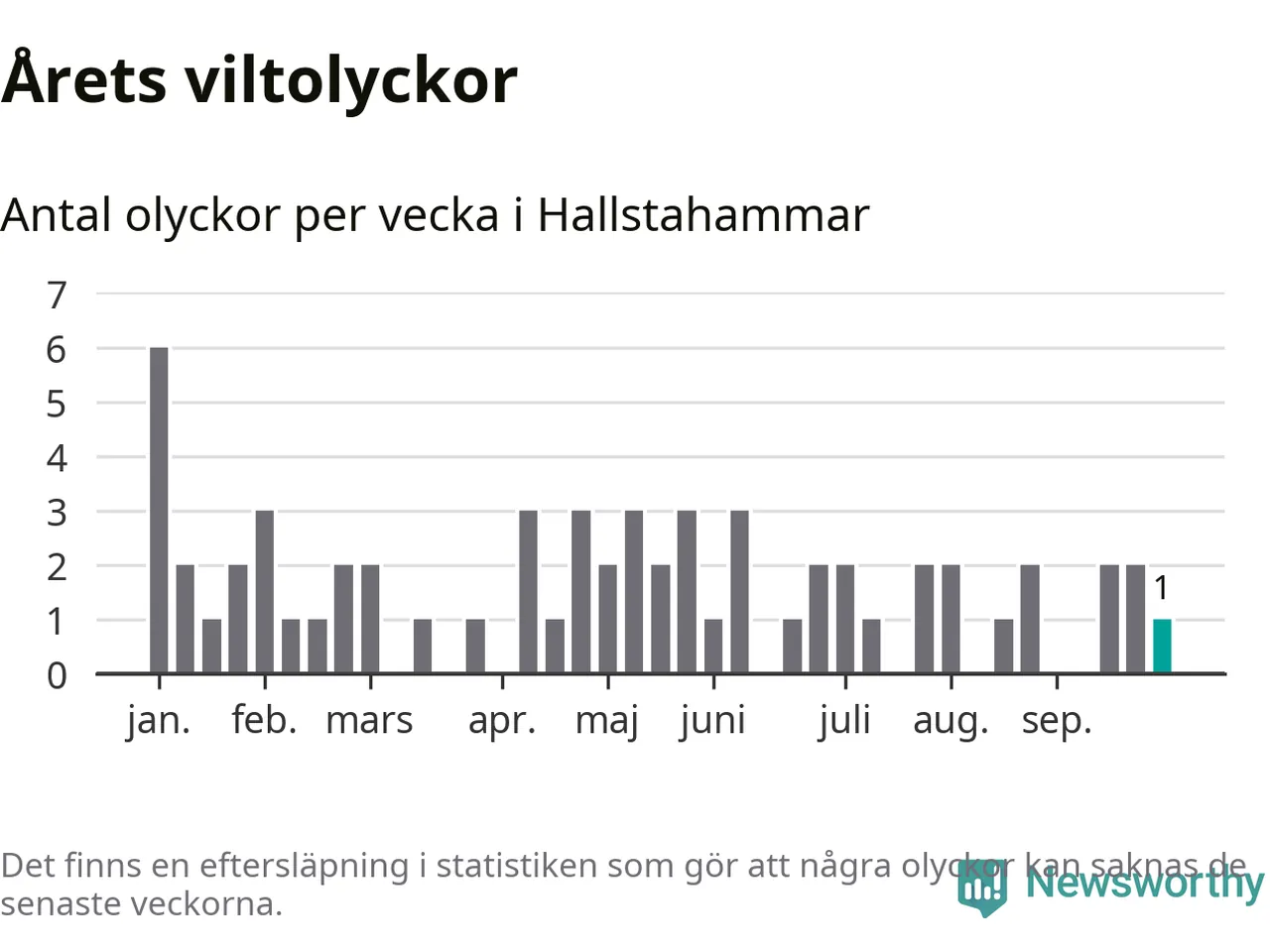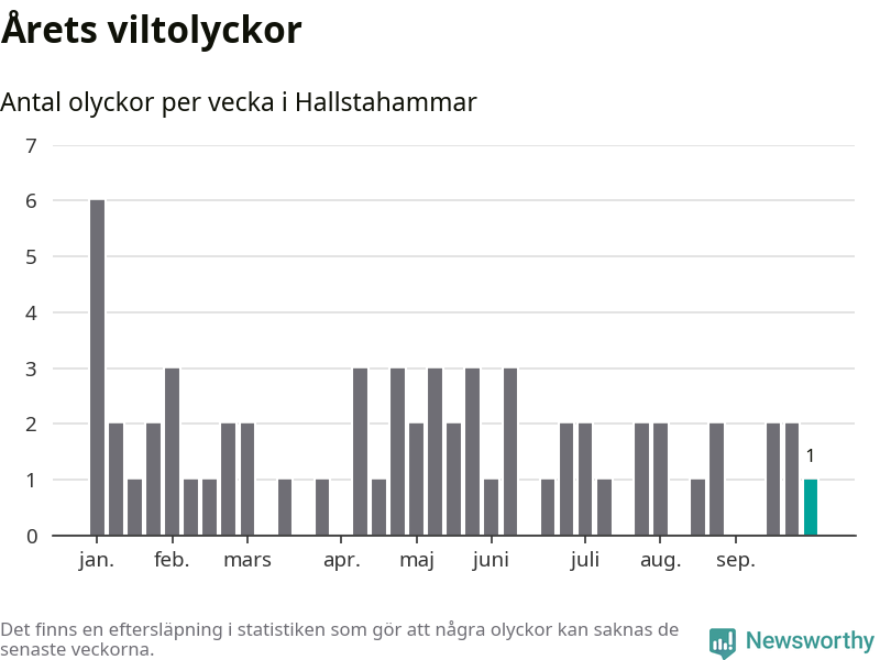 Från förra veckan (vecka 40) har hittills en viltolycka rapporterats in i Hallstahammars kommun.