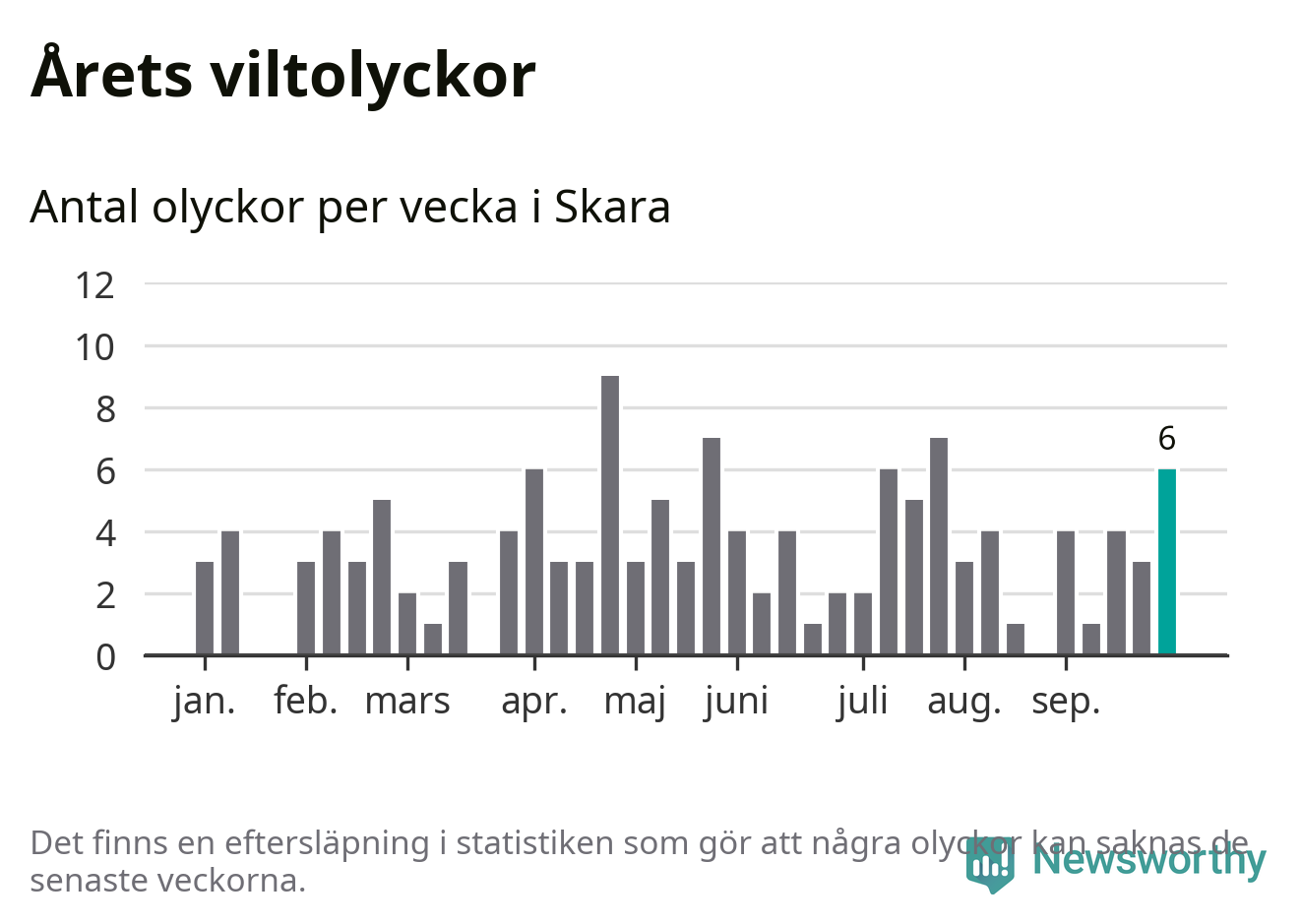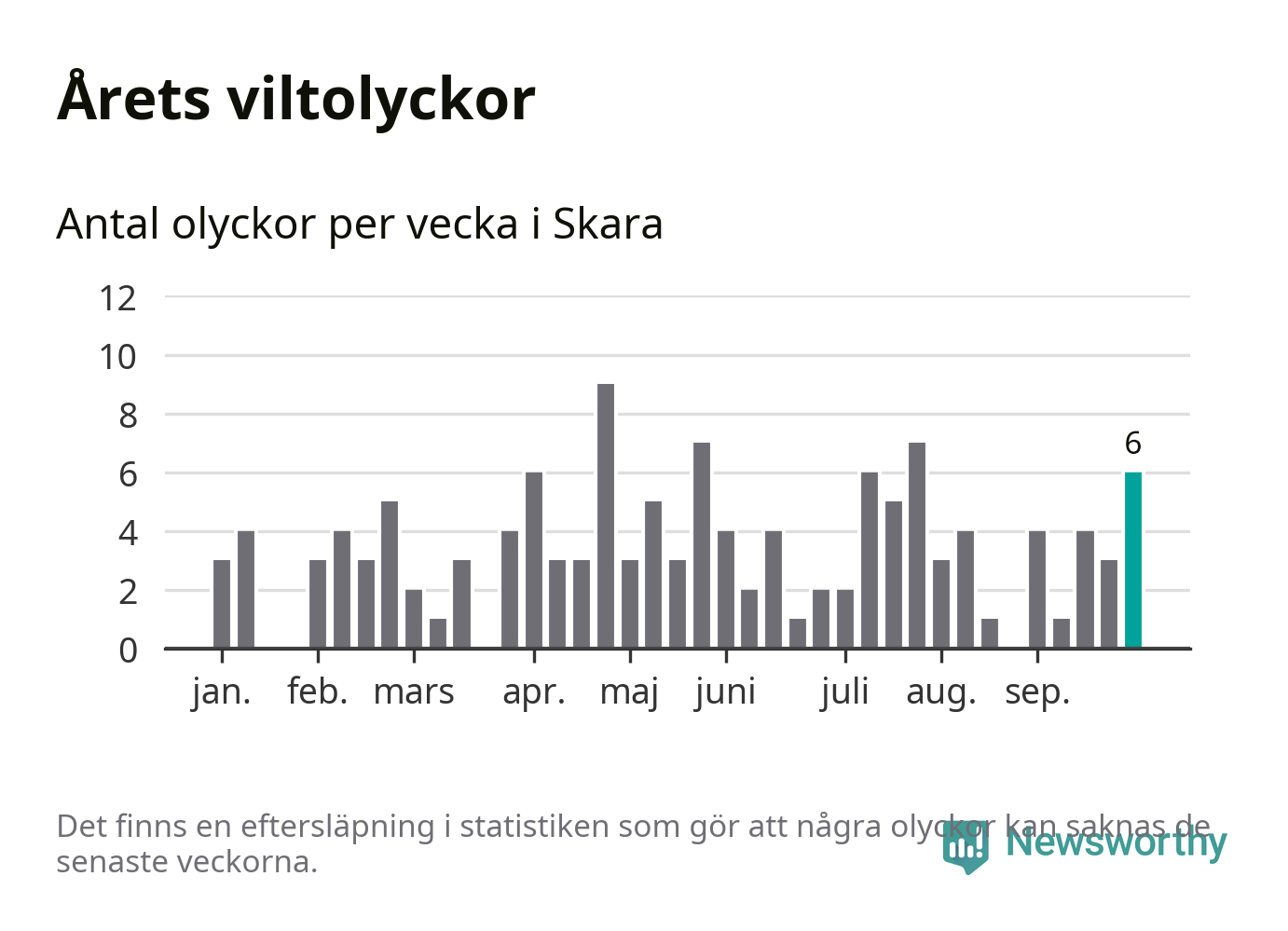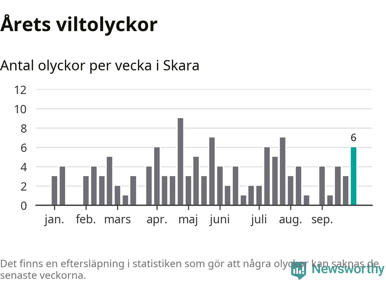 Hittills har sex viltolyckor rapporterats in i Skara kommun från vecka 40. Se listan här.