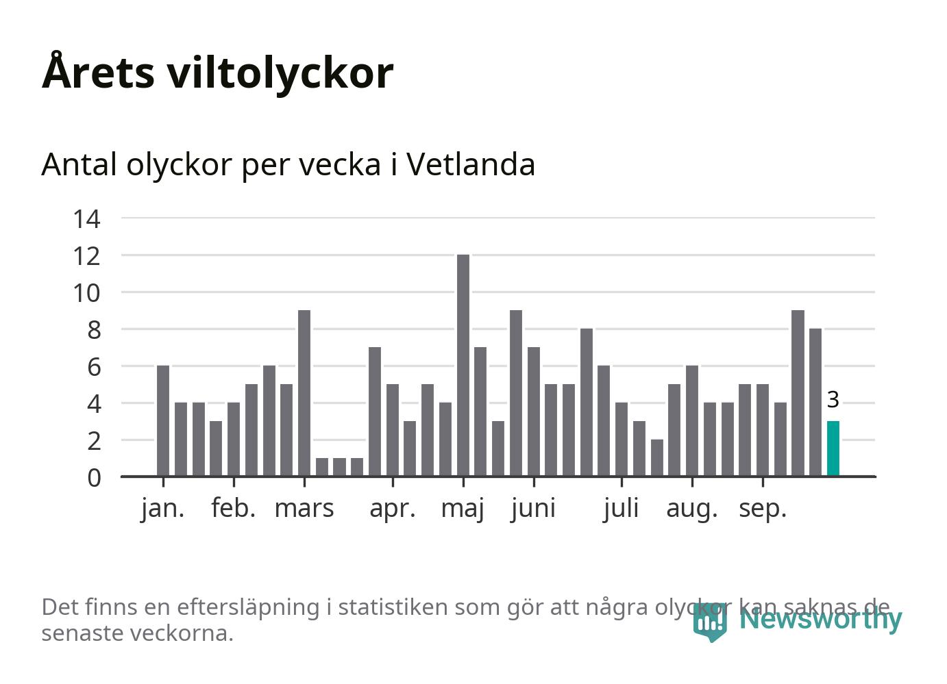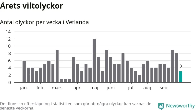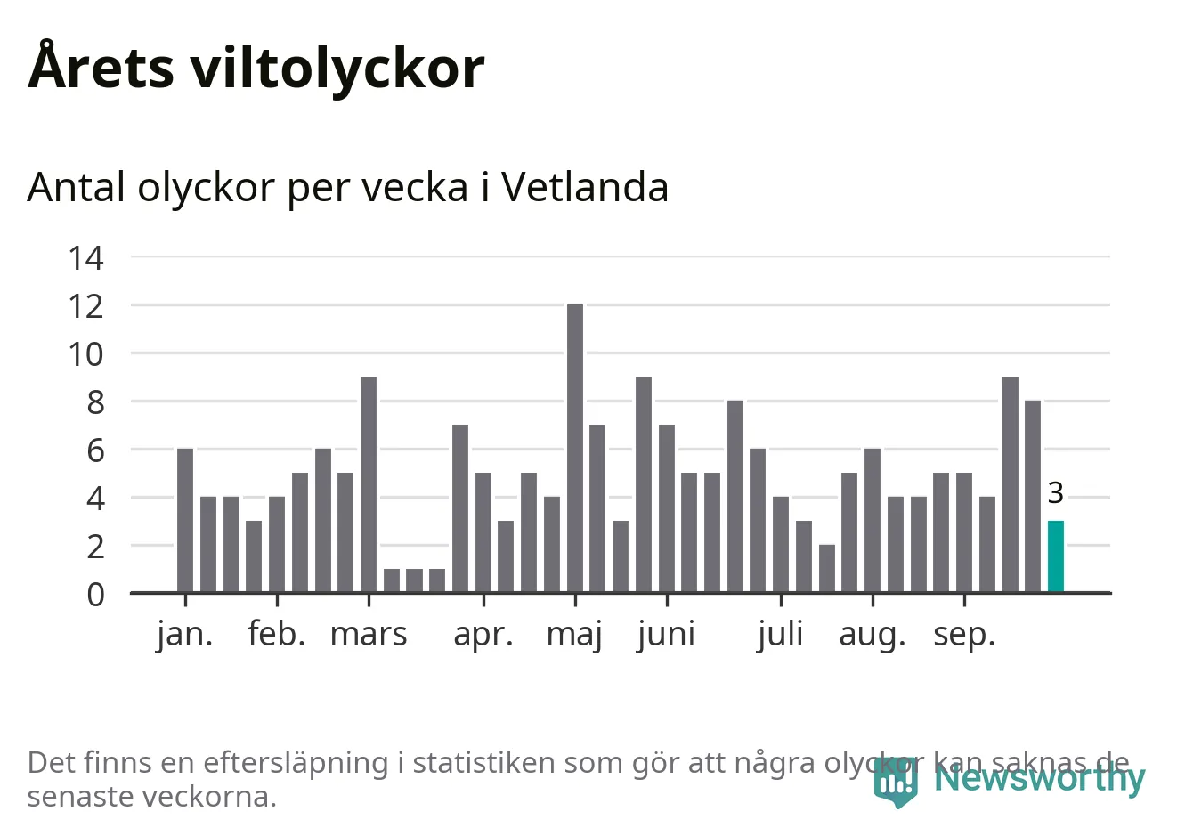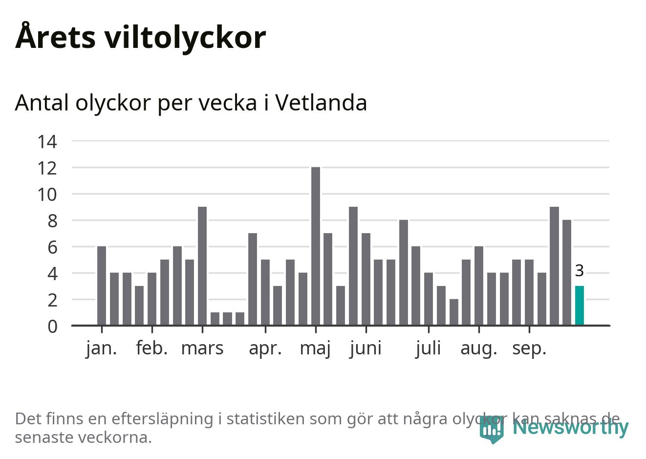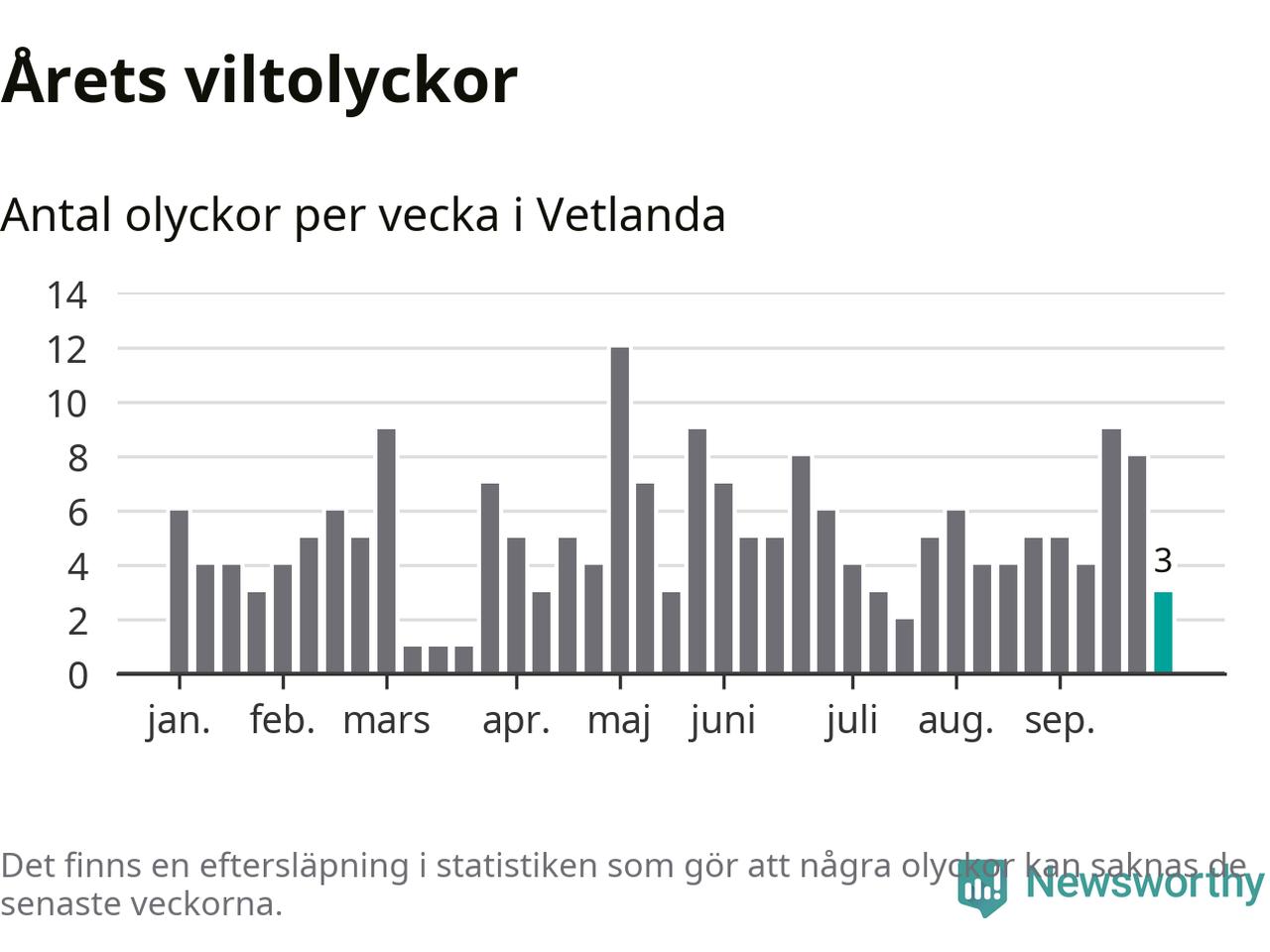 Hittills har tre viltolyckor rapporterats in i Vetlanda kommun från vecka 40. Se listan här.