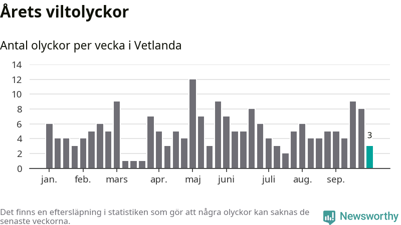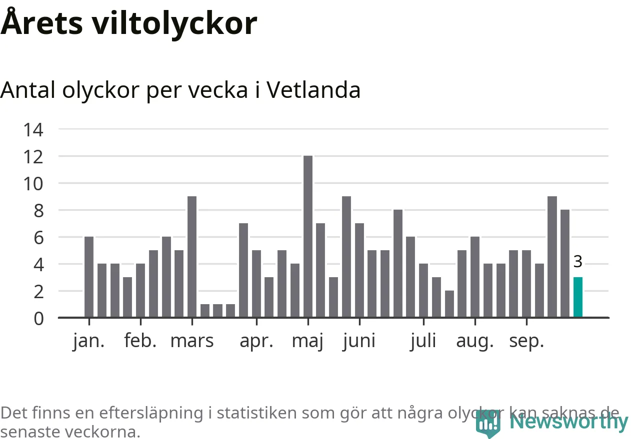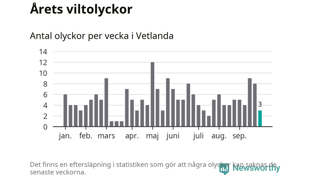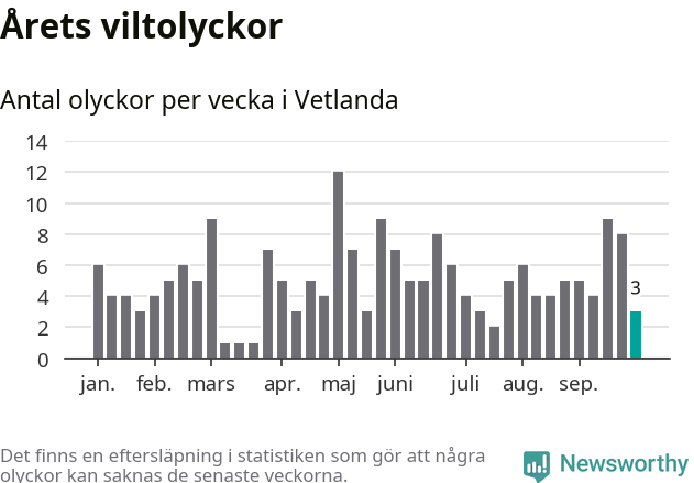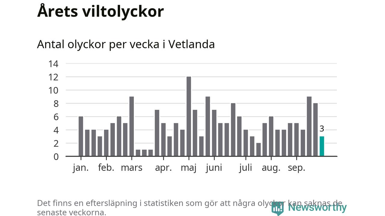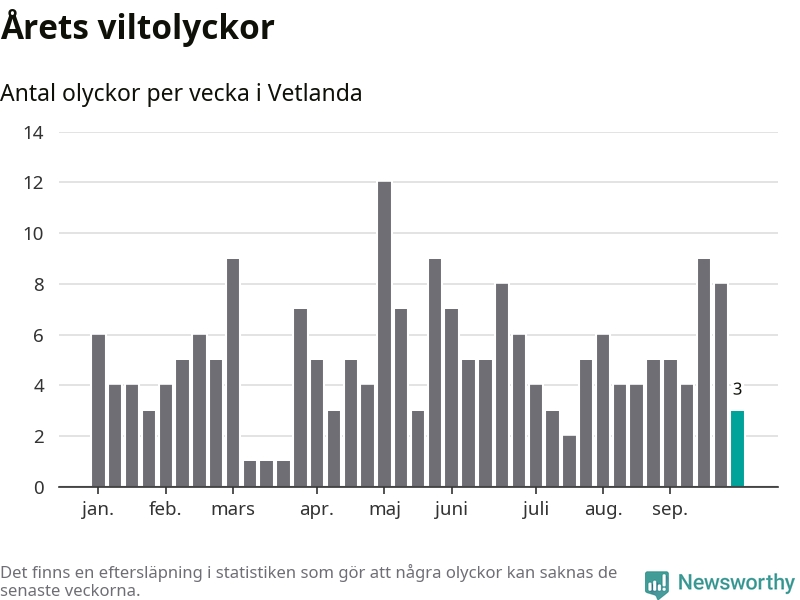 Hittills har tre viltolyckor rapporterats in i Vetlanda kommun från vecka 40. Se listan här.