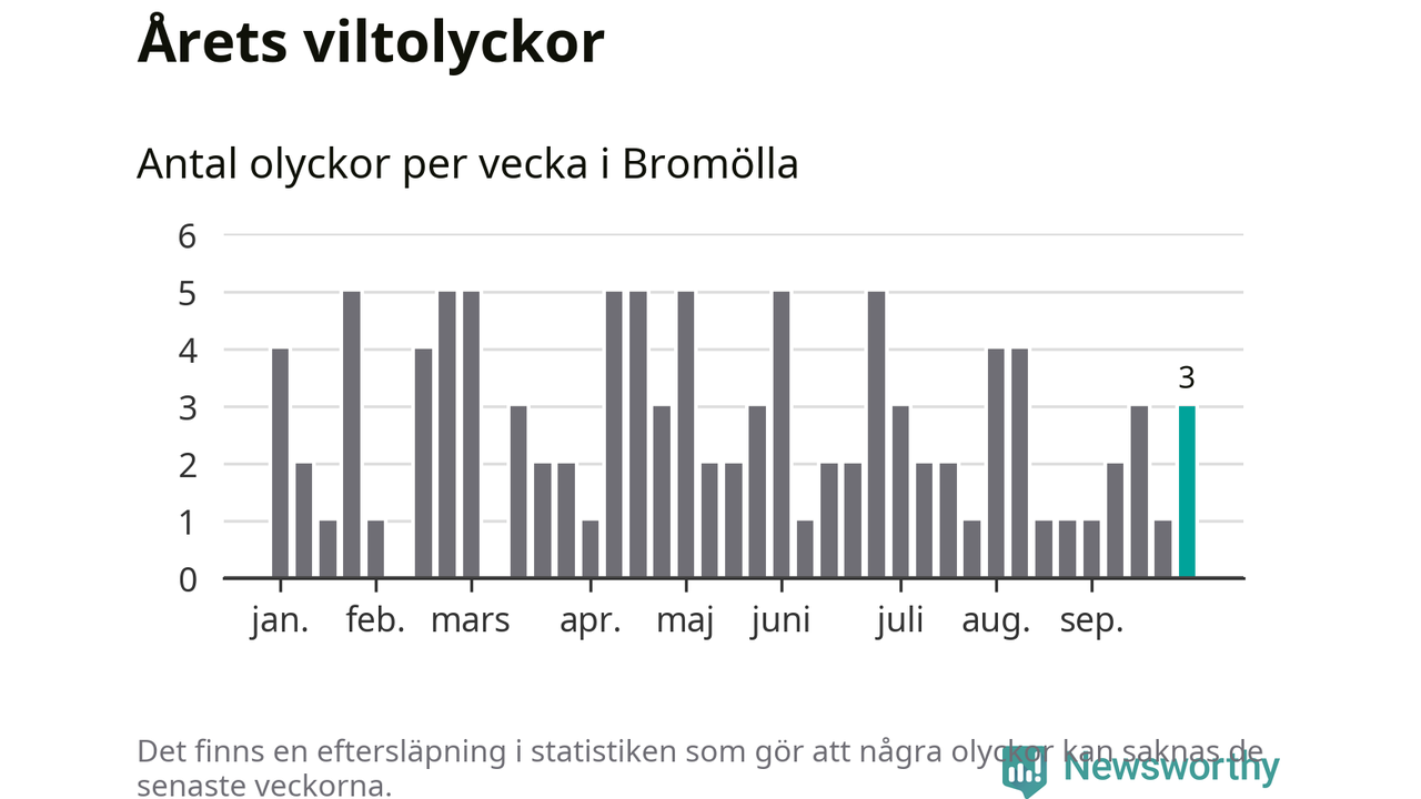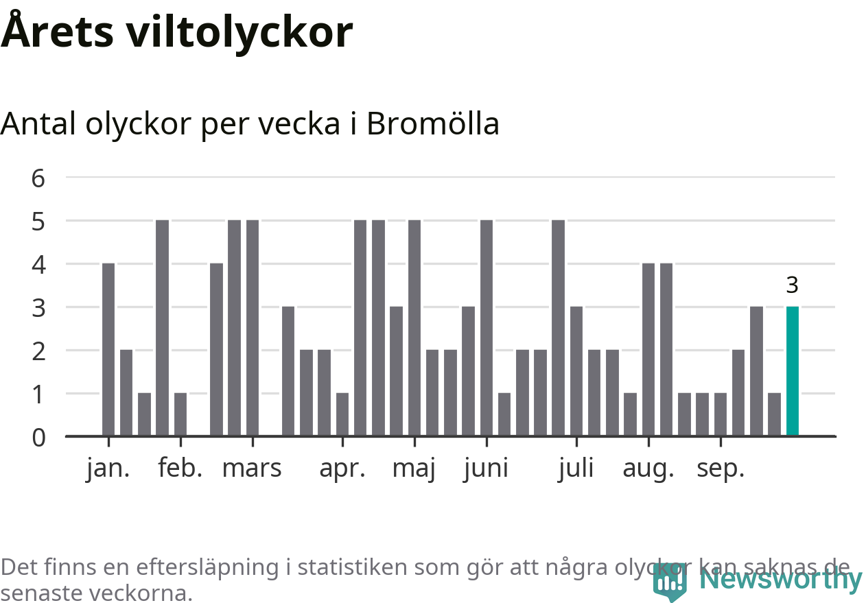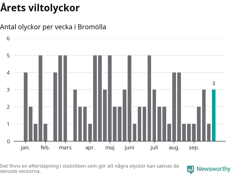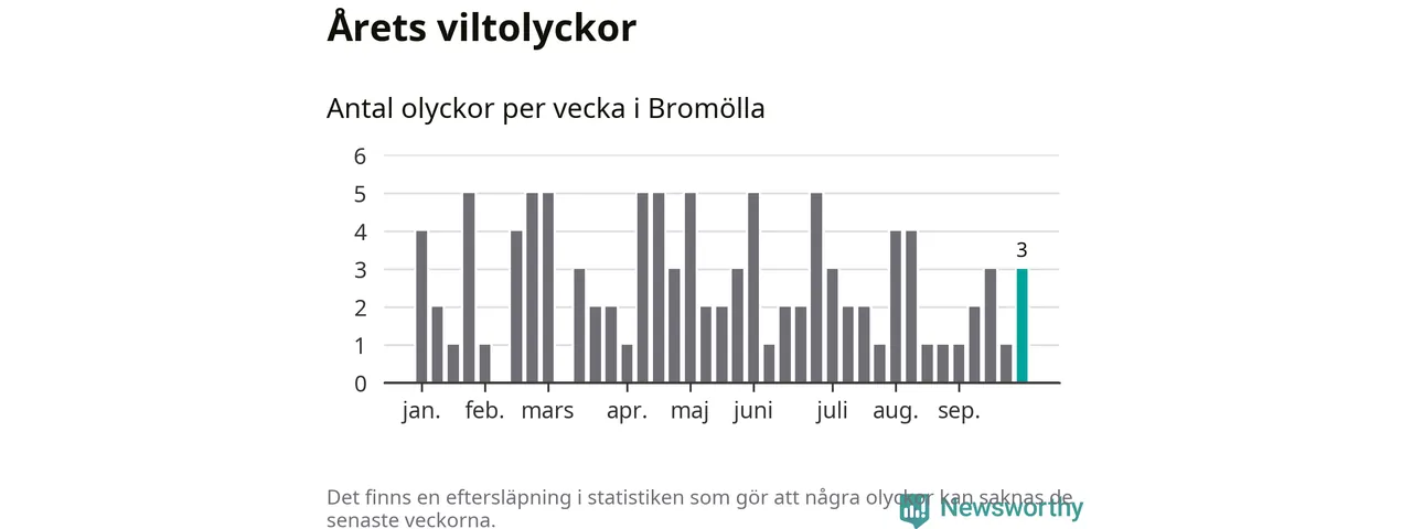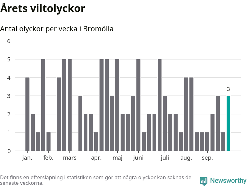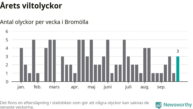 Hittills har tre viltolyckor rapporterats in i Bromölla kommun från vecka 40. Se listan här.