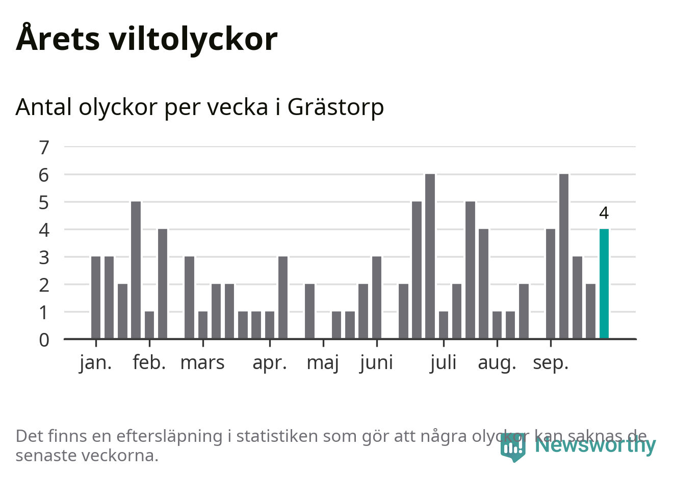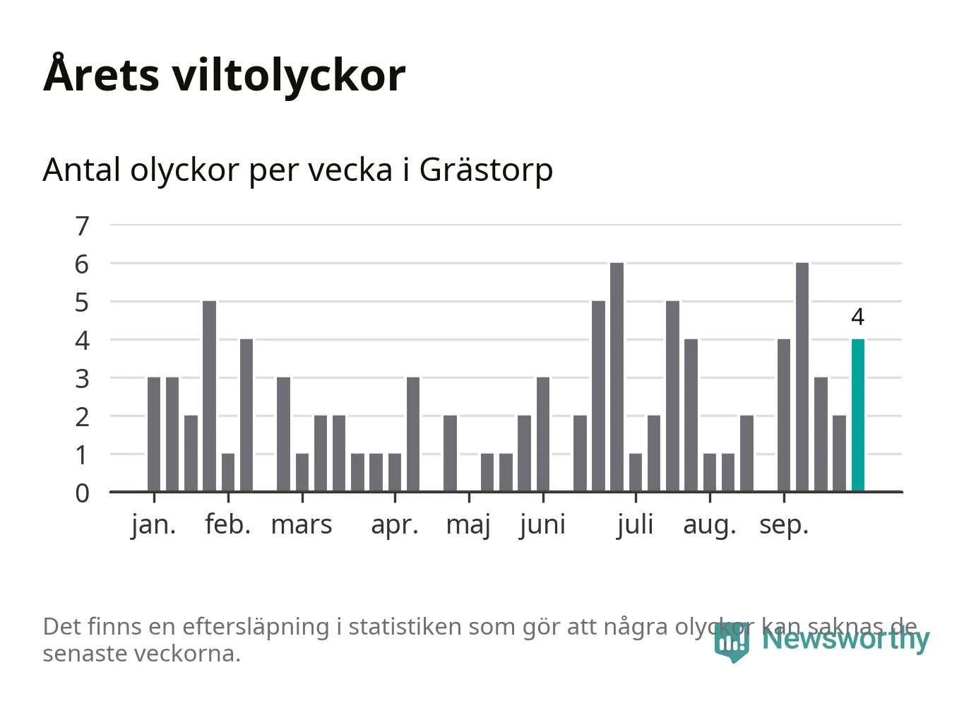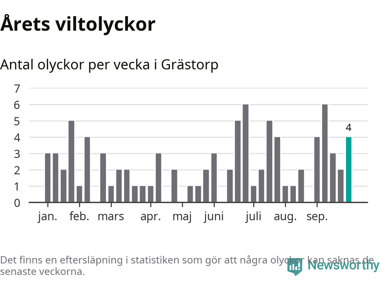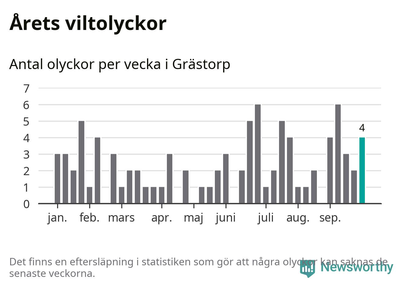Hittills har fyra viltolyckor rapporterats in i Grästorps kommun från vecka 40. Se listan här.