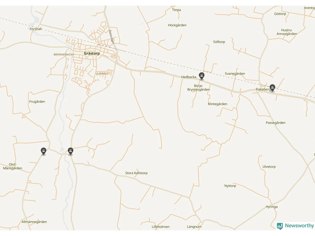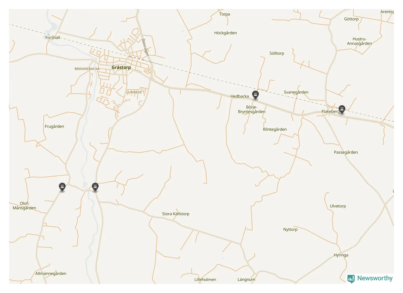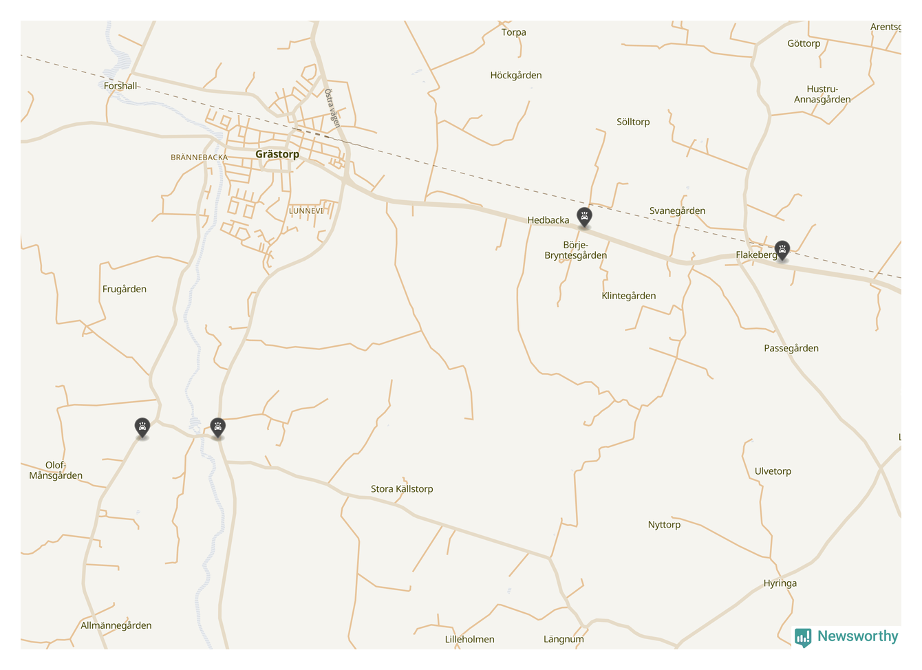 Hittills har fyra viltolyckor rapporterats in i Grästorps kommun från vecka 40. Se listan här.