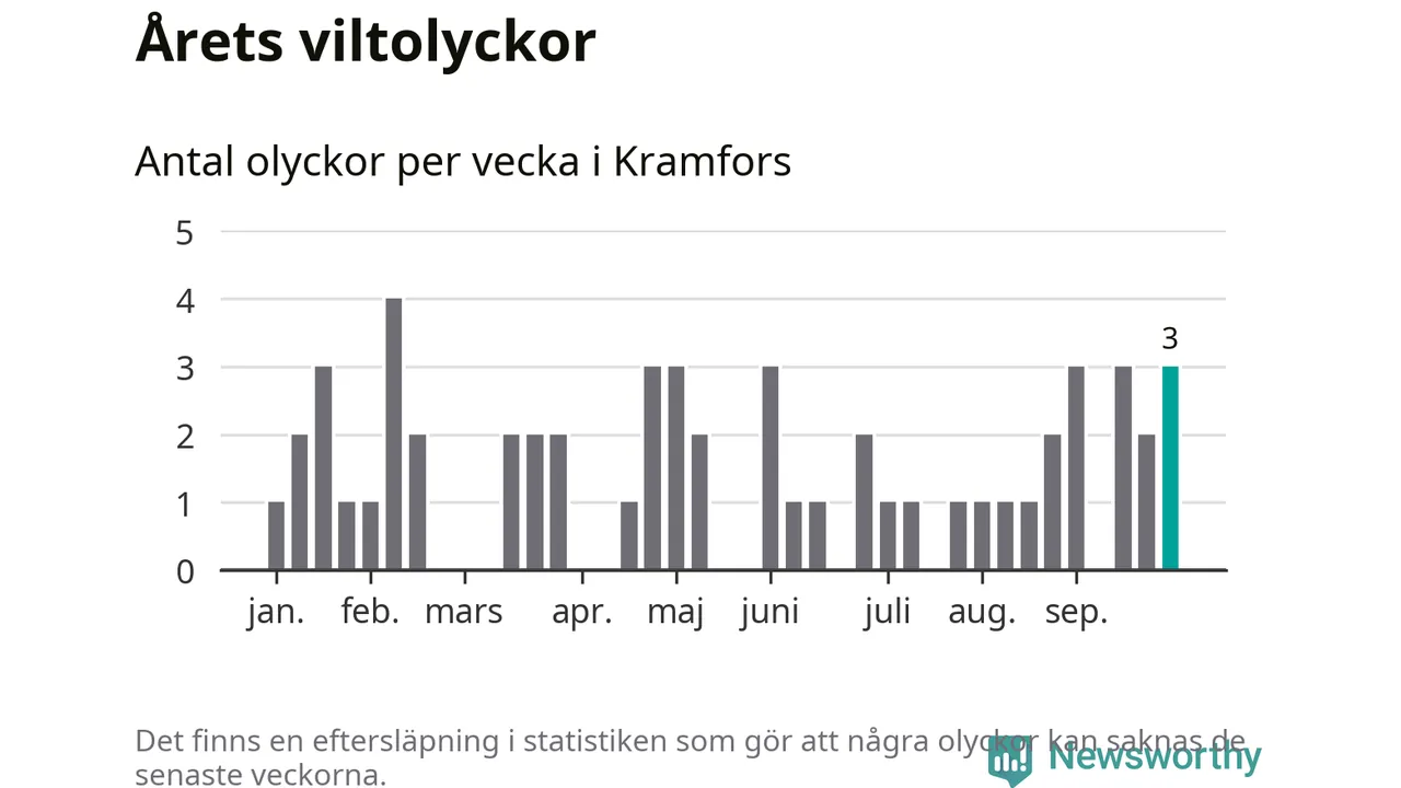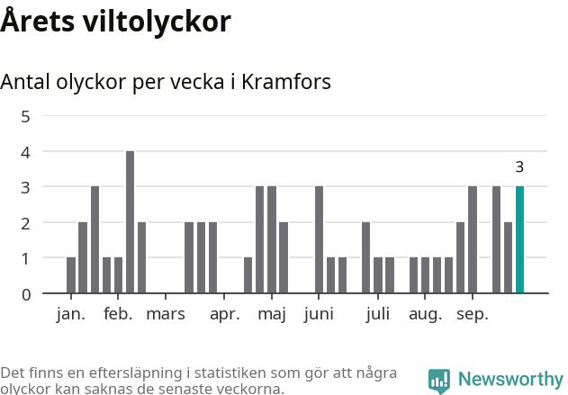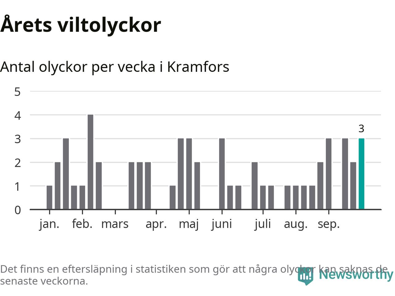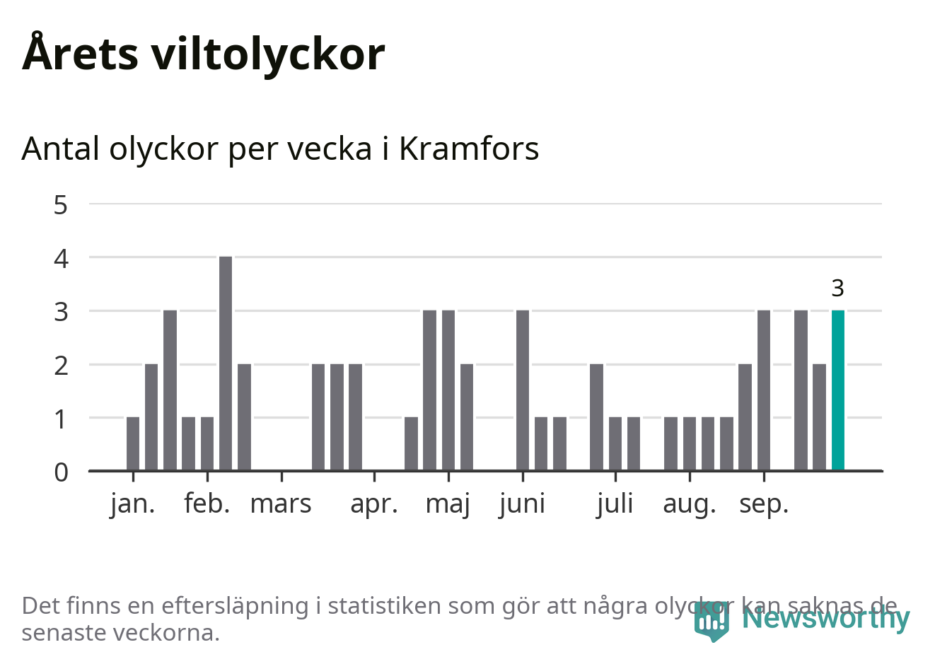 Hittills har tre viltolyckor rapporterats in i Kramfors kommun från vecka 40. Se listan här.