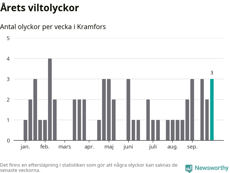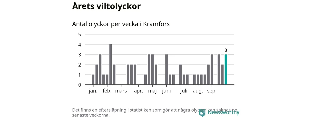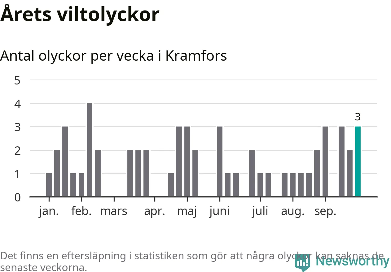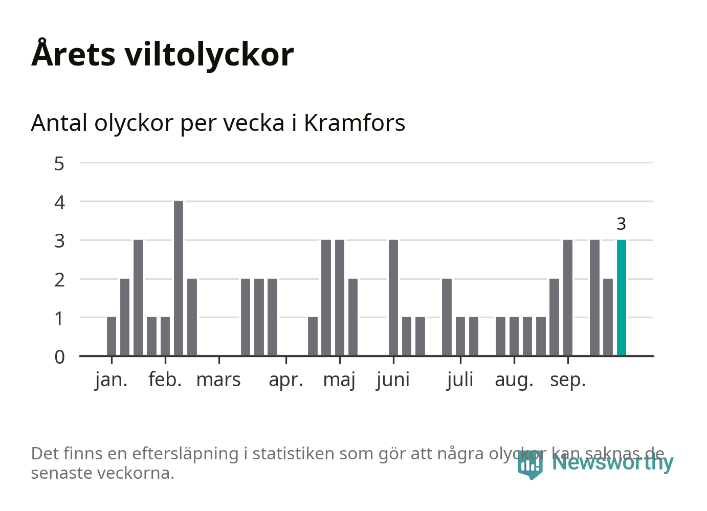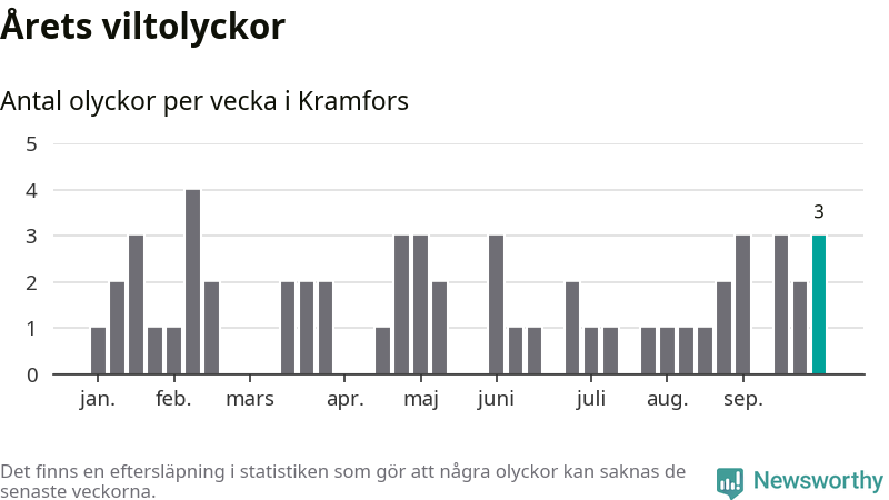 Hittills har tre viltolyckor rapporterats in i Kramfors kommun från vecka 40. Se listan här.