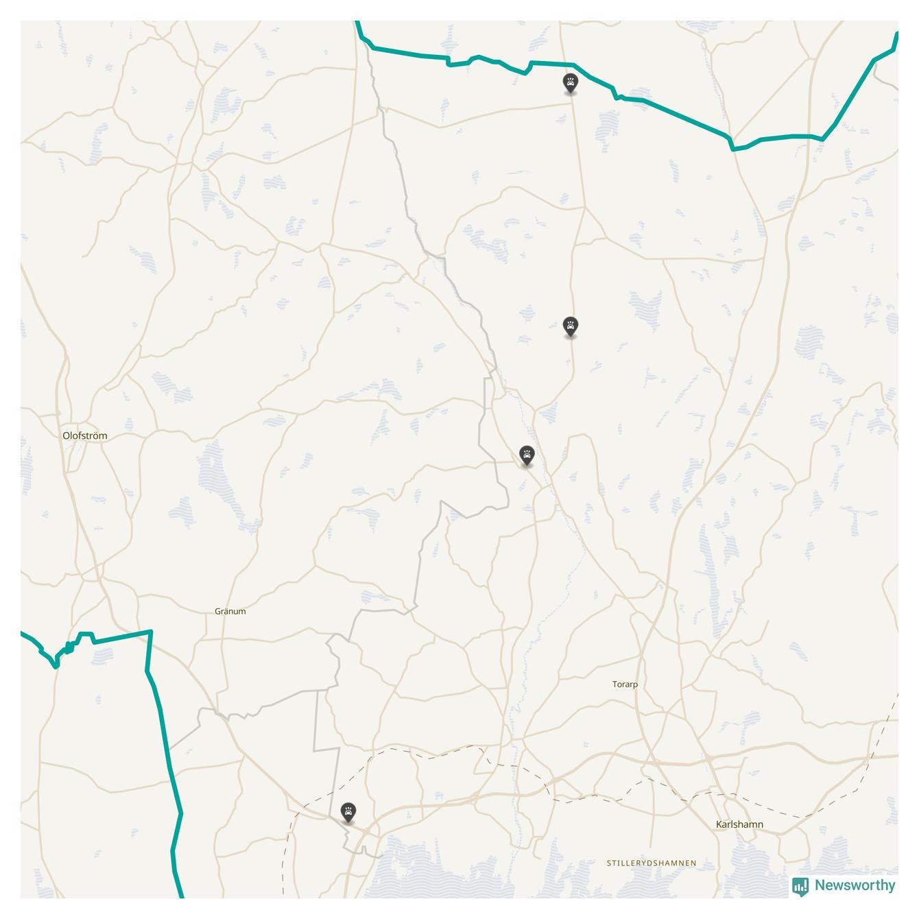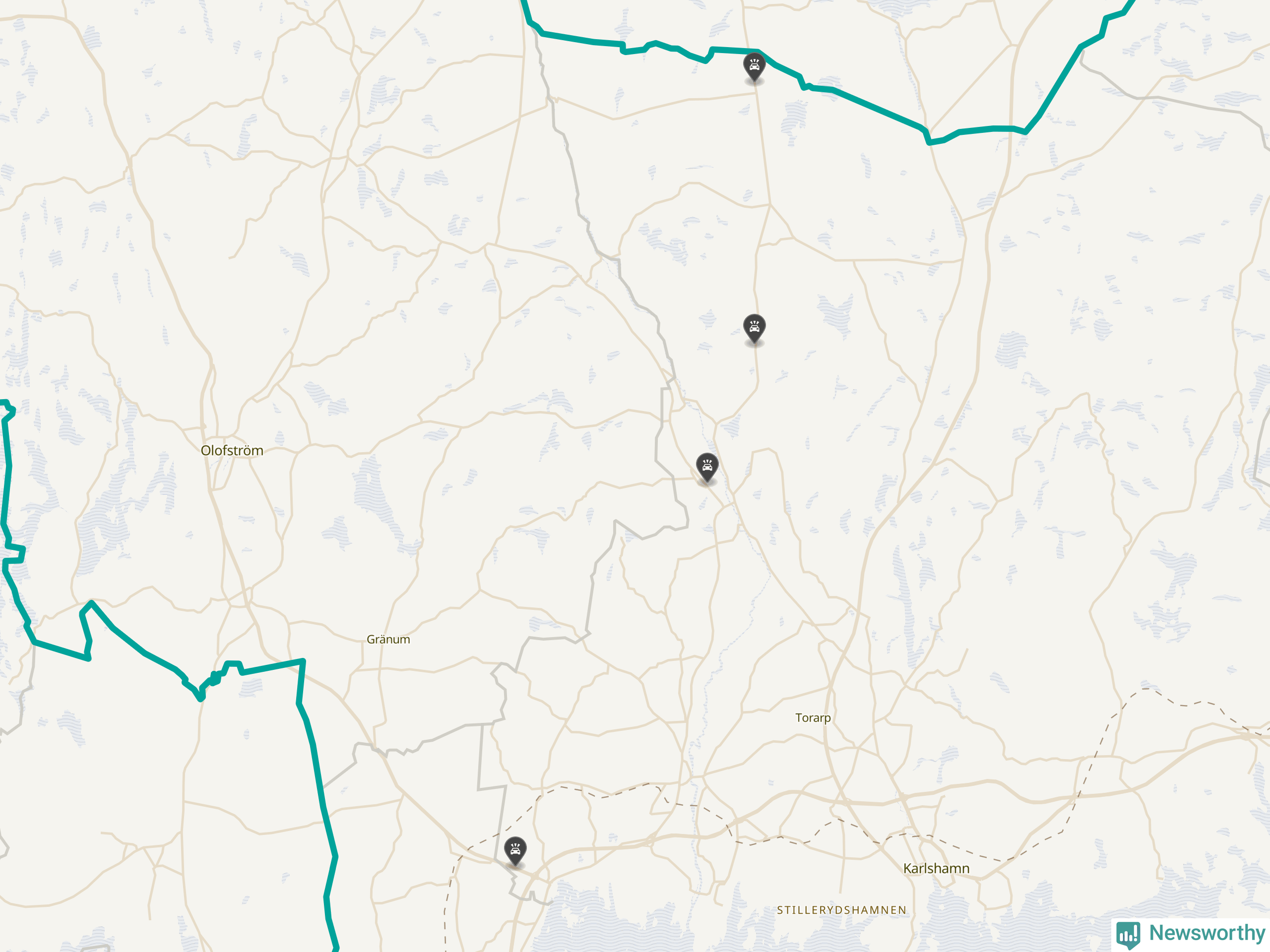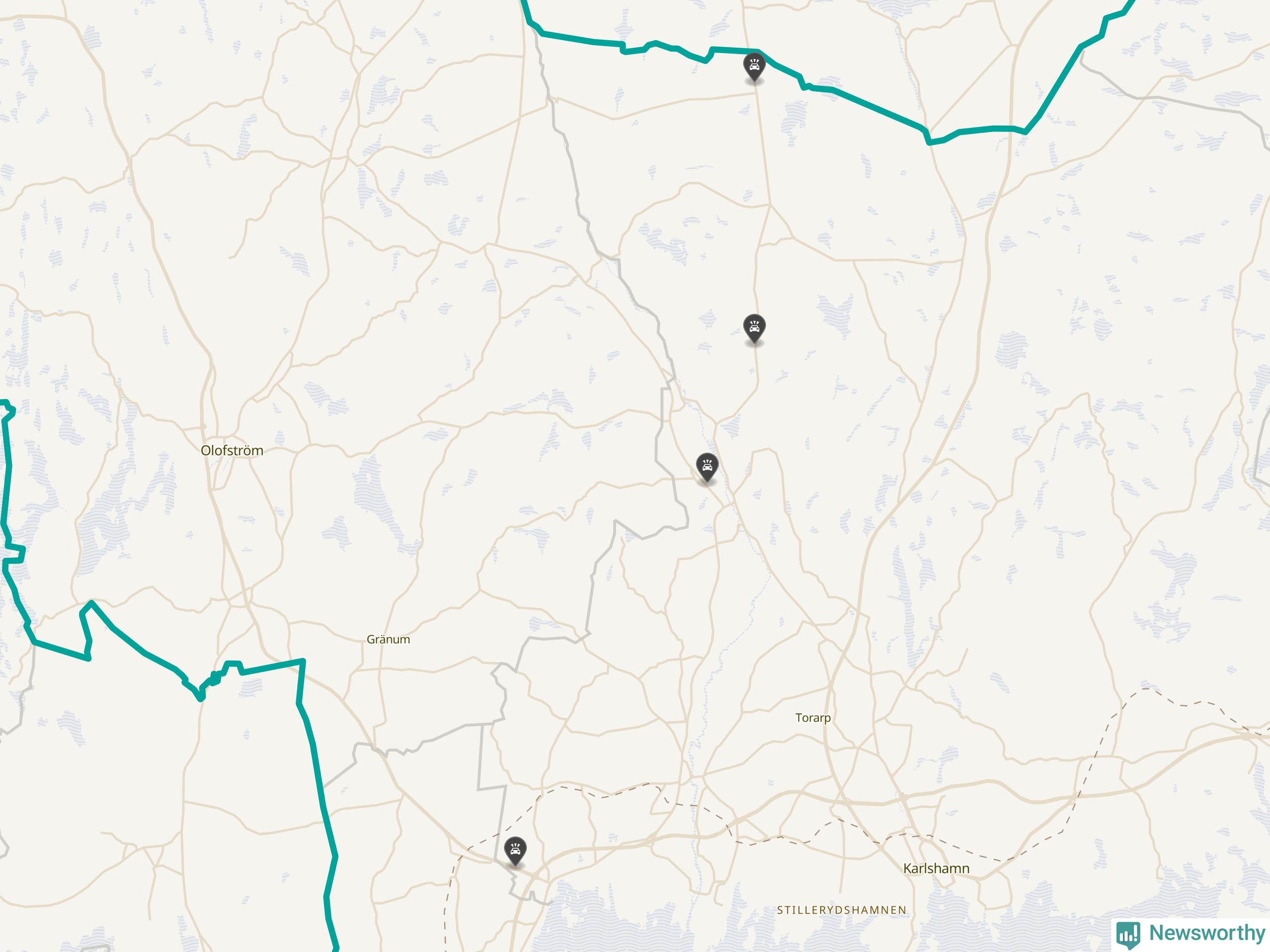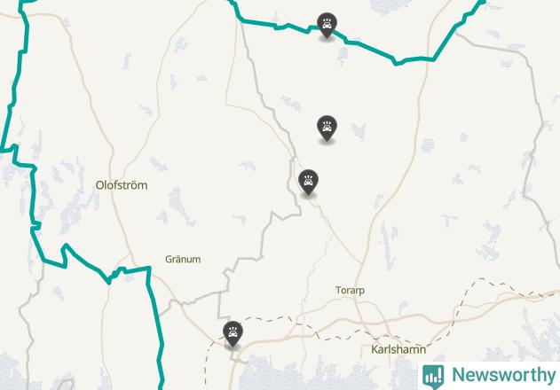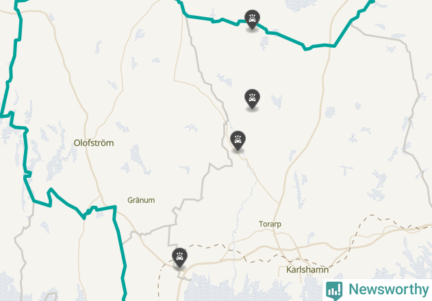 Karta över viltolyckor i Karlshamns kommun