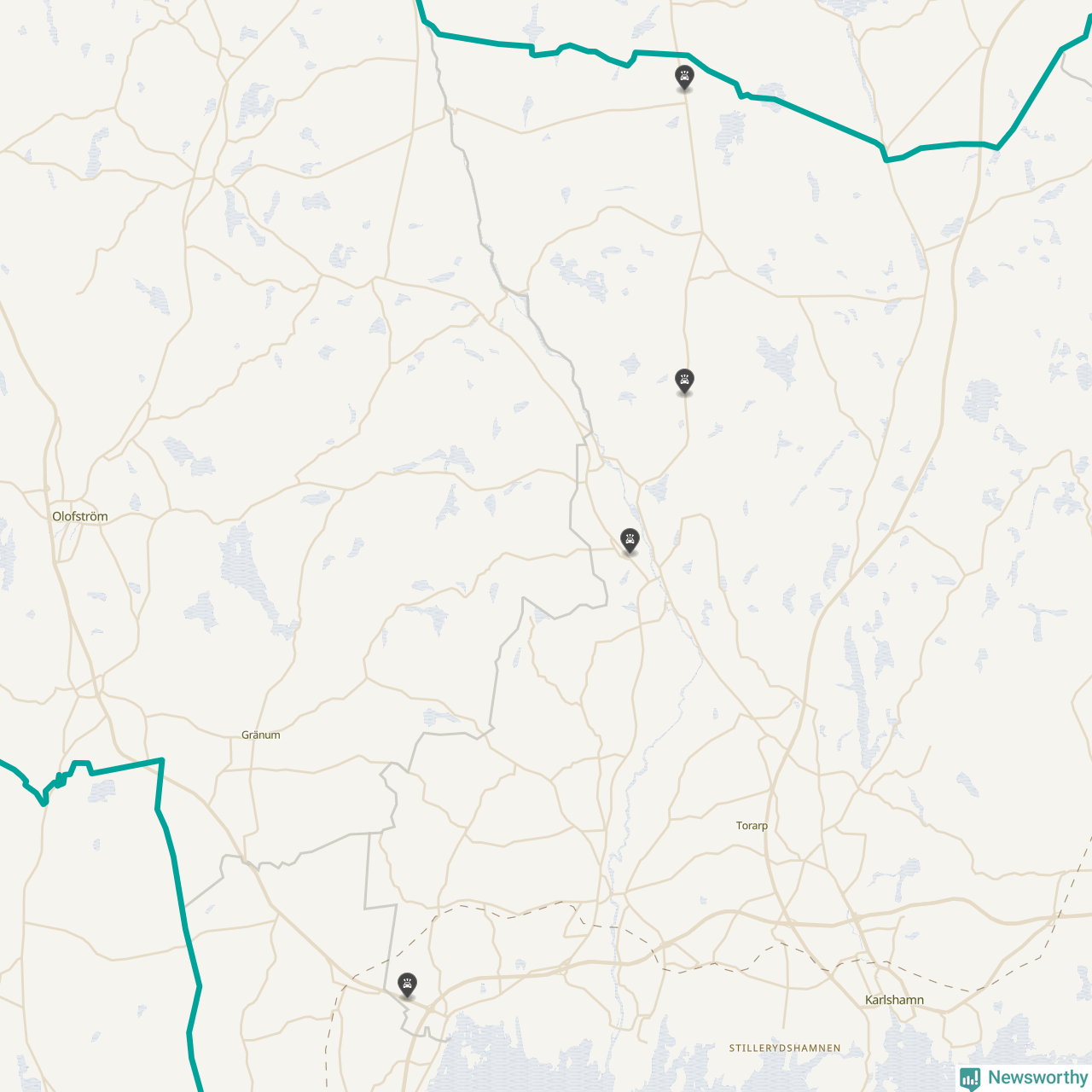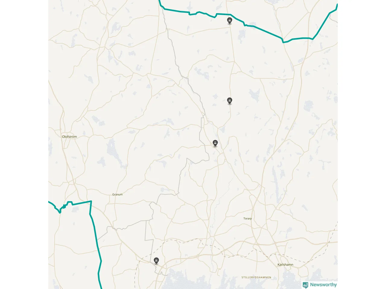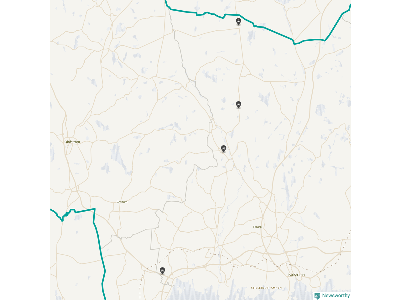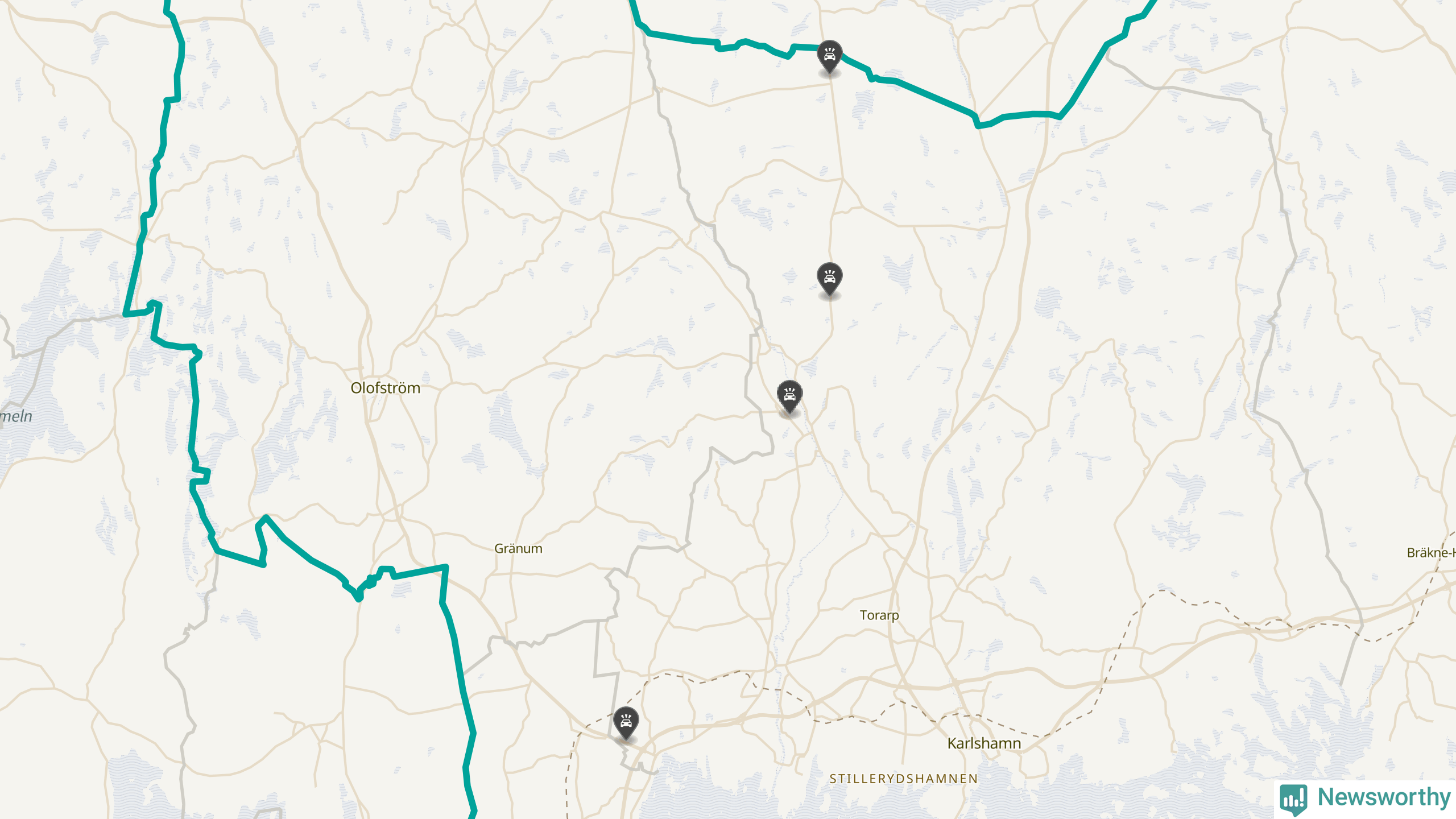 Karta över viltolyckor i Karlshamns kommun