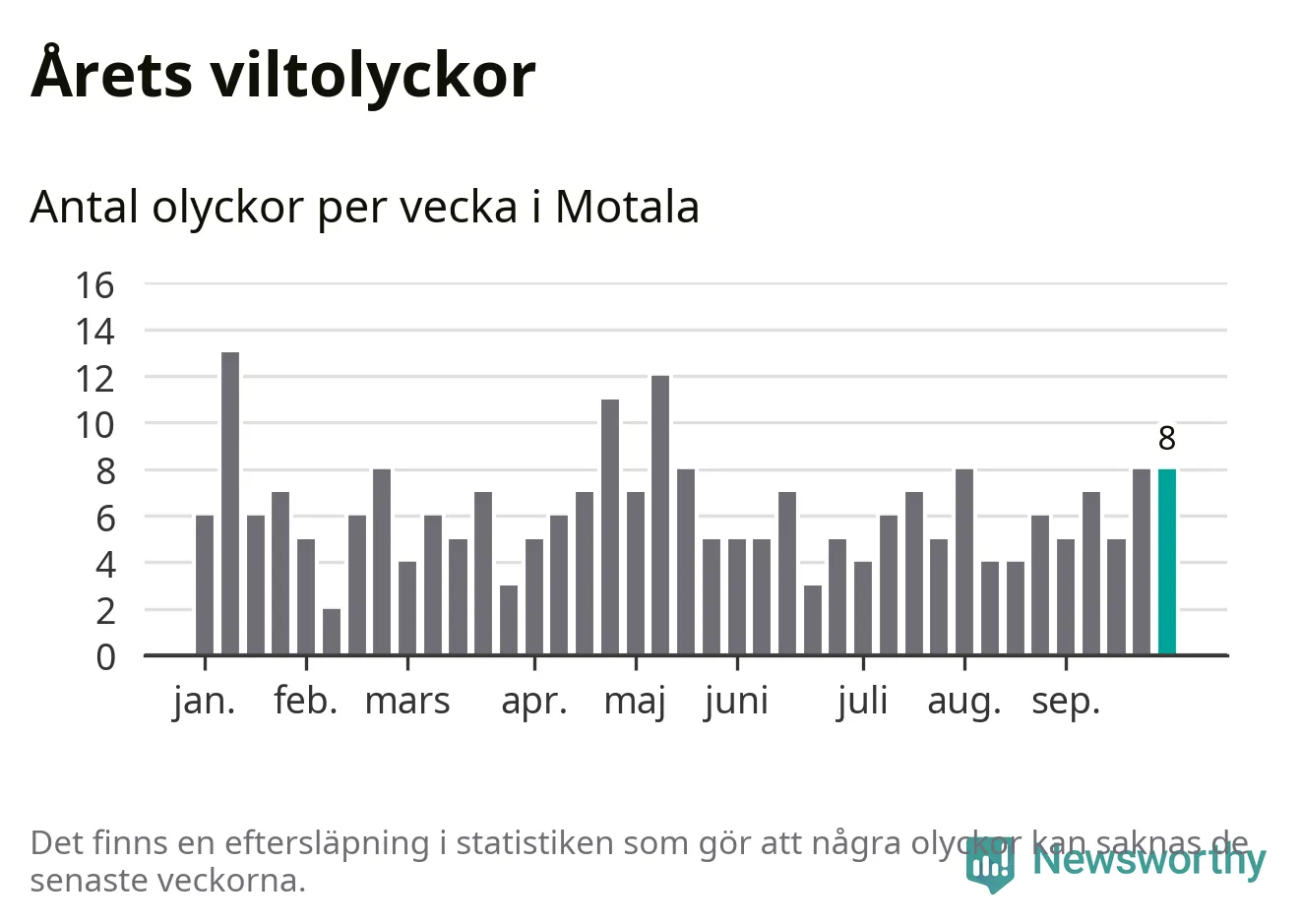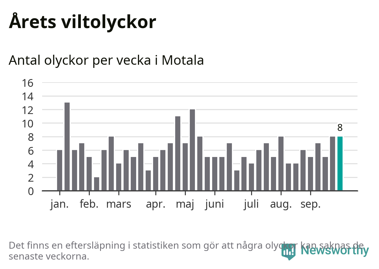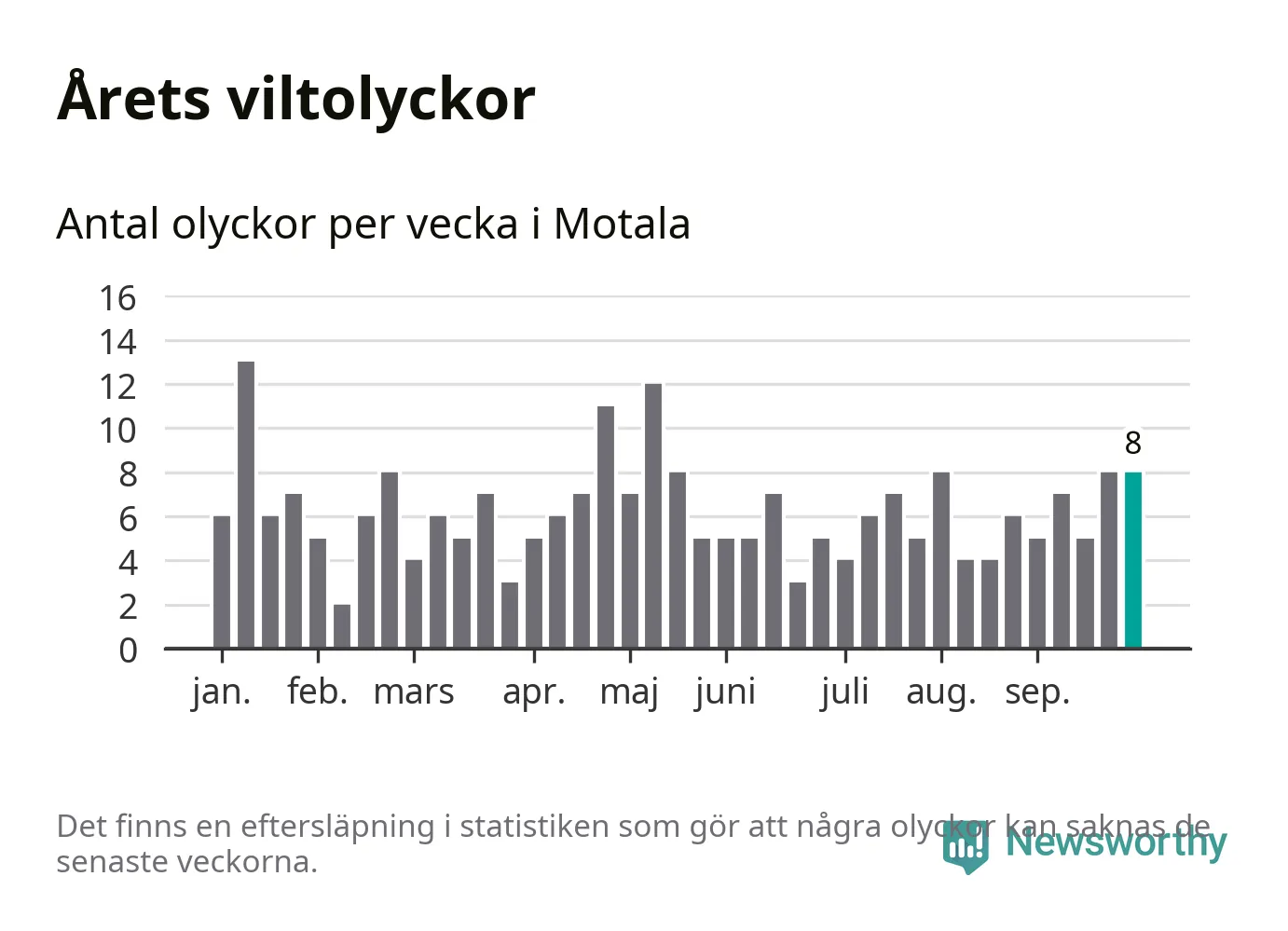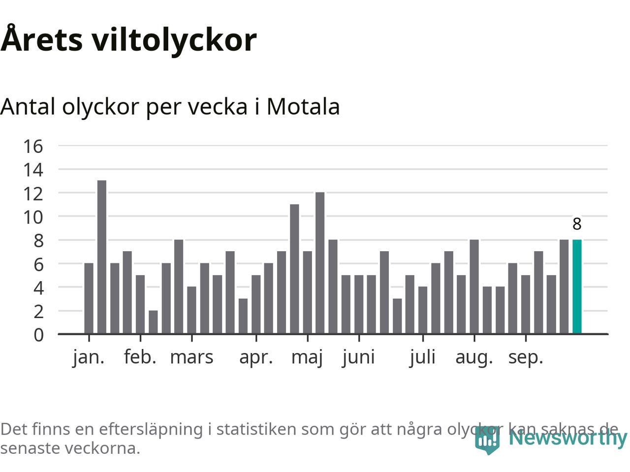 Hittills har åtta viltolyckor rapporterats in i Motala kommun från vecka 40. Se listan här.
