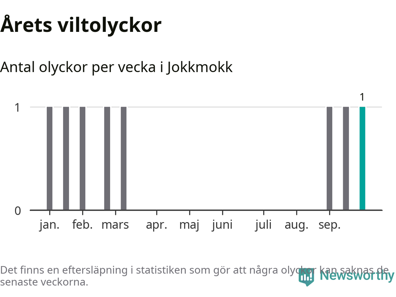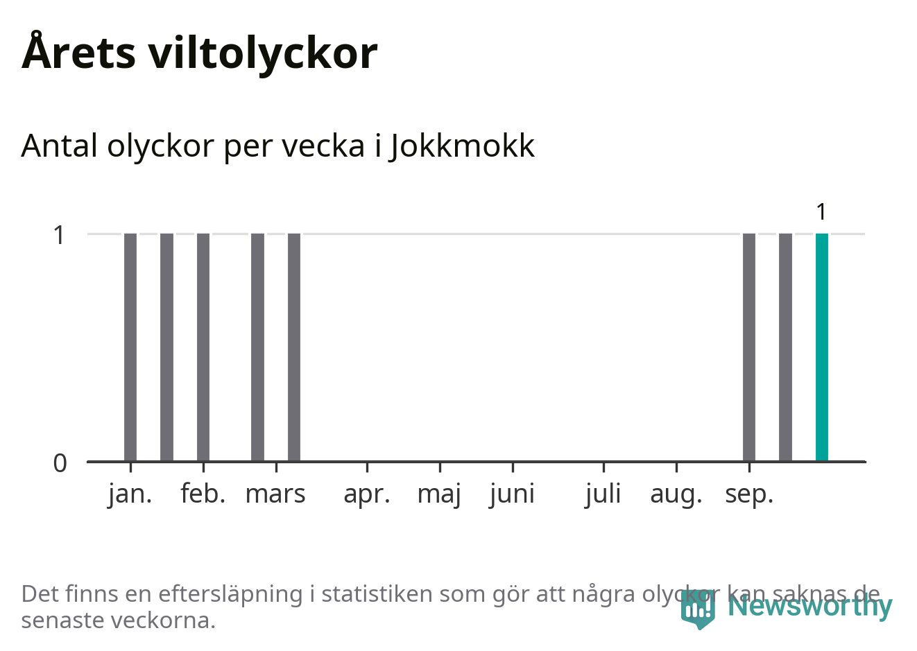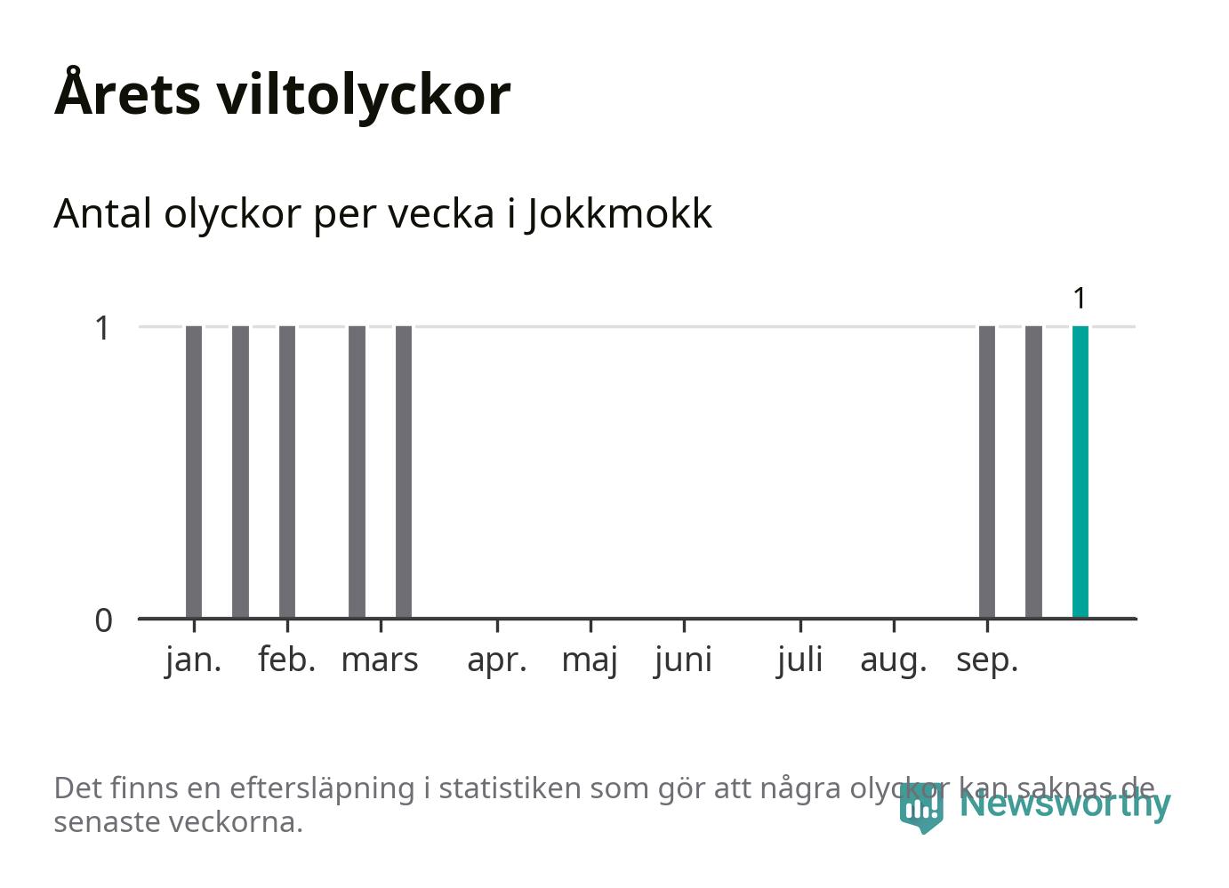 Från förra veckan (vecka 40) har hittills en viltolycka rapporterats in i Jokkmokks kommun.