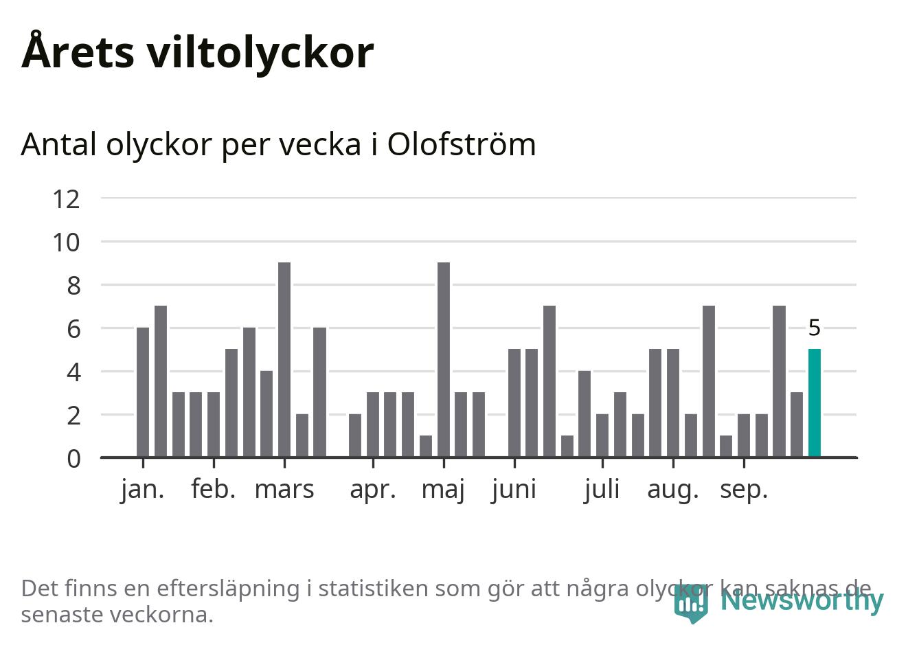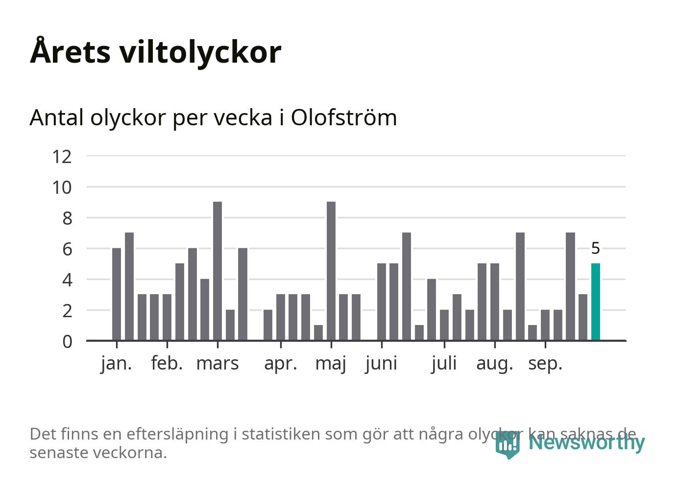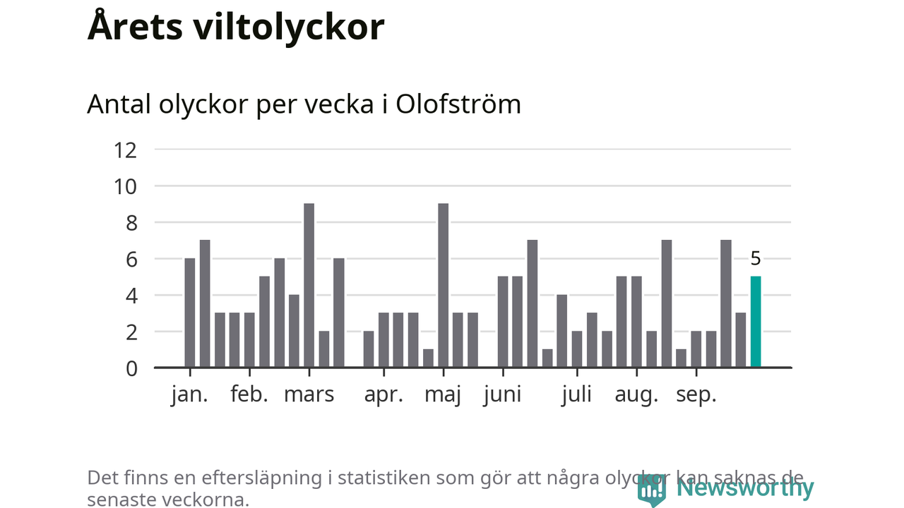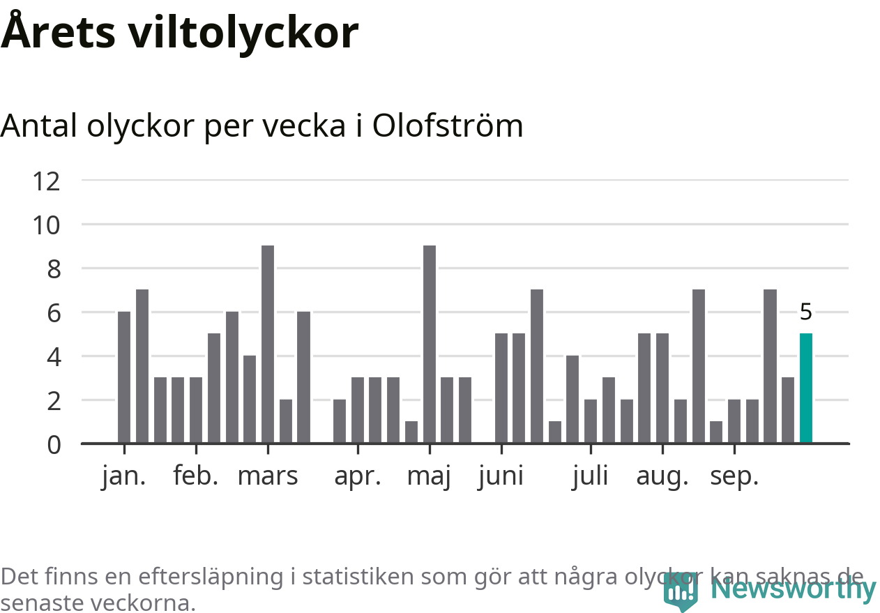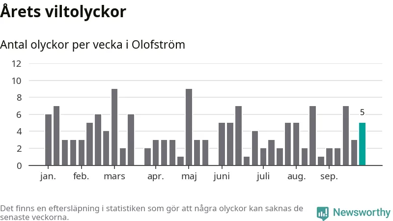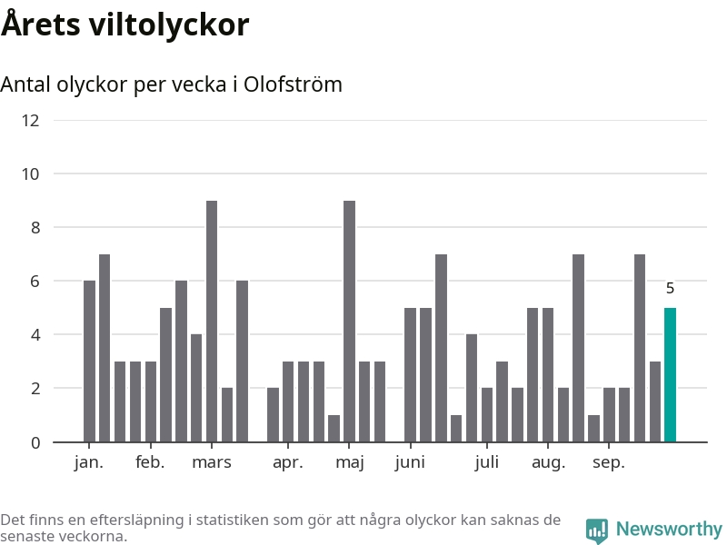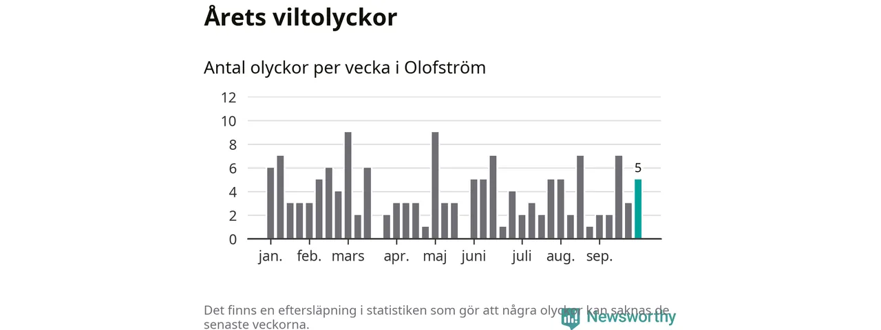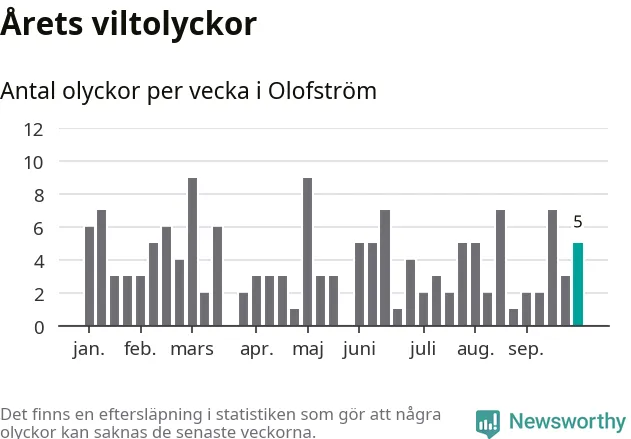Hittills har fem viltolyckor rapporterats in i Olofströms kommun från vecka 40. Se listan här.