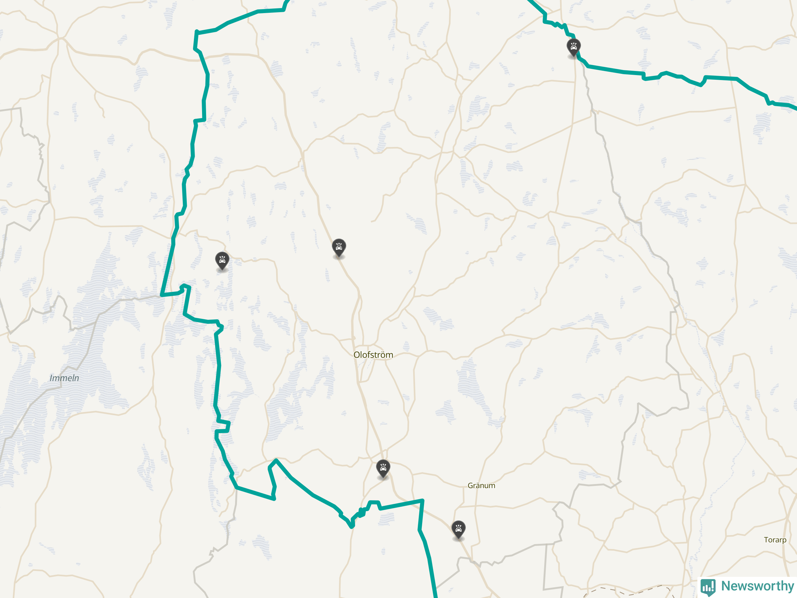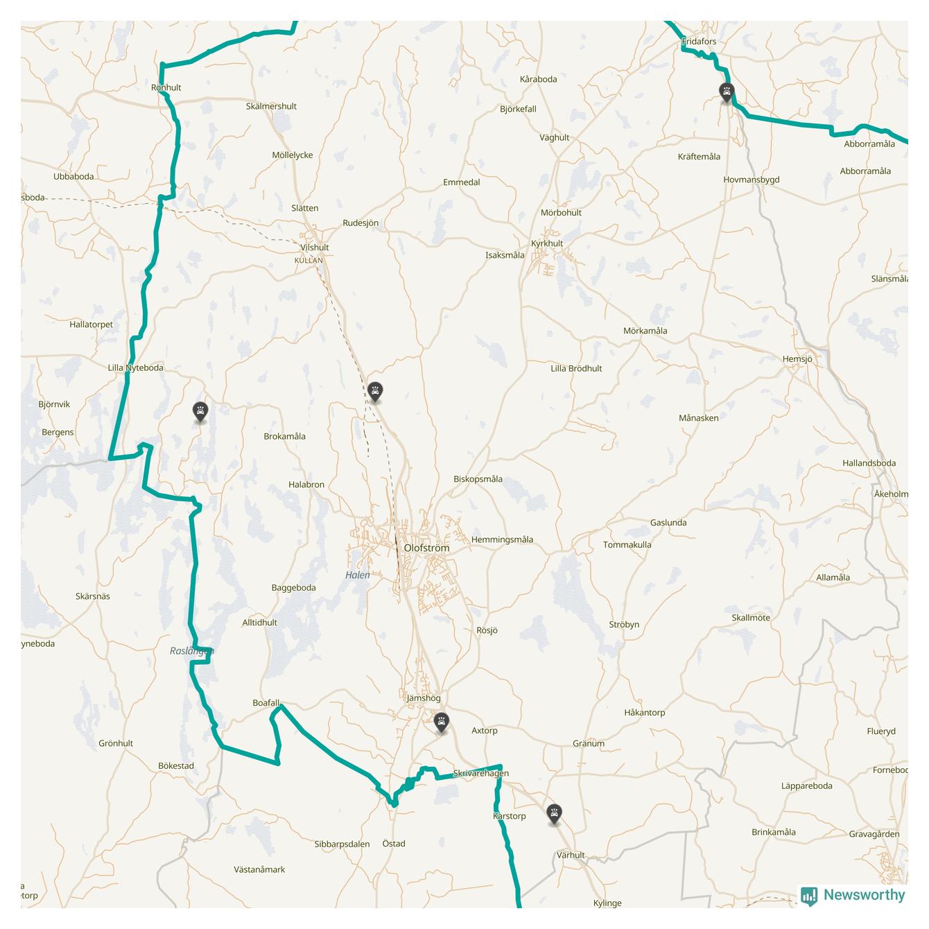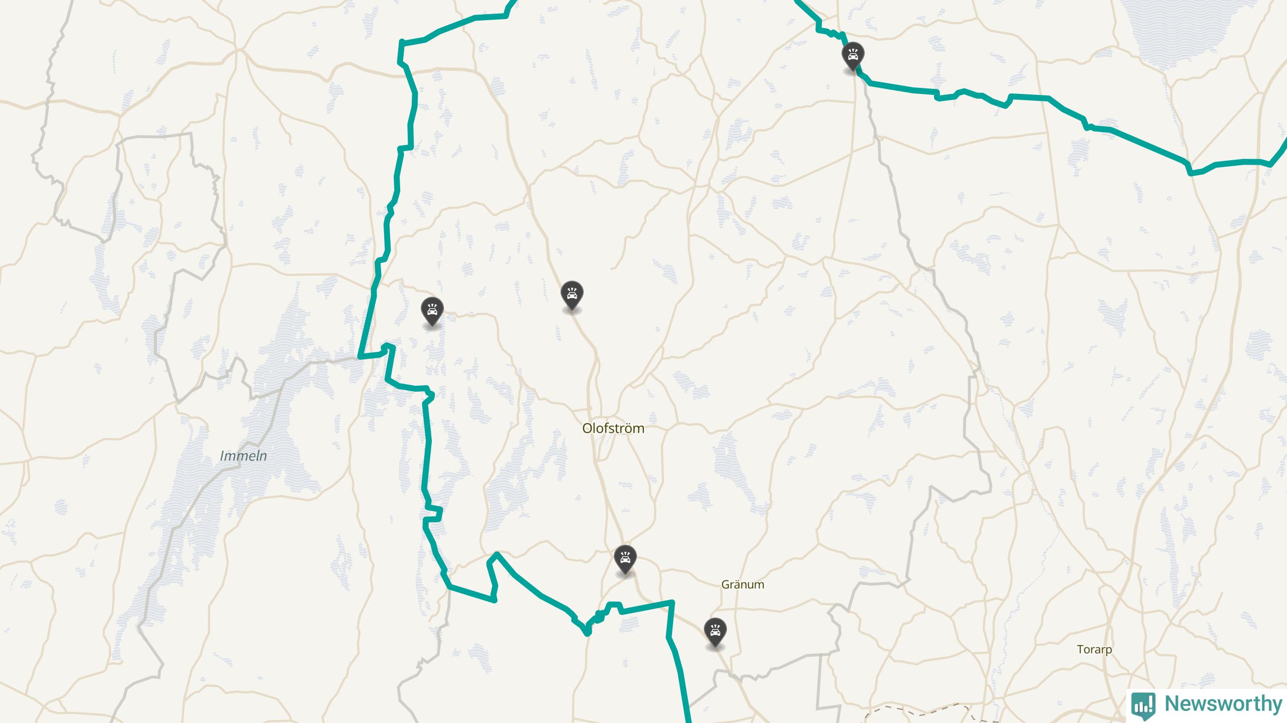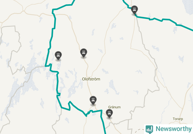 Karta: Förra veckans viltolyckor i Olofström