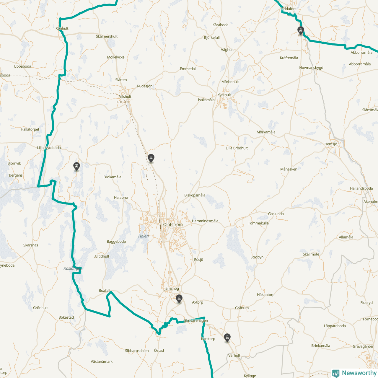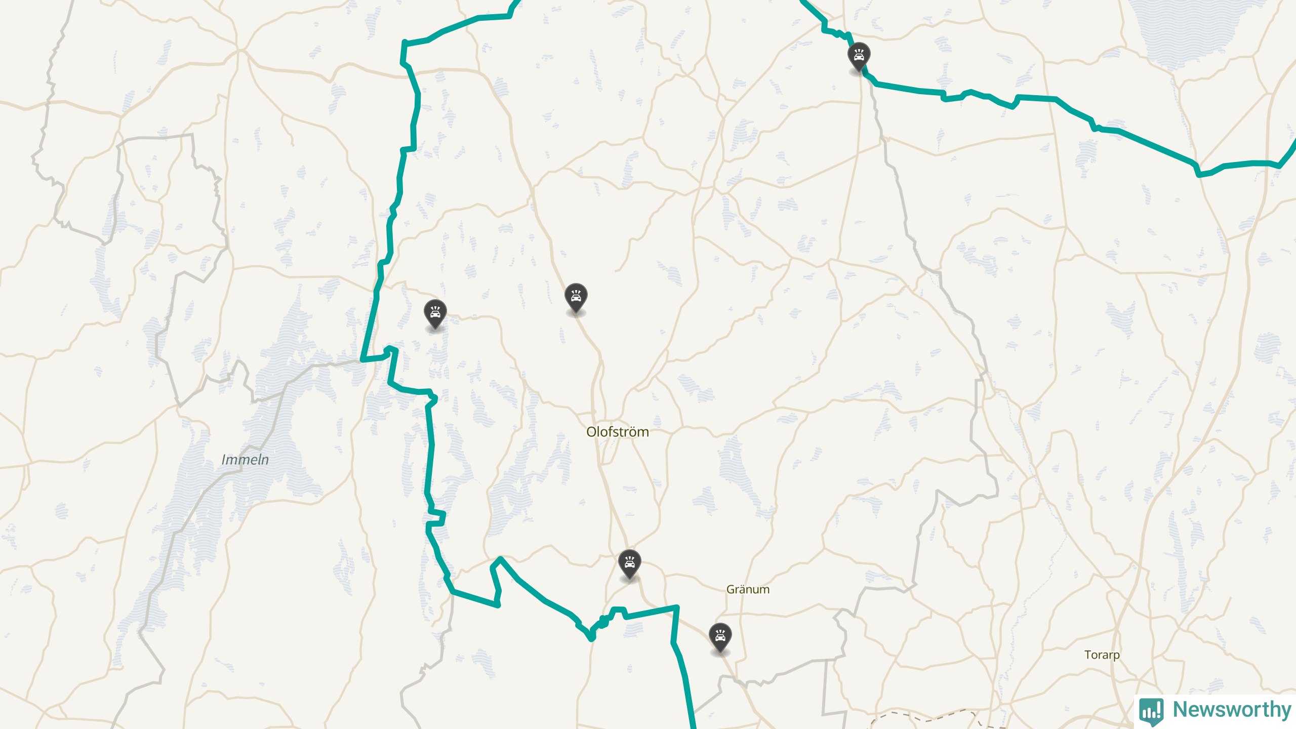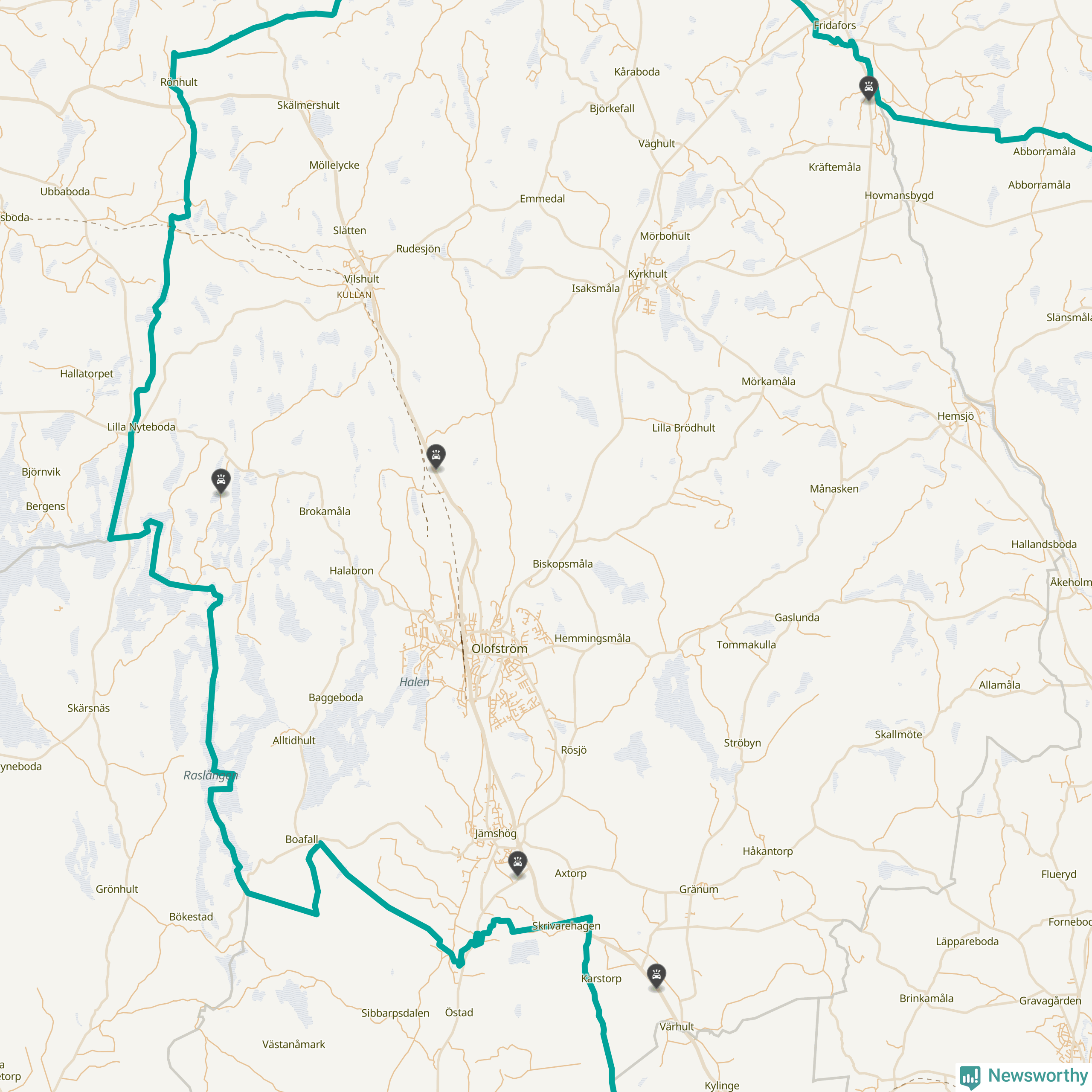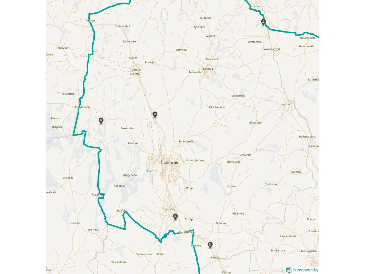 Karta: Förra veckans viltolyckor i Olofström