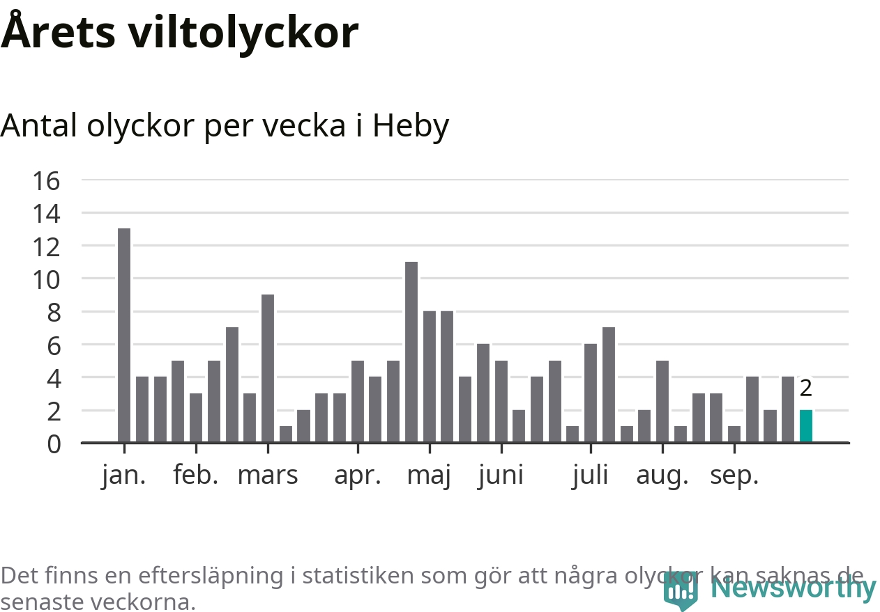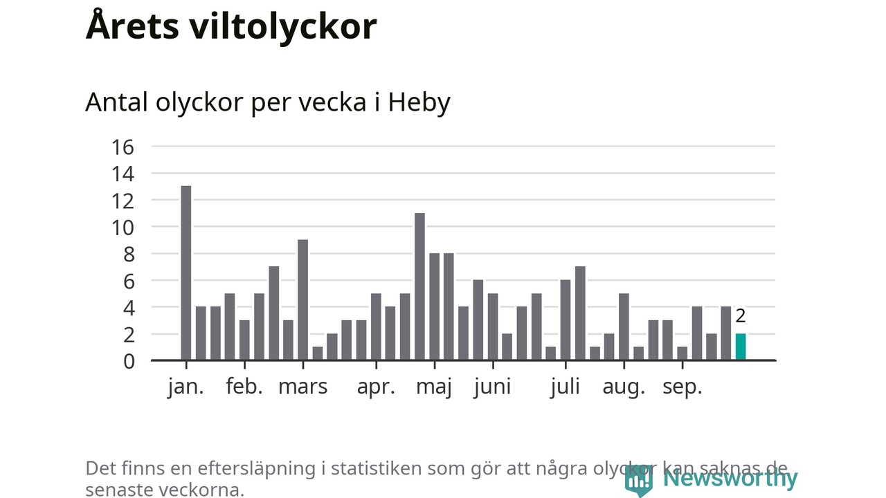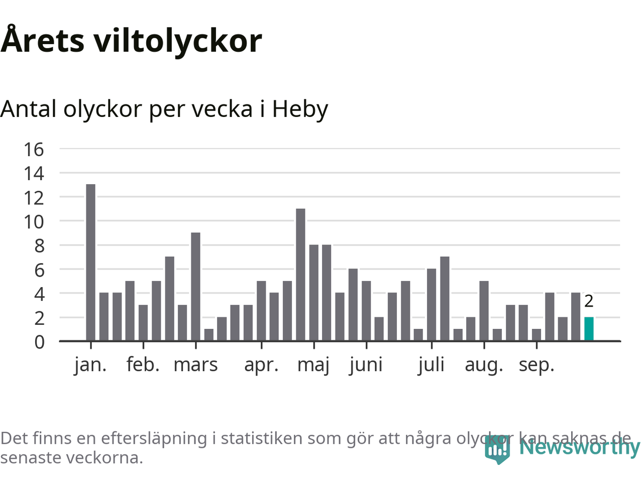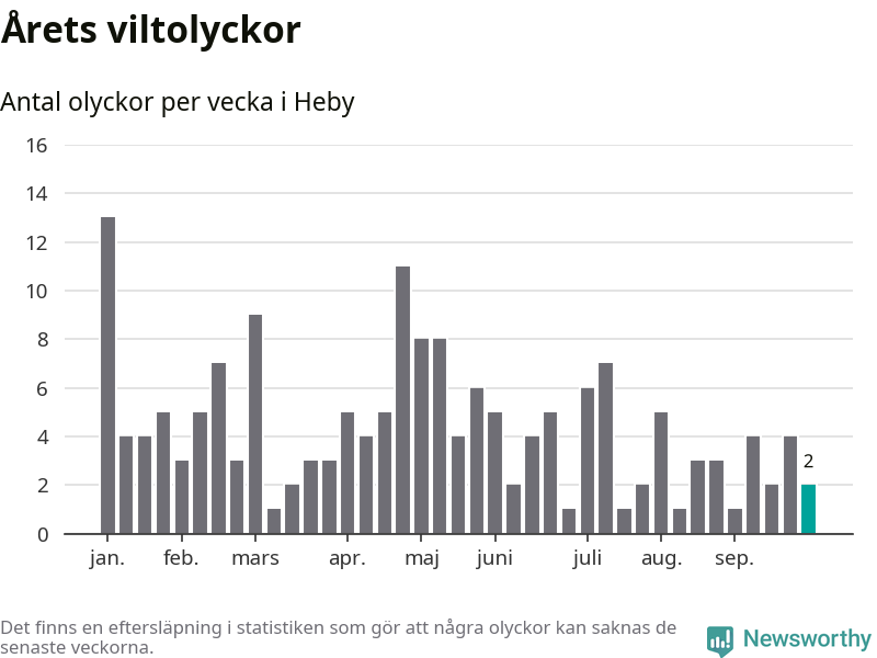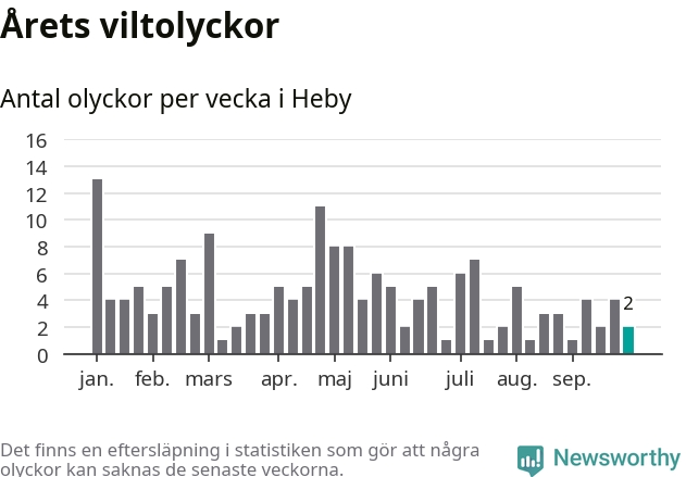 Hittills har två viltolyckor rapporterats in i Heby kommun från vecka 40. Se listan här.