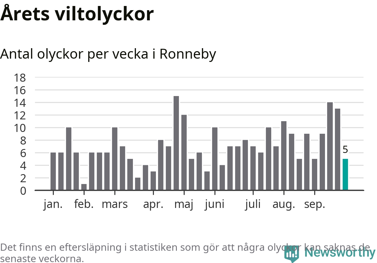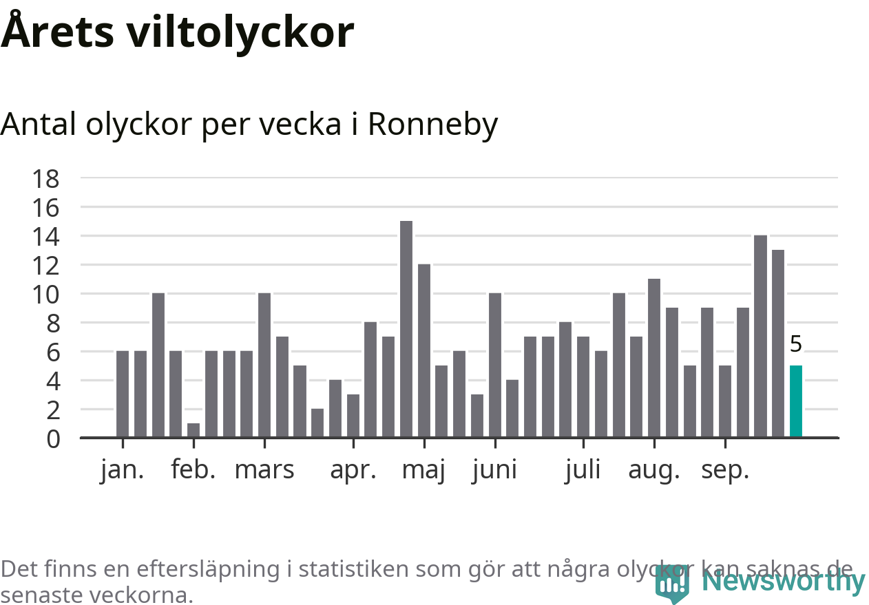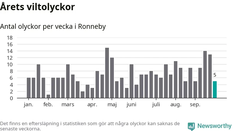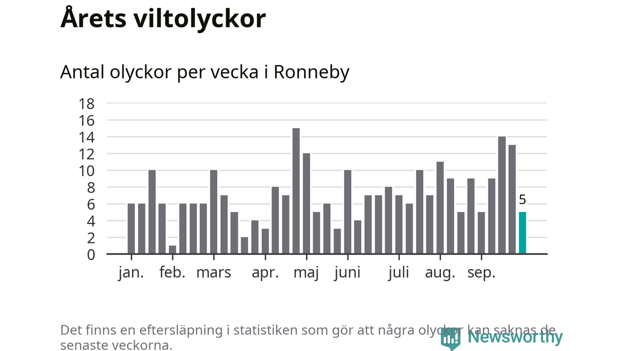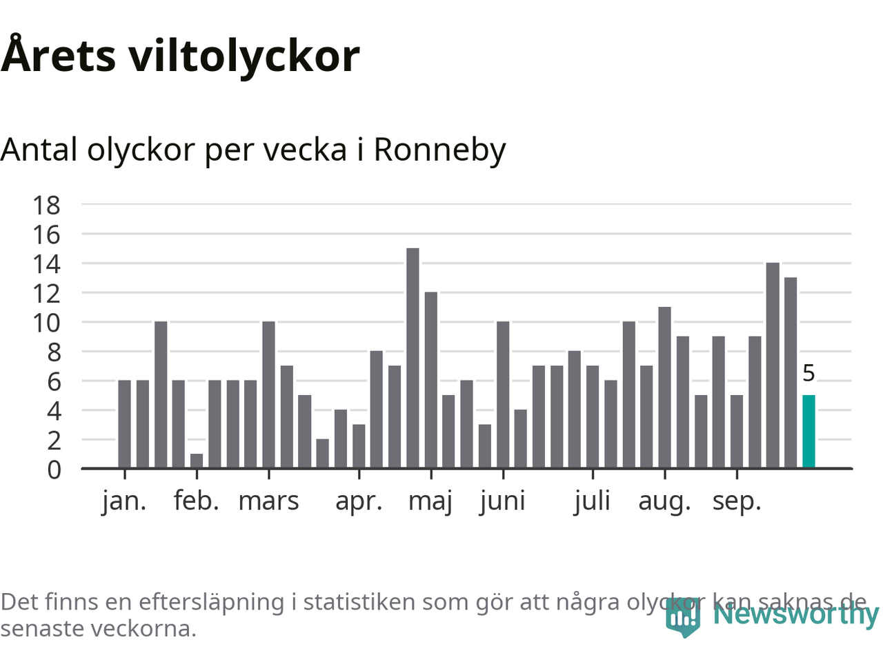 Hittills har fem viltolyckor rapporterats in i Ronneby kommun från vecka 40. Se listan här.