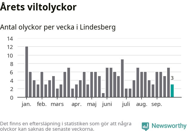 Hittills har tre viltolyckor rapporterats in i Lindesbergs kommun från vecka 40. Se listan här.