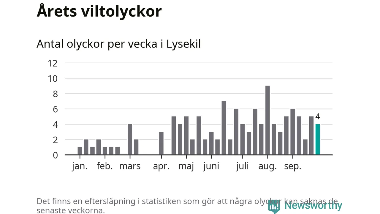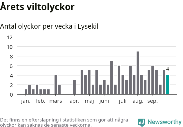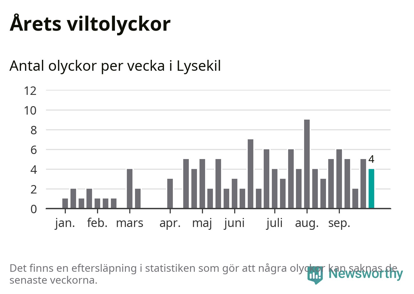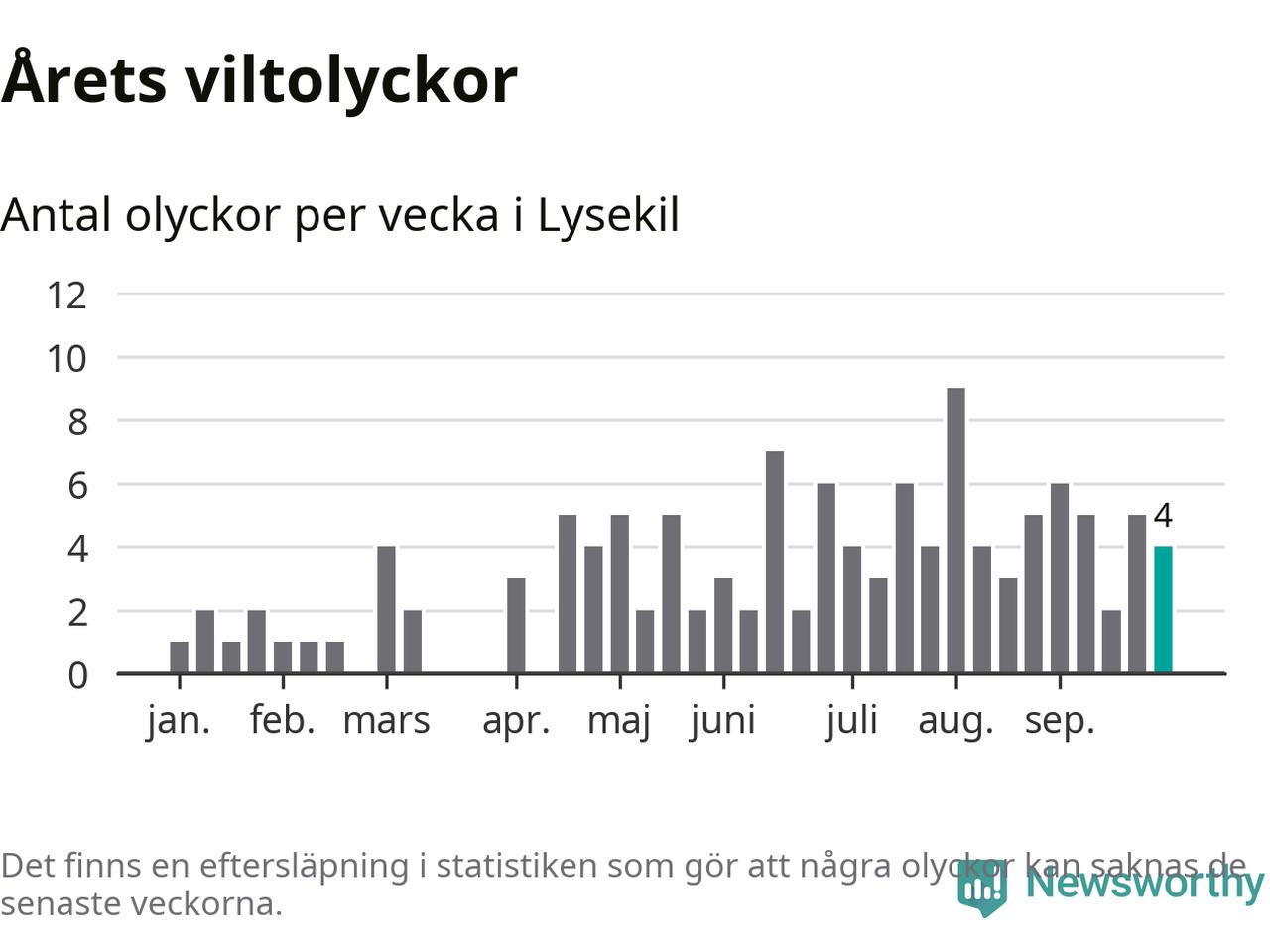 Hittills har fyra viltolyckor rapporterats in i Lysekils kommun från vecka 40. Se listan här.