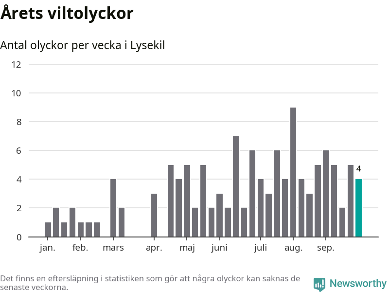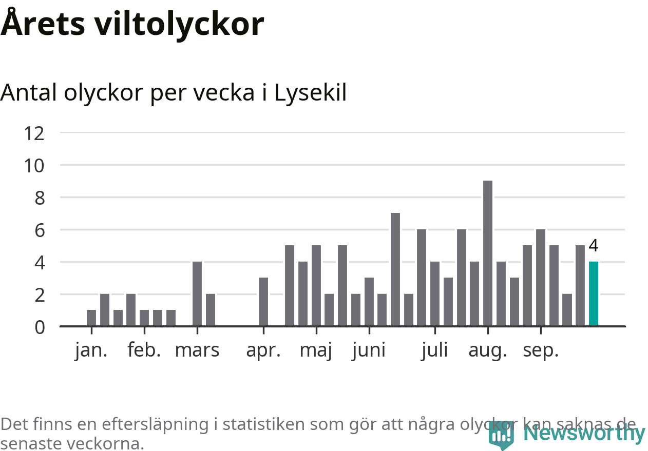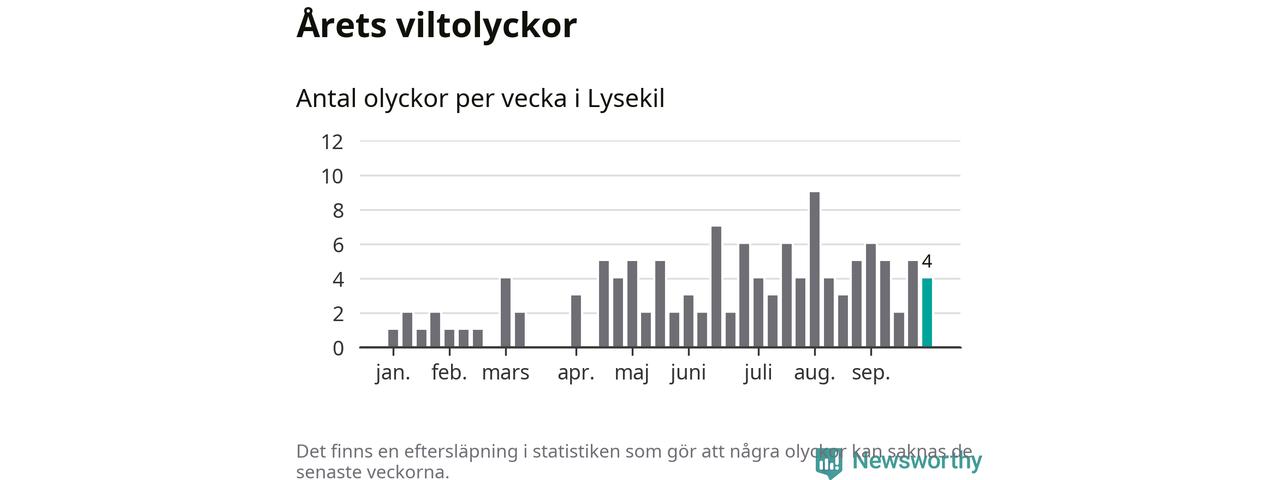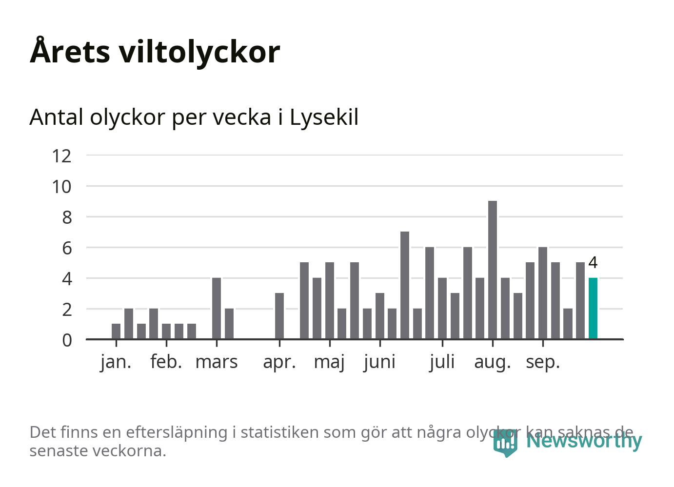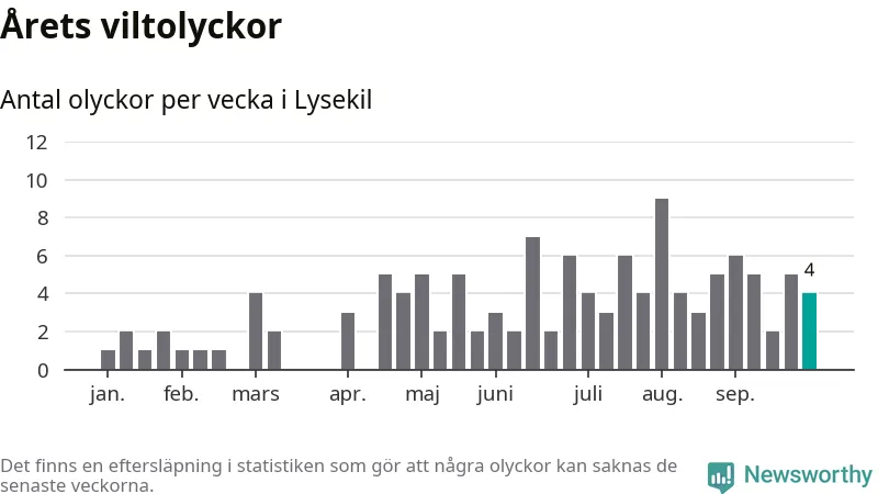 Hittills har fyra viltolyckor rapporterats in i Lysekils kommun från vecka 40. Se listan här.