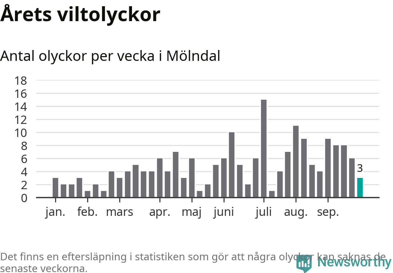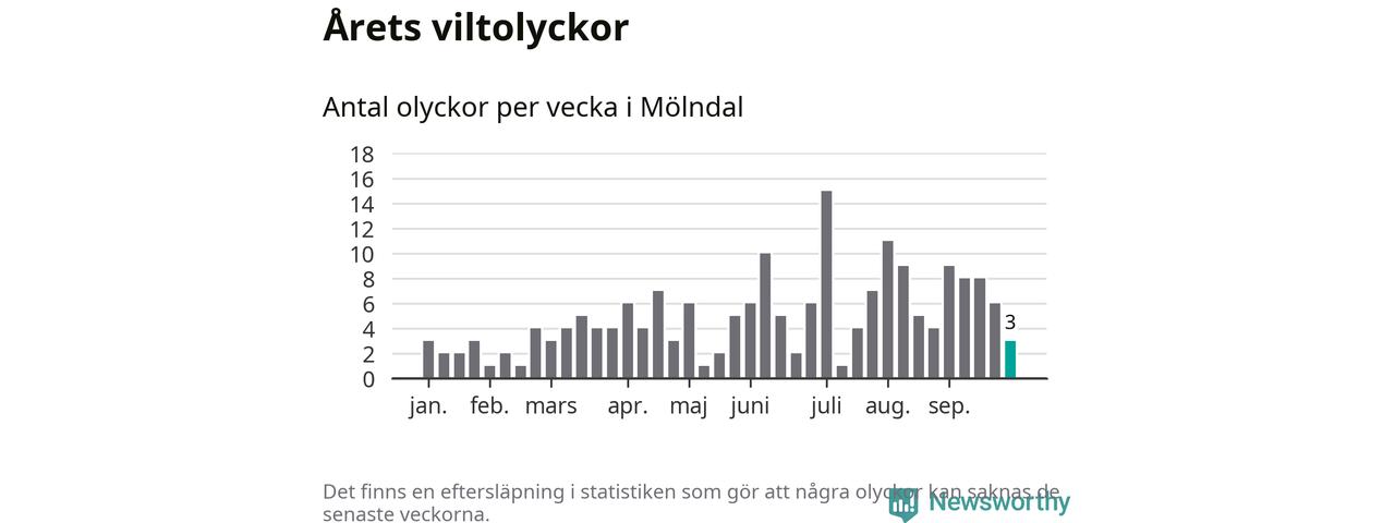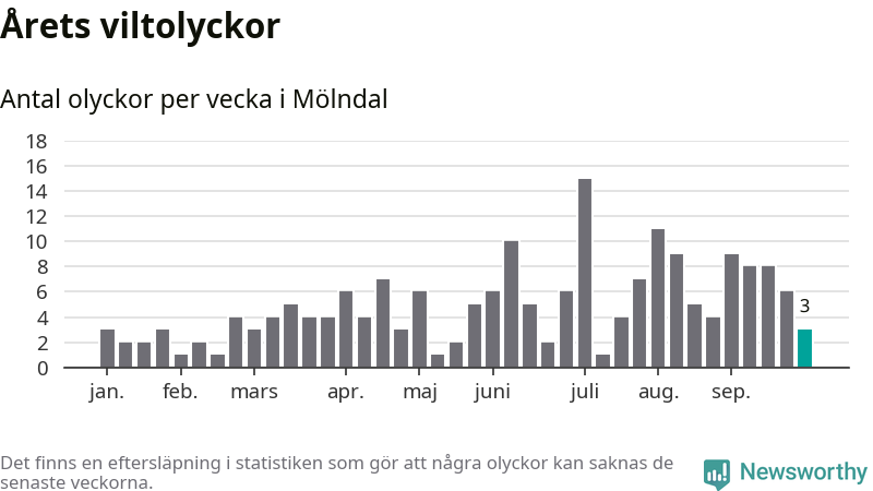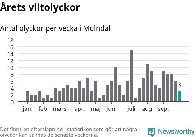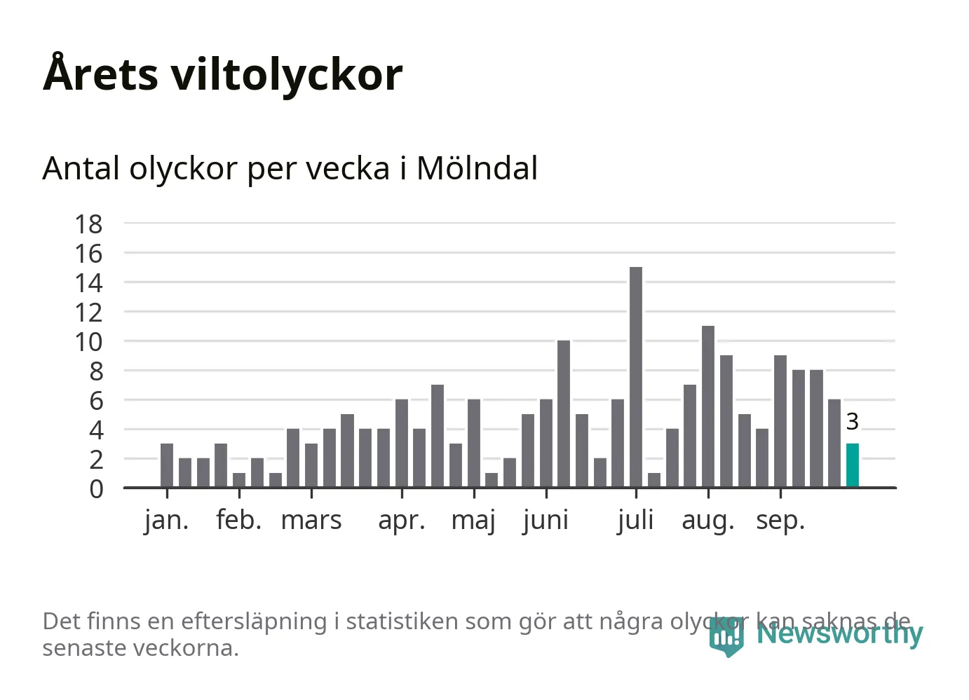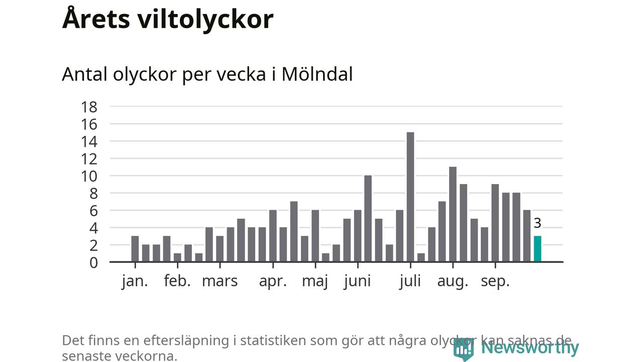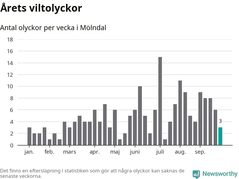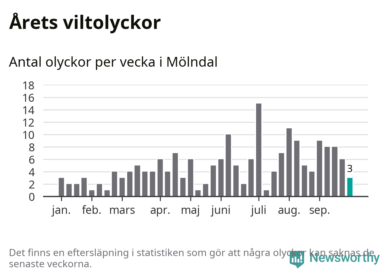 Hittills har tre viltolyckor rapporterats in i Mölndals kommun från vecka 40. Se listan här.