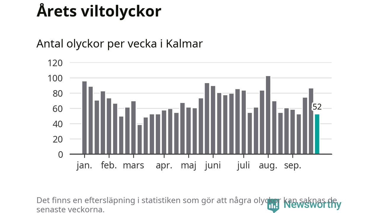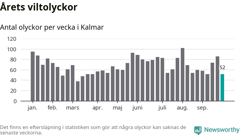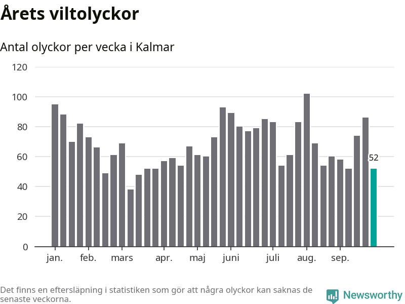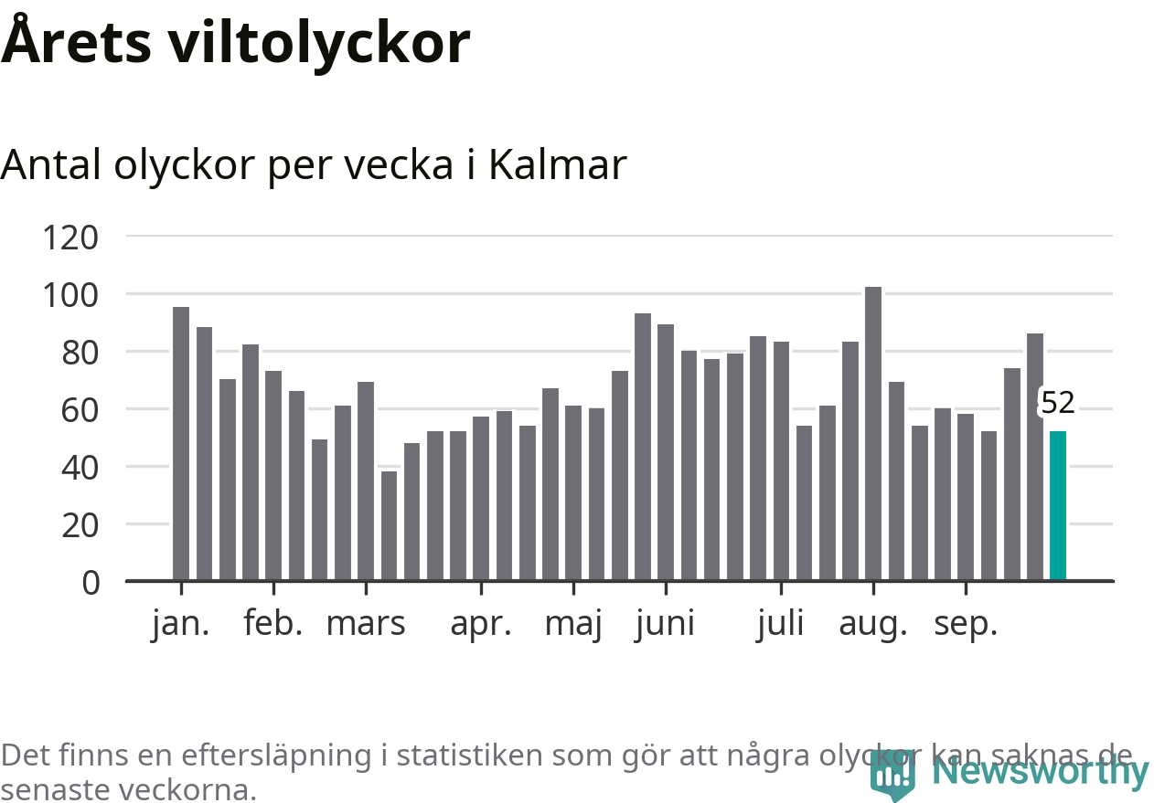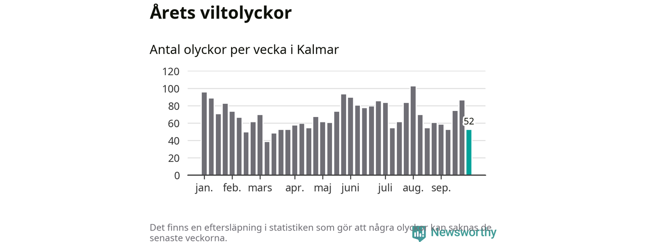 Hittills har 52 viltolyckor rapporterats in i Kalmar län från vecka 40. Se listan här.