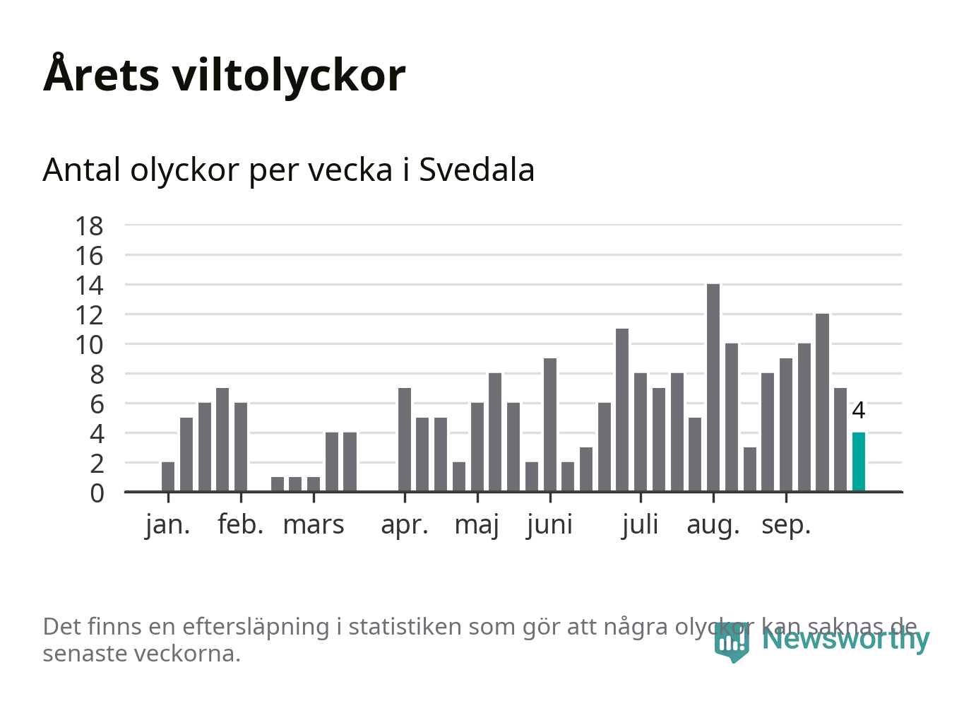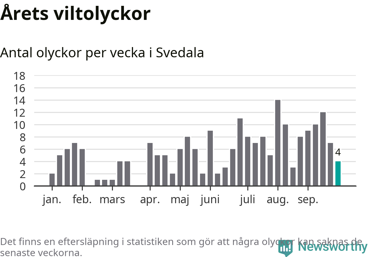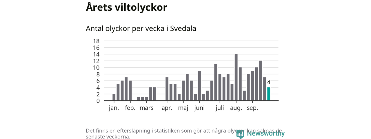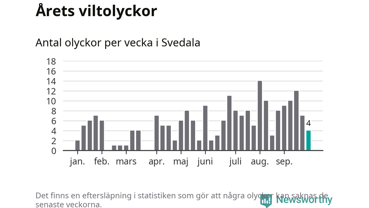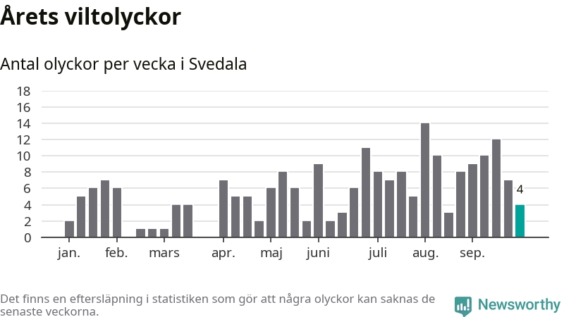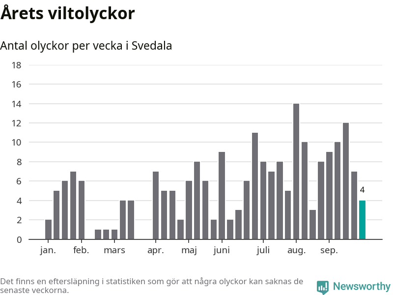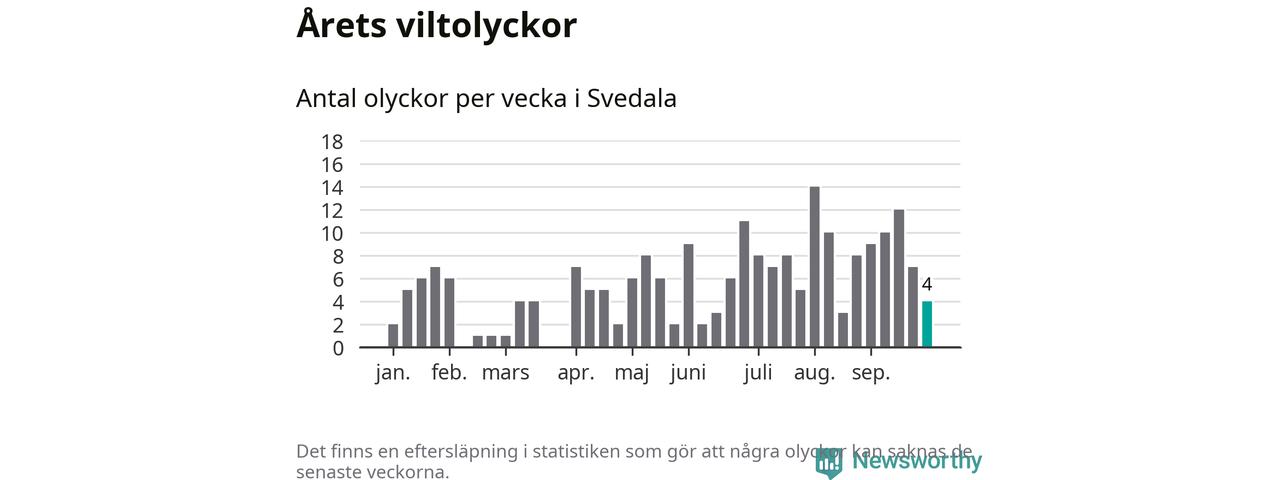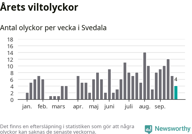 Hittills har fyra viltolyckor rapporterats in i Svedala kommun från vecka 40. Se listan här.