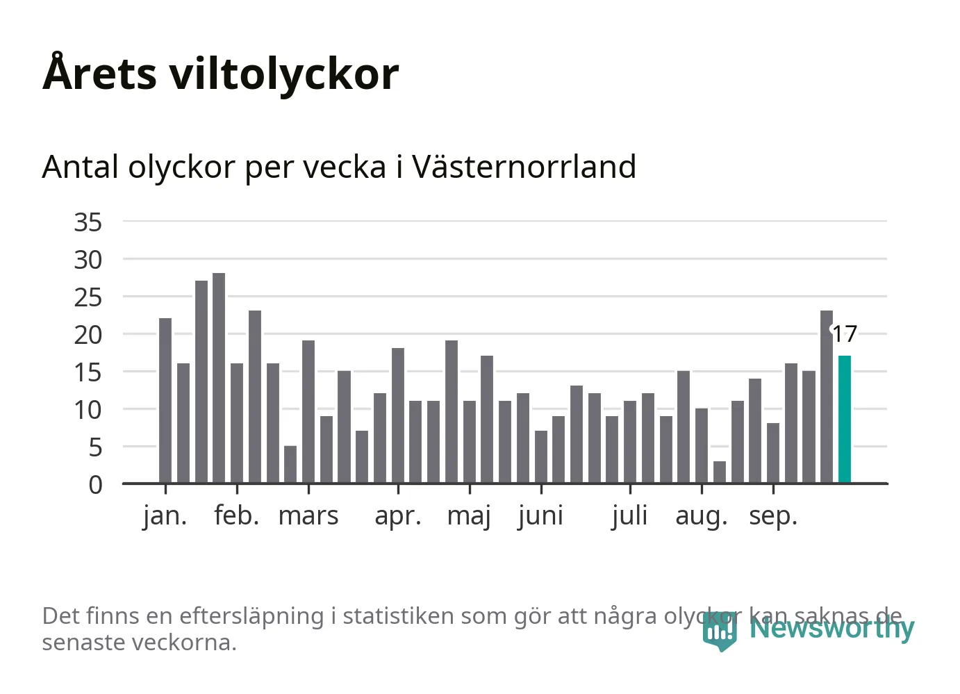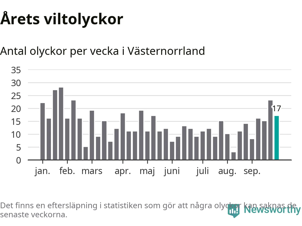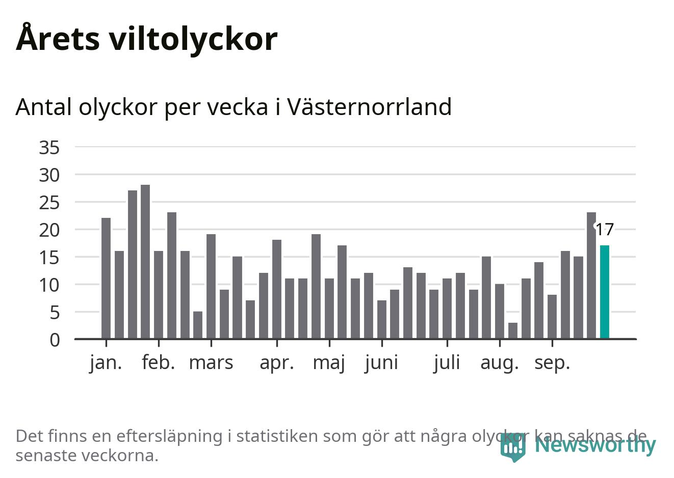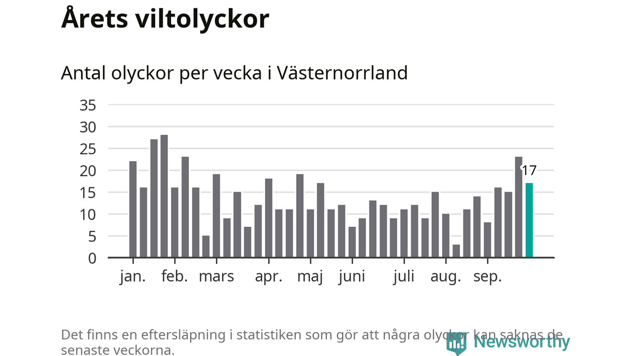 Hittills har 17 viltolyckor rapporterats in i Västernorrlands län från vecka 40. Se listan här.