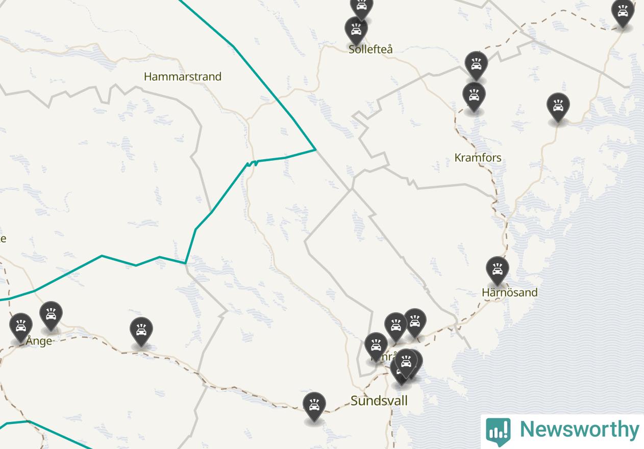Karta över viltolyckor i Västernorrlands län
