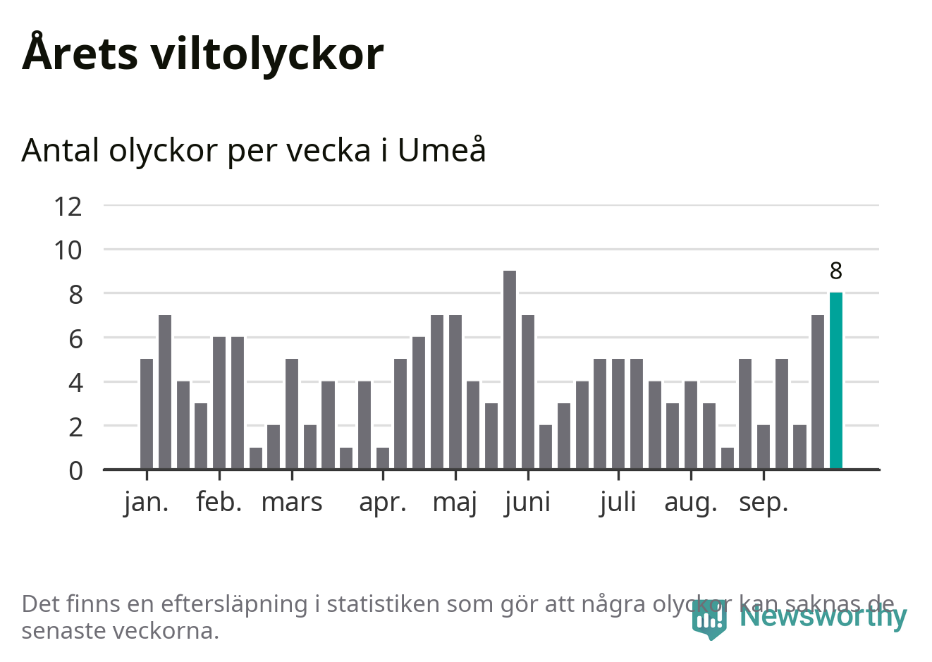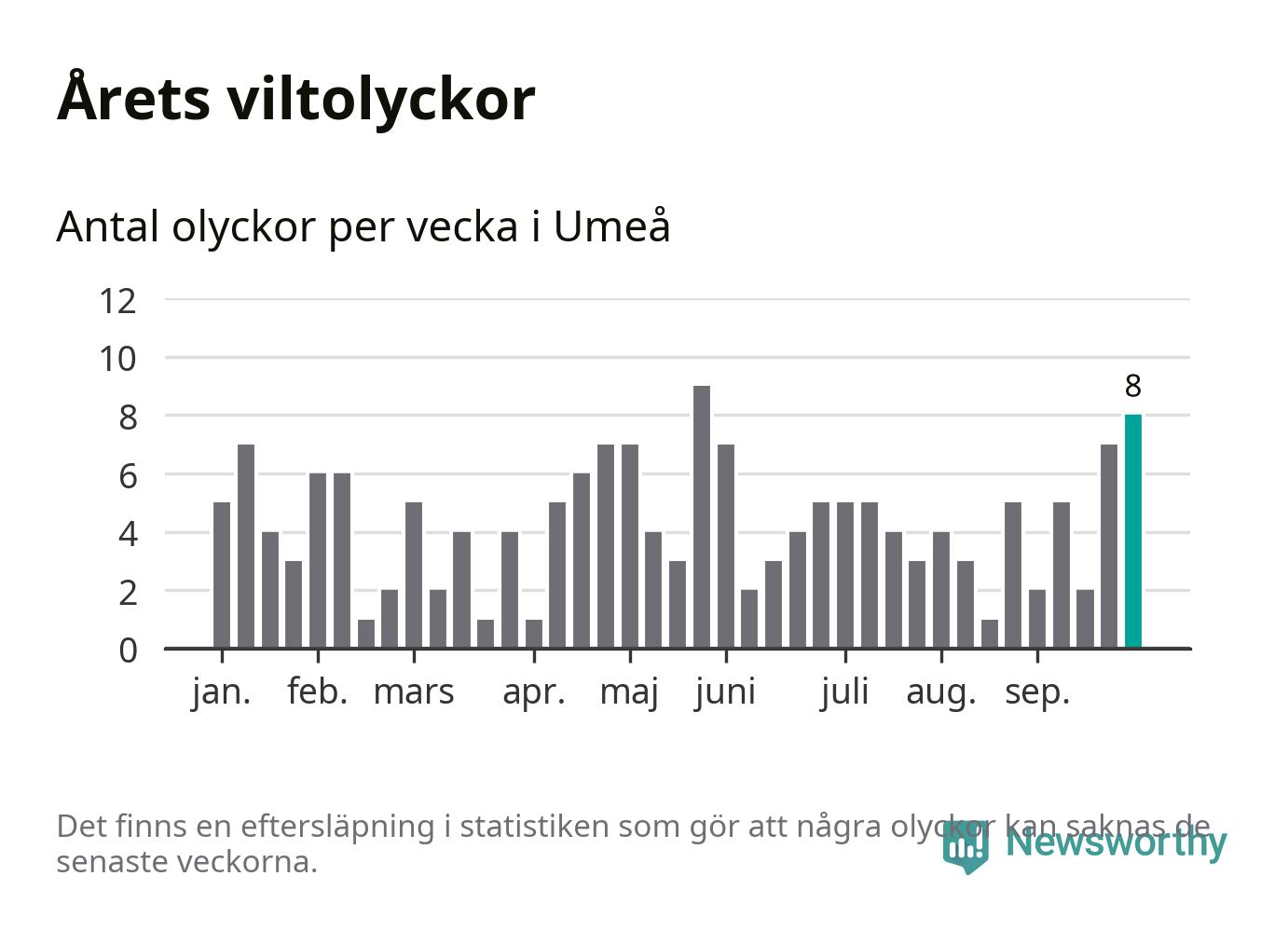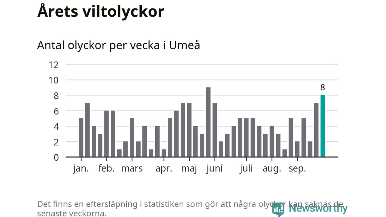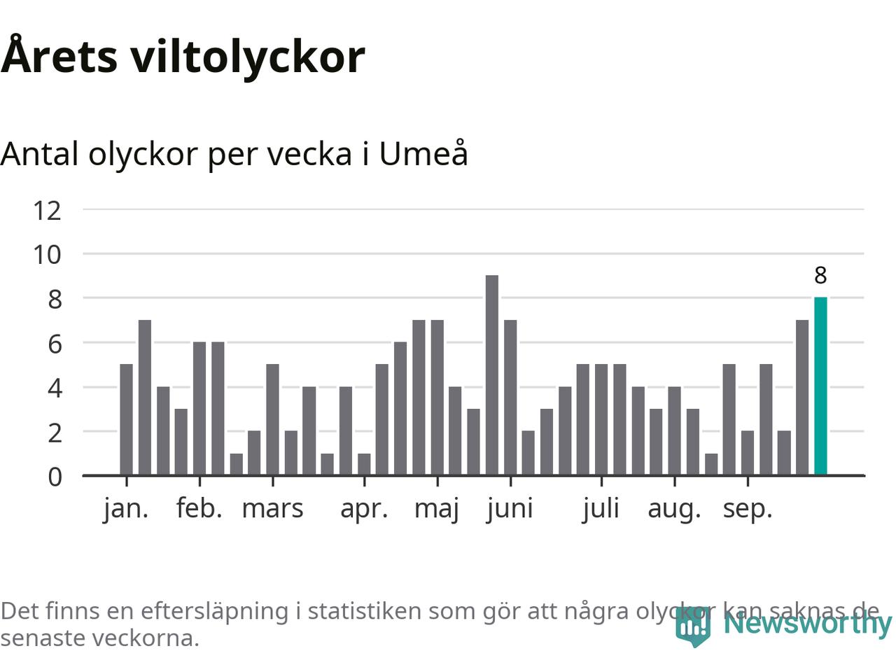 Hittills har åtta viltolyckor rapporterats in i Umeå kommun från vecka 40. Se listan här.