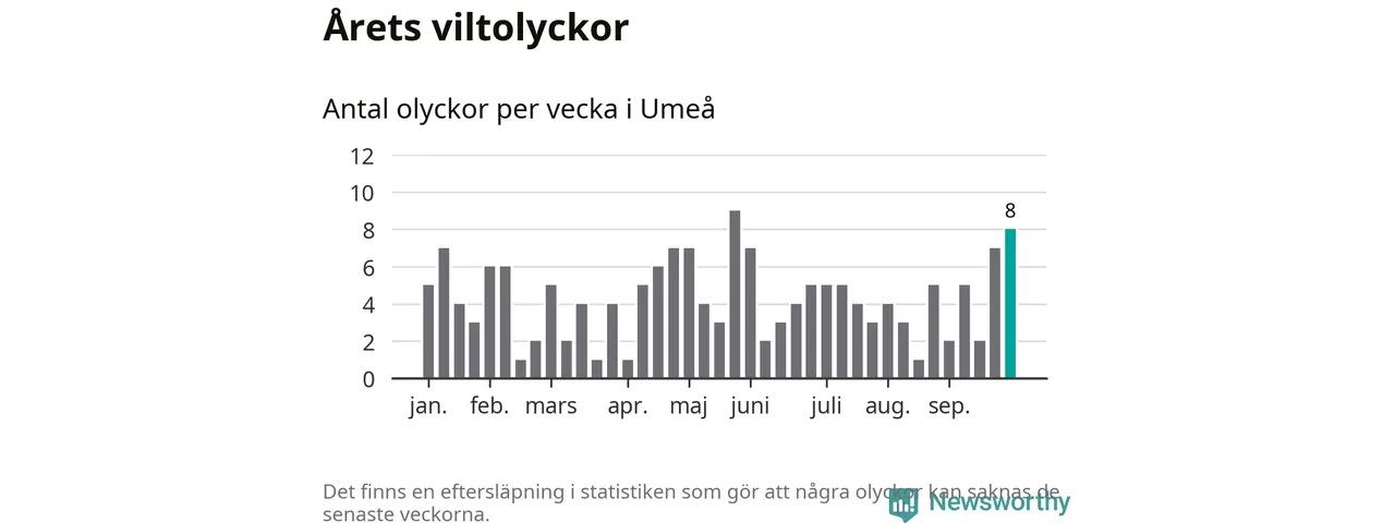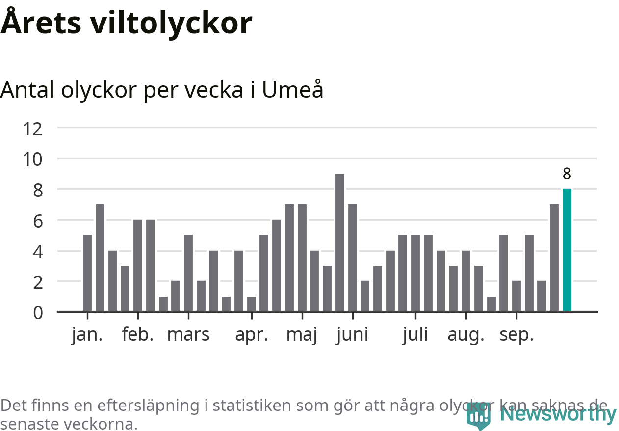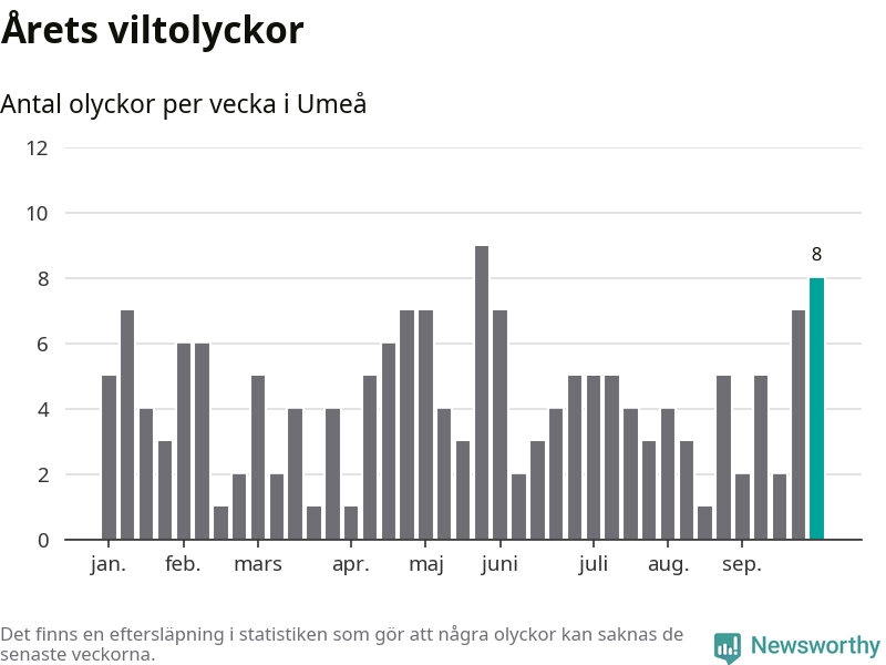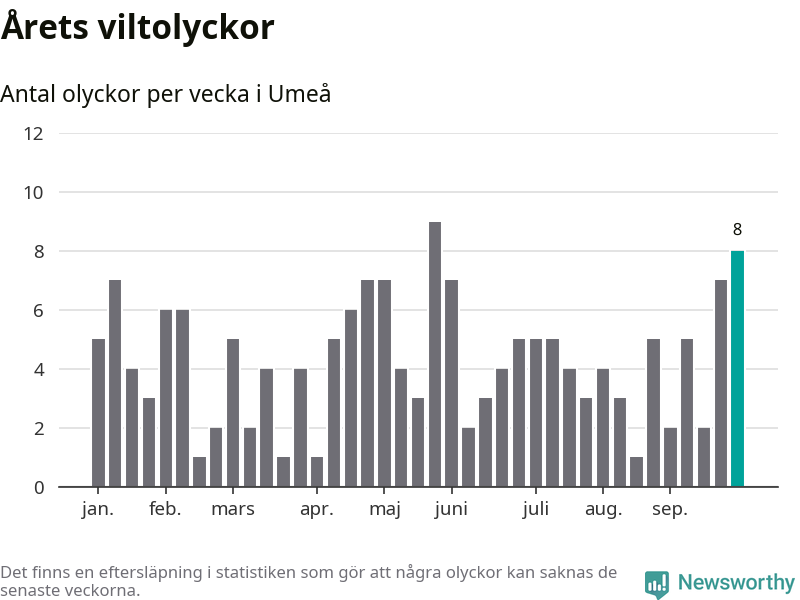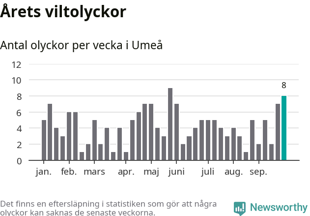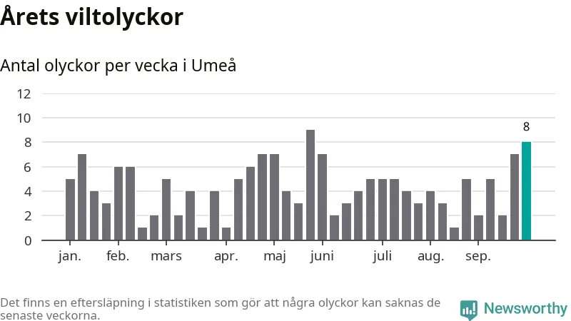 Hittills har åtta viltolyckor rapporterats in i Umeå kommun från vecka 40. Se listan här.