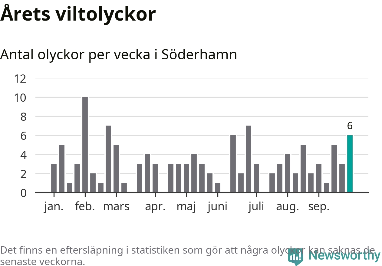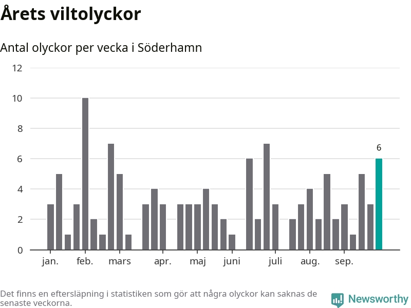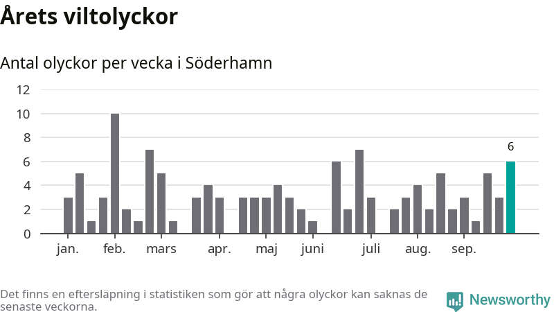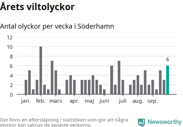 Hittills har sex viltolyckor rapporterats in i Söderhamns kommun från vecka 40. Se listan här.