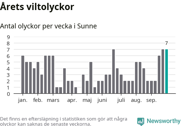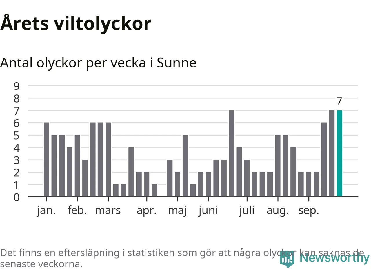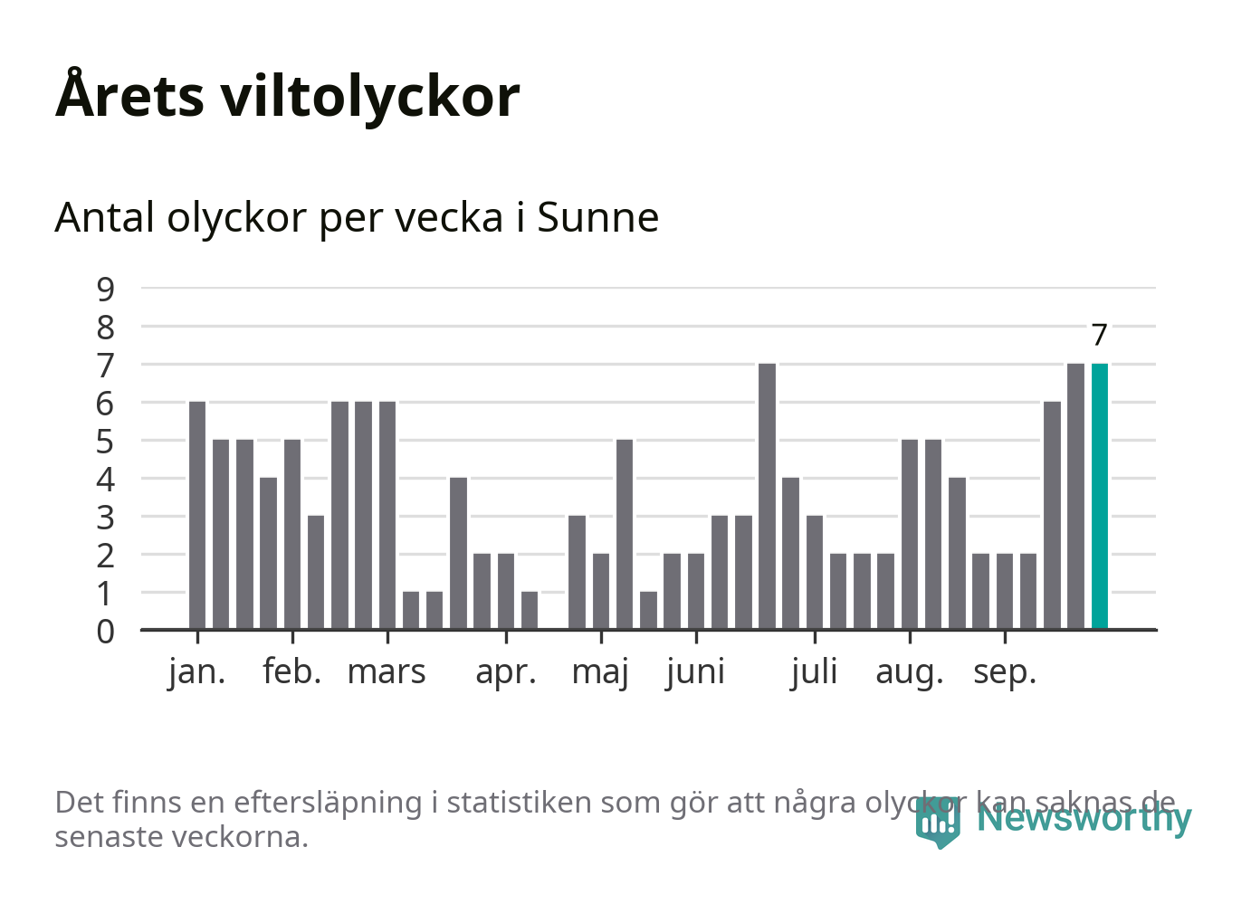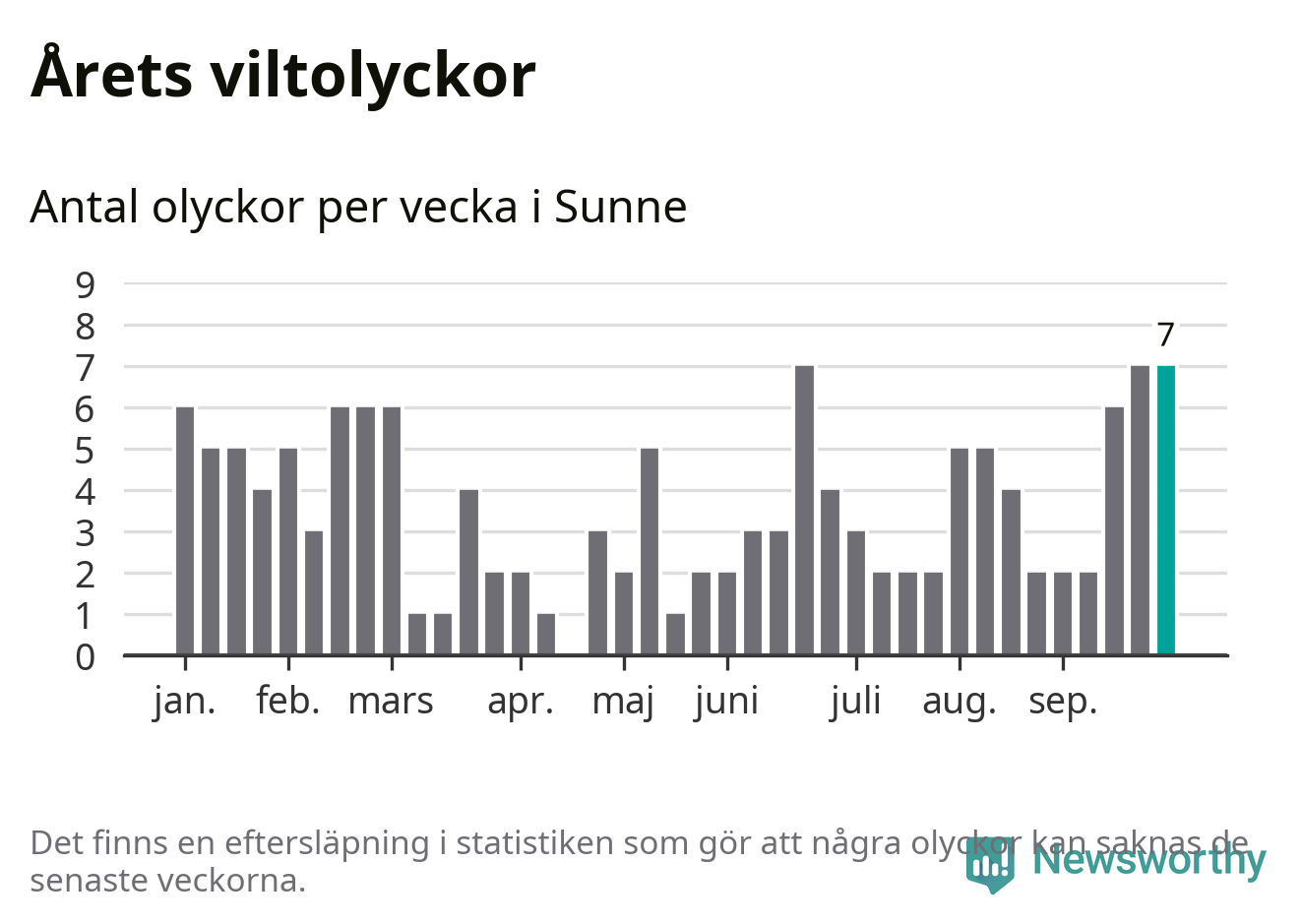Hittills har sju viltolyckor rapporterats in i Sunne kommun från vecka 40. Se listan här.
