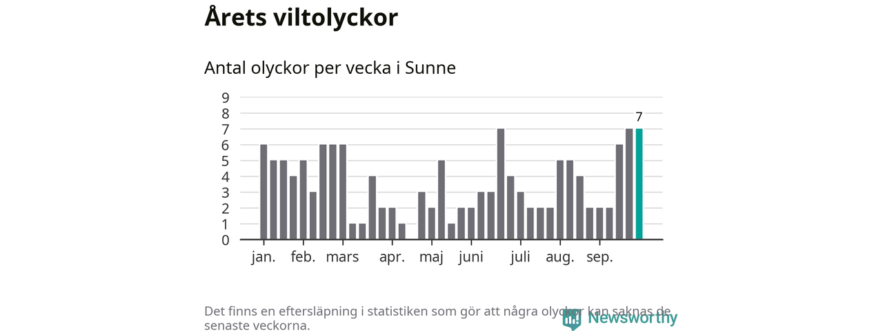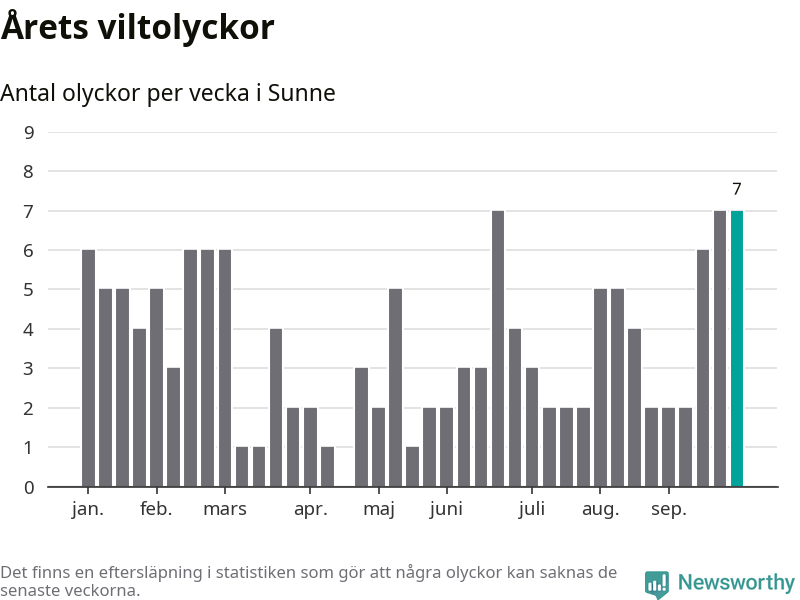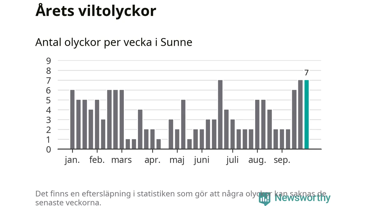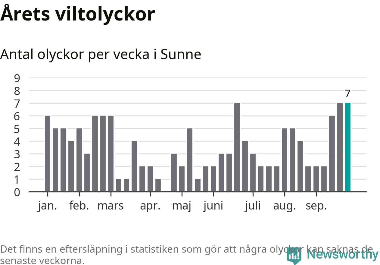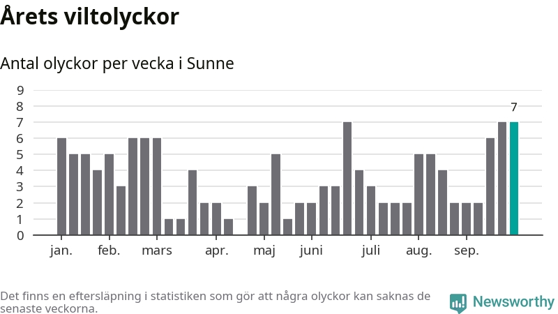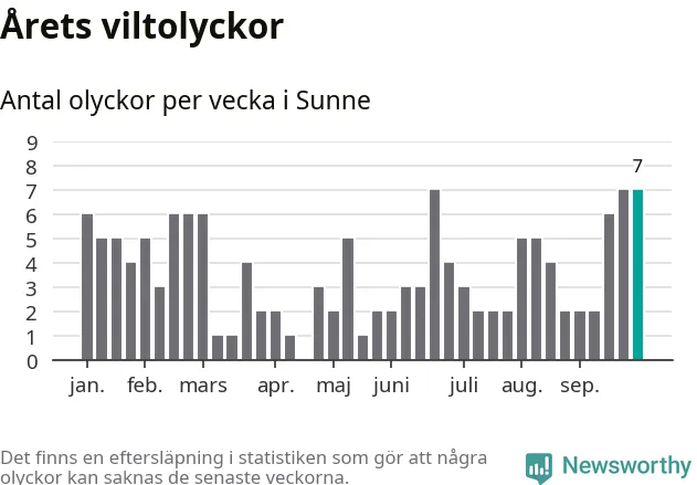 Hittills har sju viltolyckor rapporterats in i Sunne kommun från vecka 40. Se listan här.