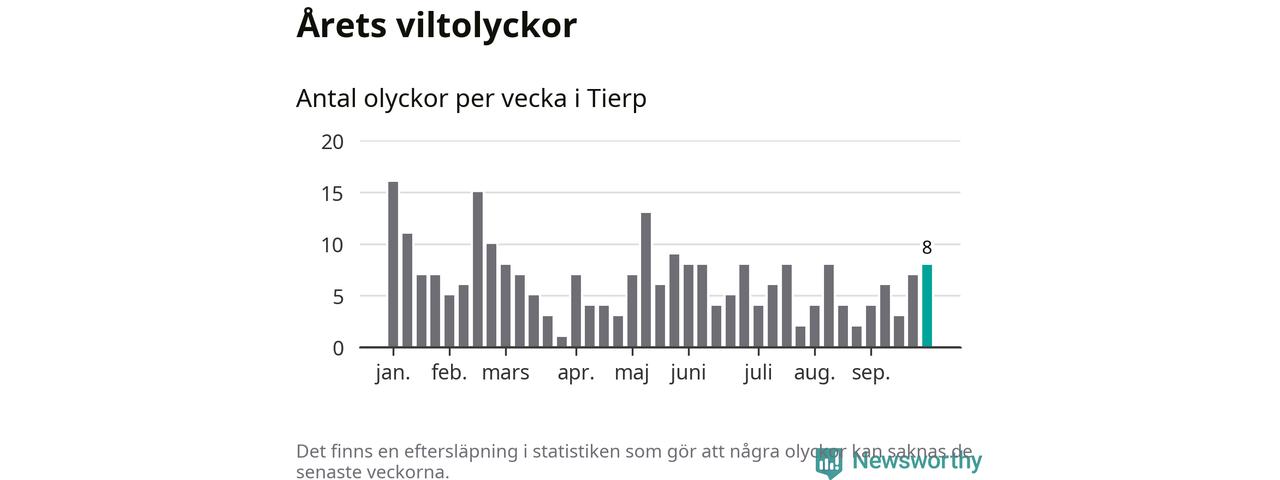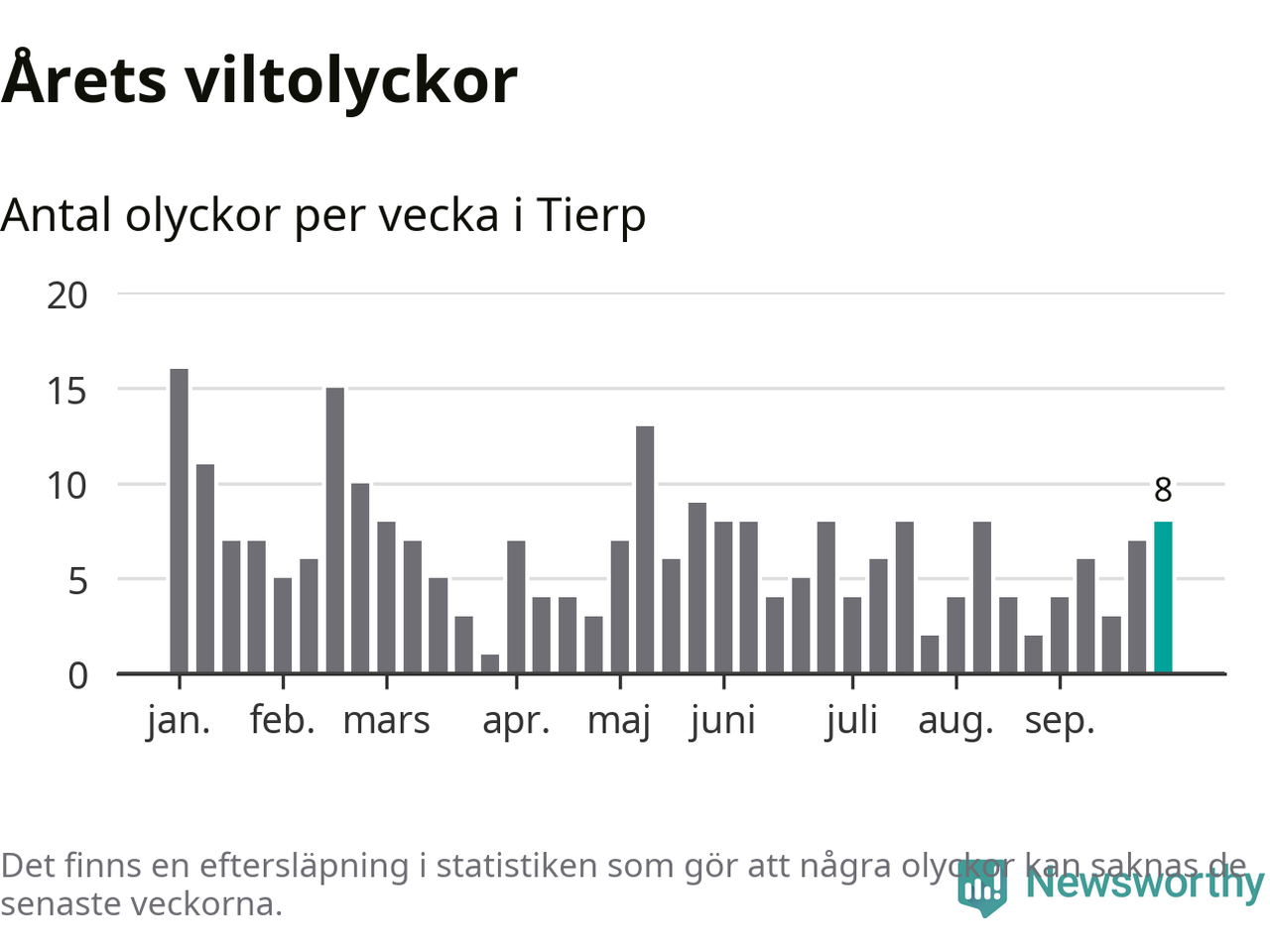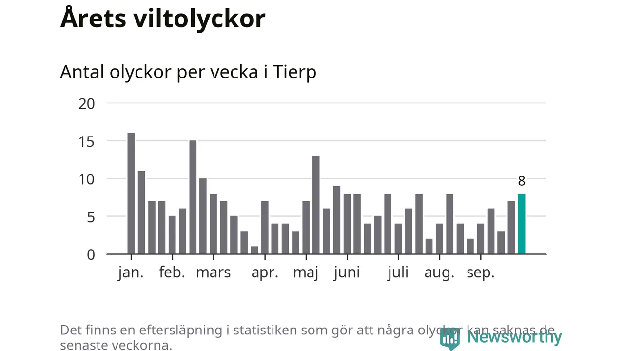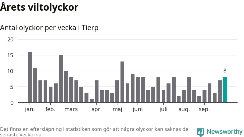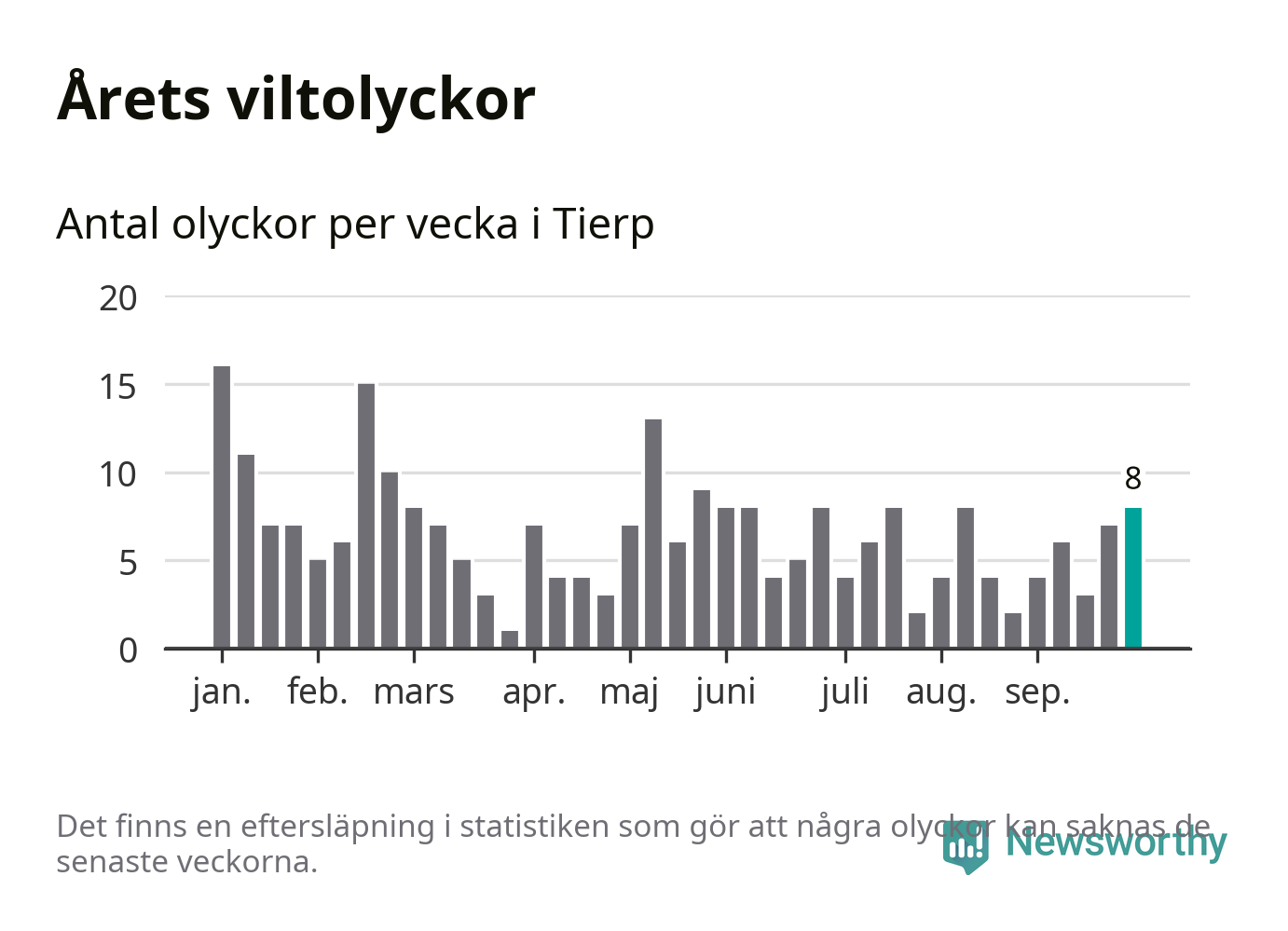 Hittills har åtta viltolyckor rapporterats in i Tierps kommun från vecka 40. Se listan här.