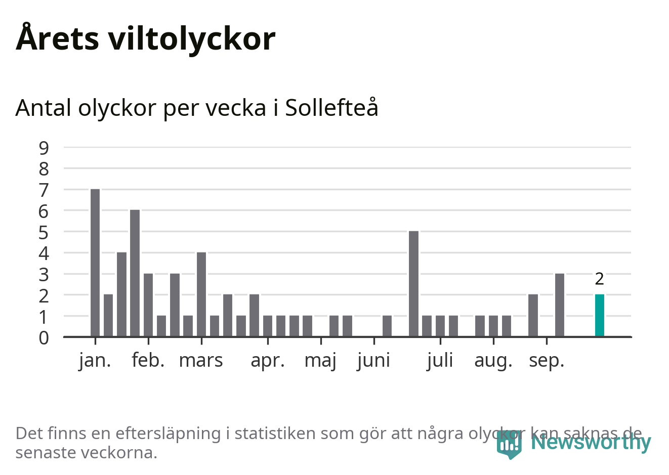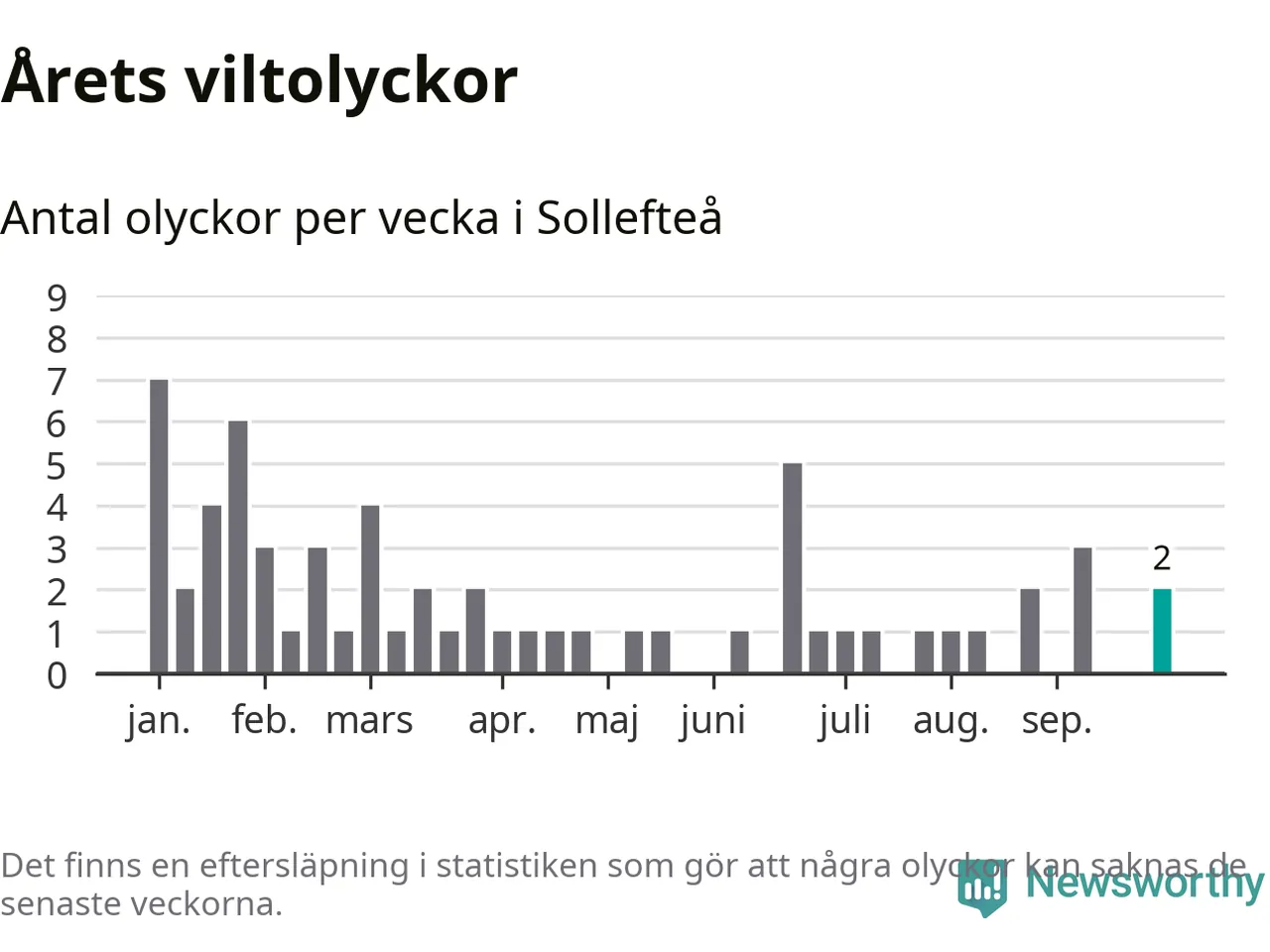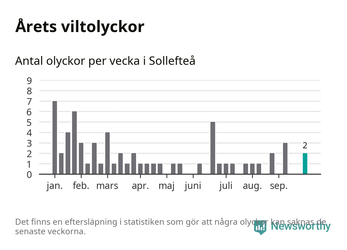 Hittills har två viltolyckor rapporterats in i Sollefteå kommun från vecka 40. Se listan här.