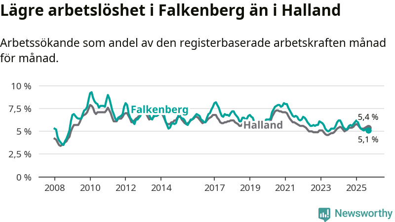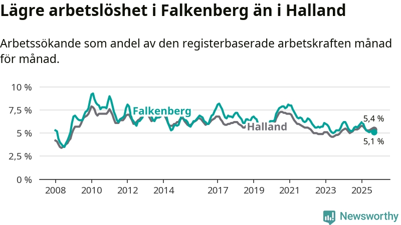 Arbetslösheten sjunker i Falkenberg – medan den står stilla i Halland